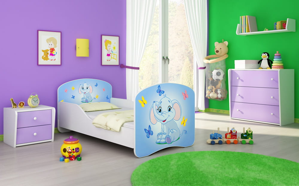Łóżko dziecięce 140x70, ACMA I - Niebieski Słonik