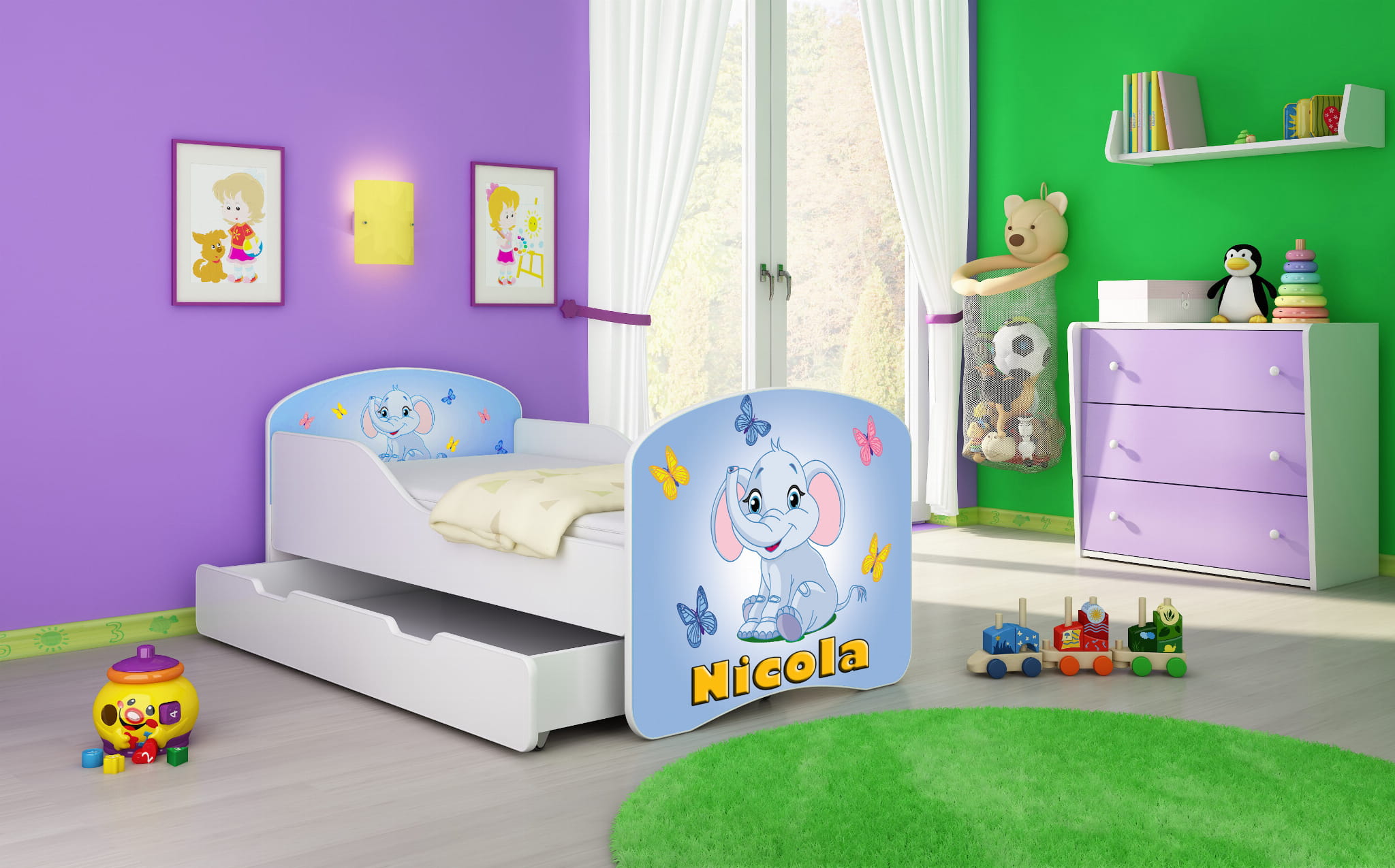 Podczas zakupu prosimy o wpisanie imienia jakie ma być naniesione na łóżko np. "Mikołaj". Po zakupie łóżka zostanie przesłany projekt.