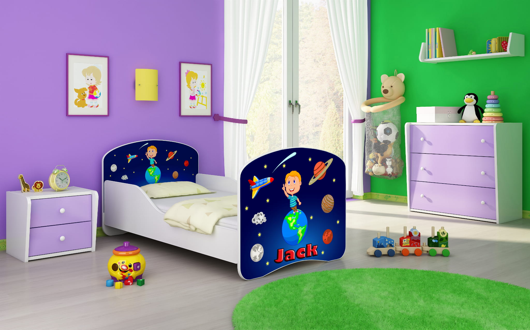 Podczas zakupu prosimy o wpisanie imienia jakie ma być naniesione na łóżko np. "Mikołaj". Po zakupie łóżka zostanie przesłany projekt.
