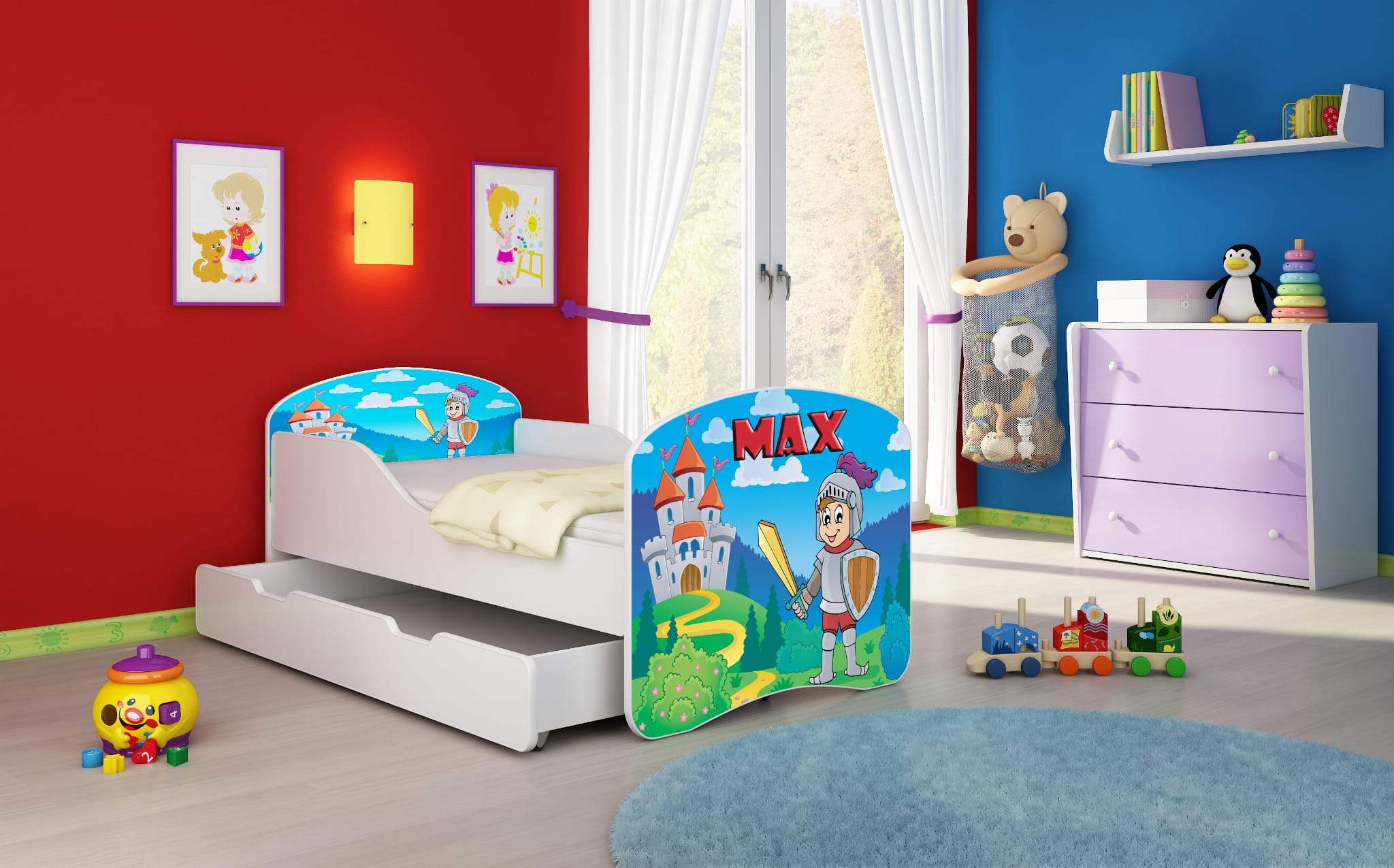 Podczas zakupu prosimy o wpisanie imienia jakie ma być naniesione na łóżko np. "Mikołaj". Po zakupie łóżka zostanie przesłany projekt.