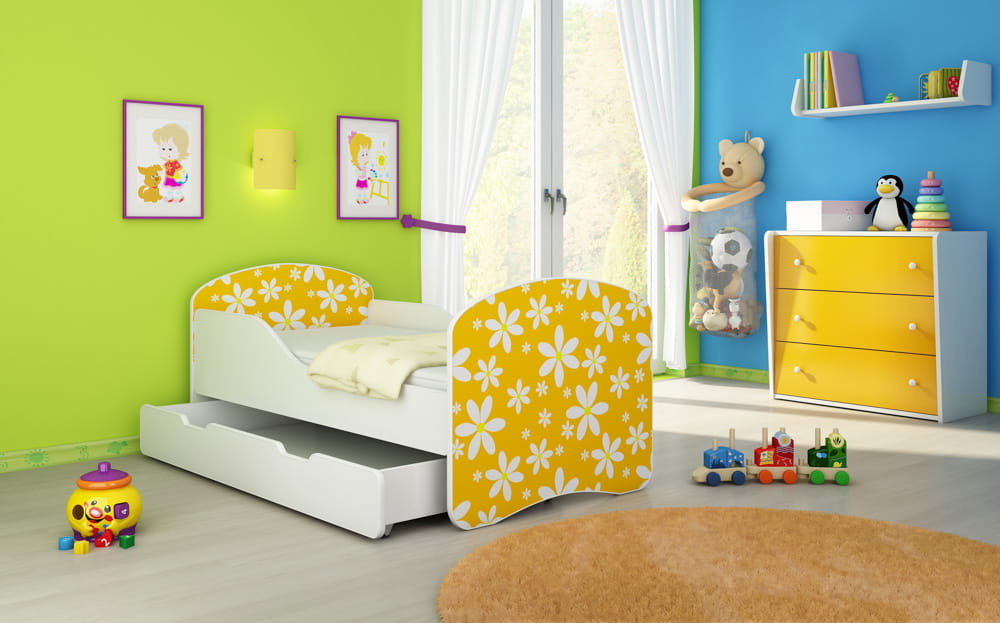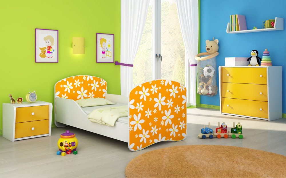Łóżko dziecięce 180x80, ACMA I - Pomarańczowe stokrotki