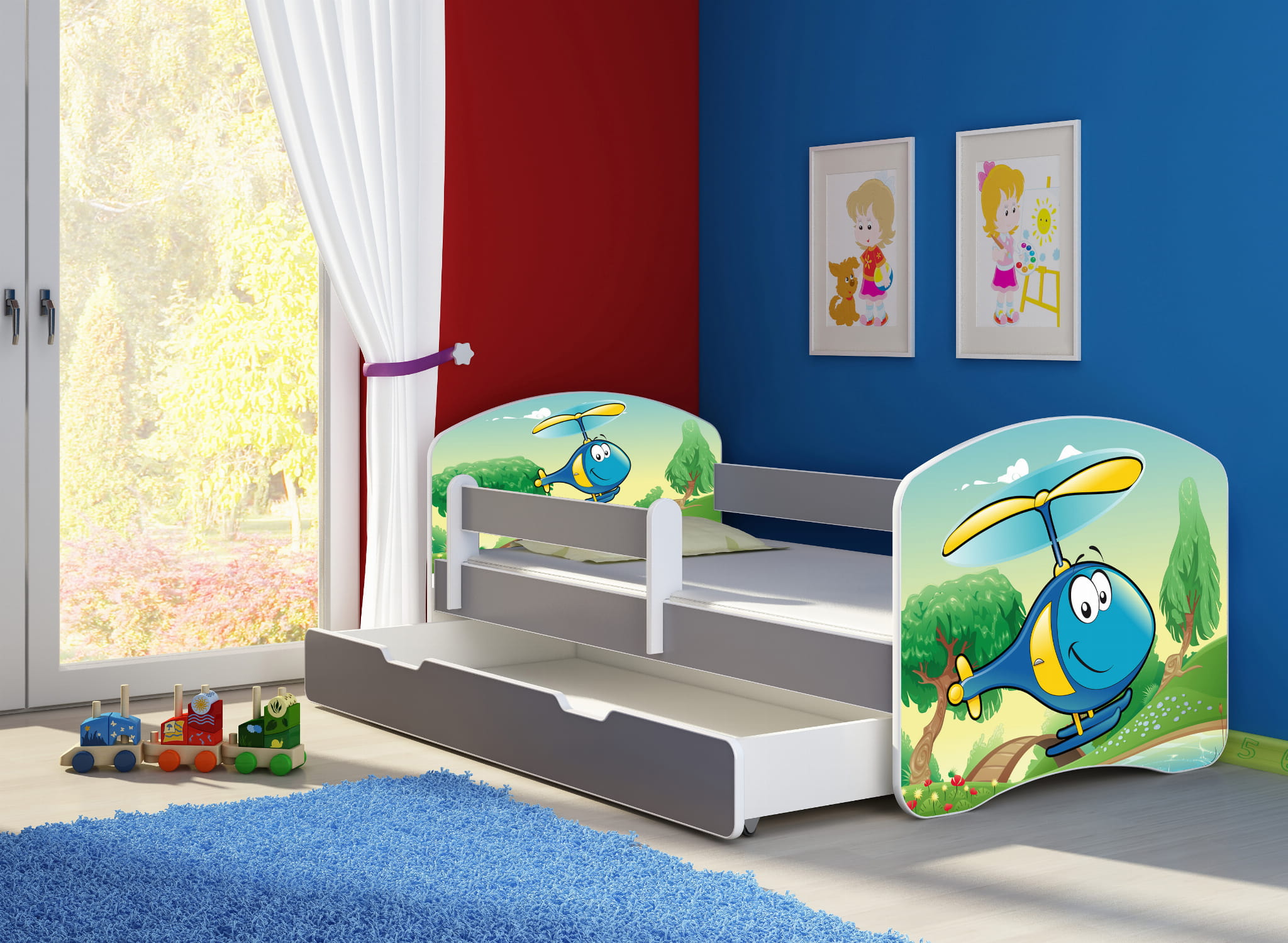 Łóżko dziecięce z barierką 140x70, ACMA II - Helikopter