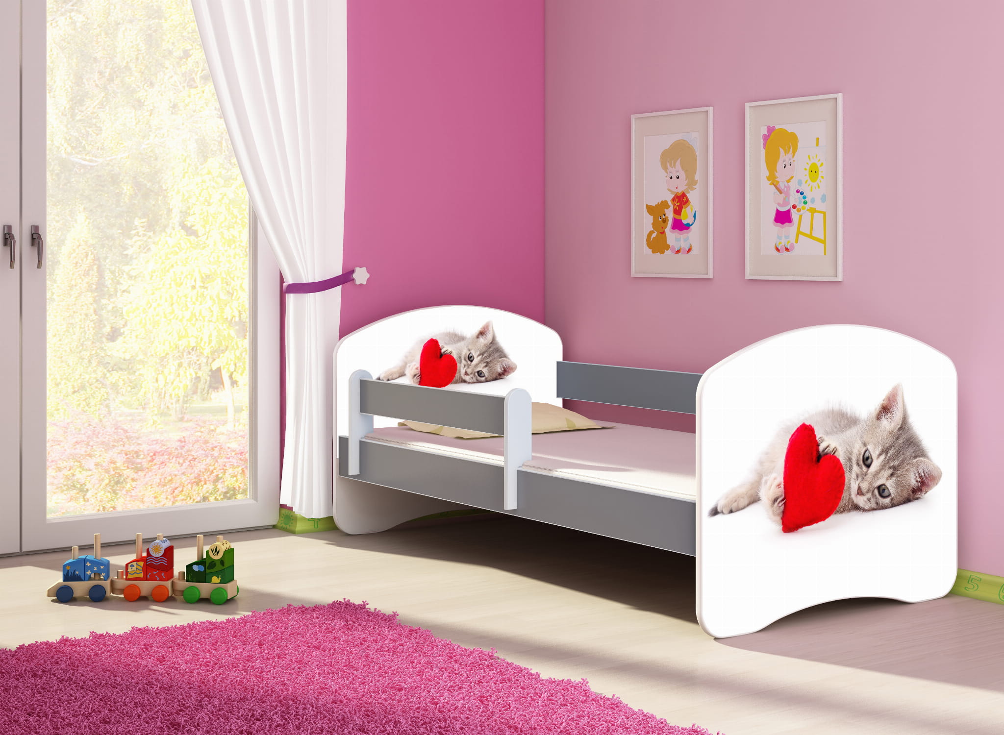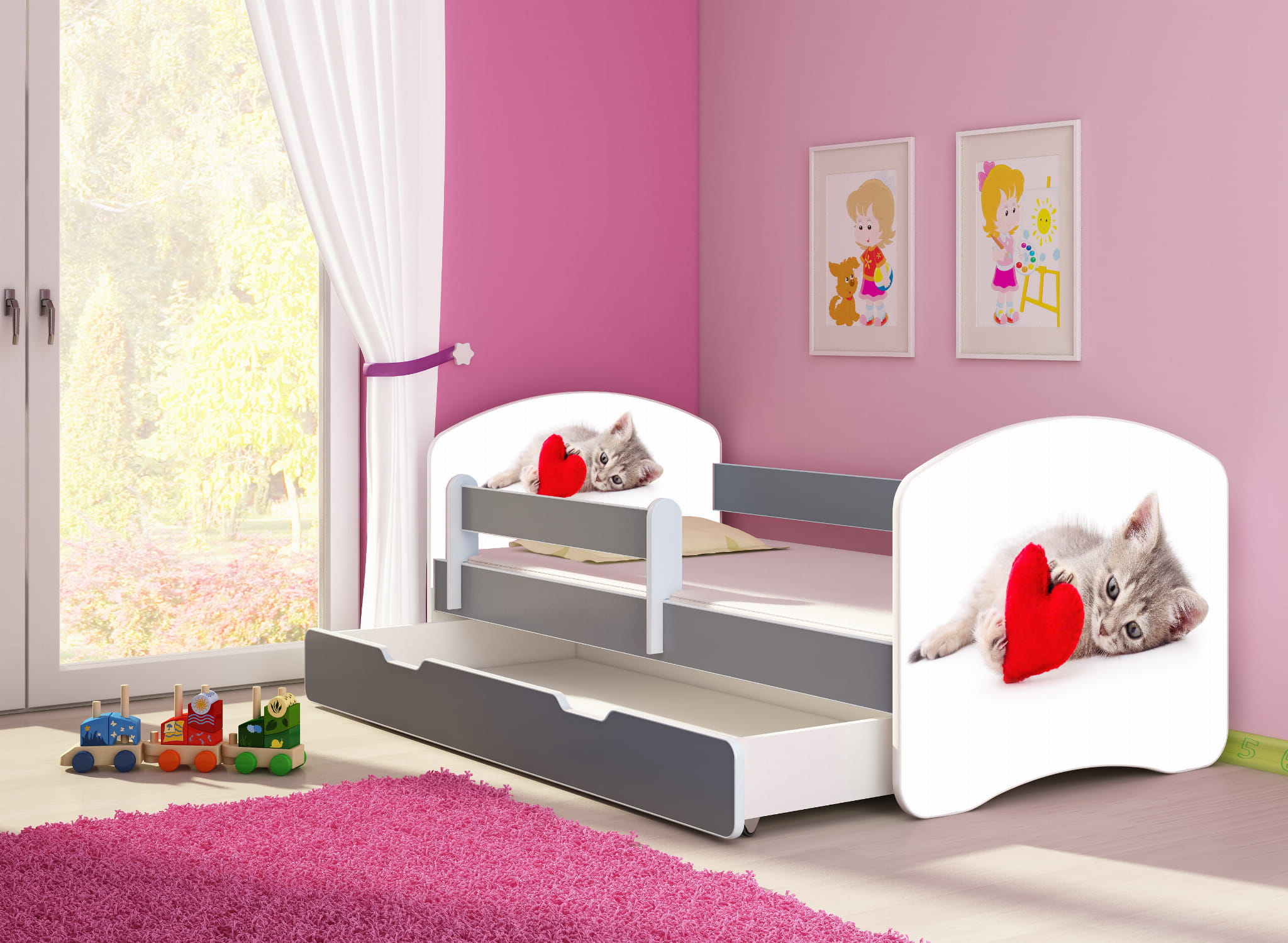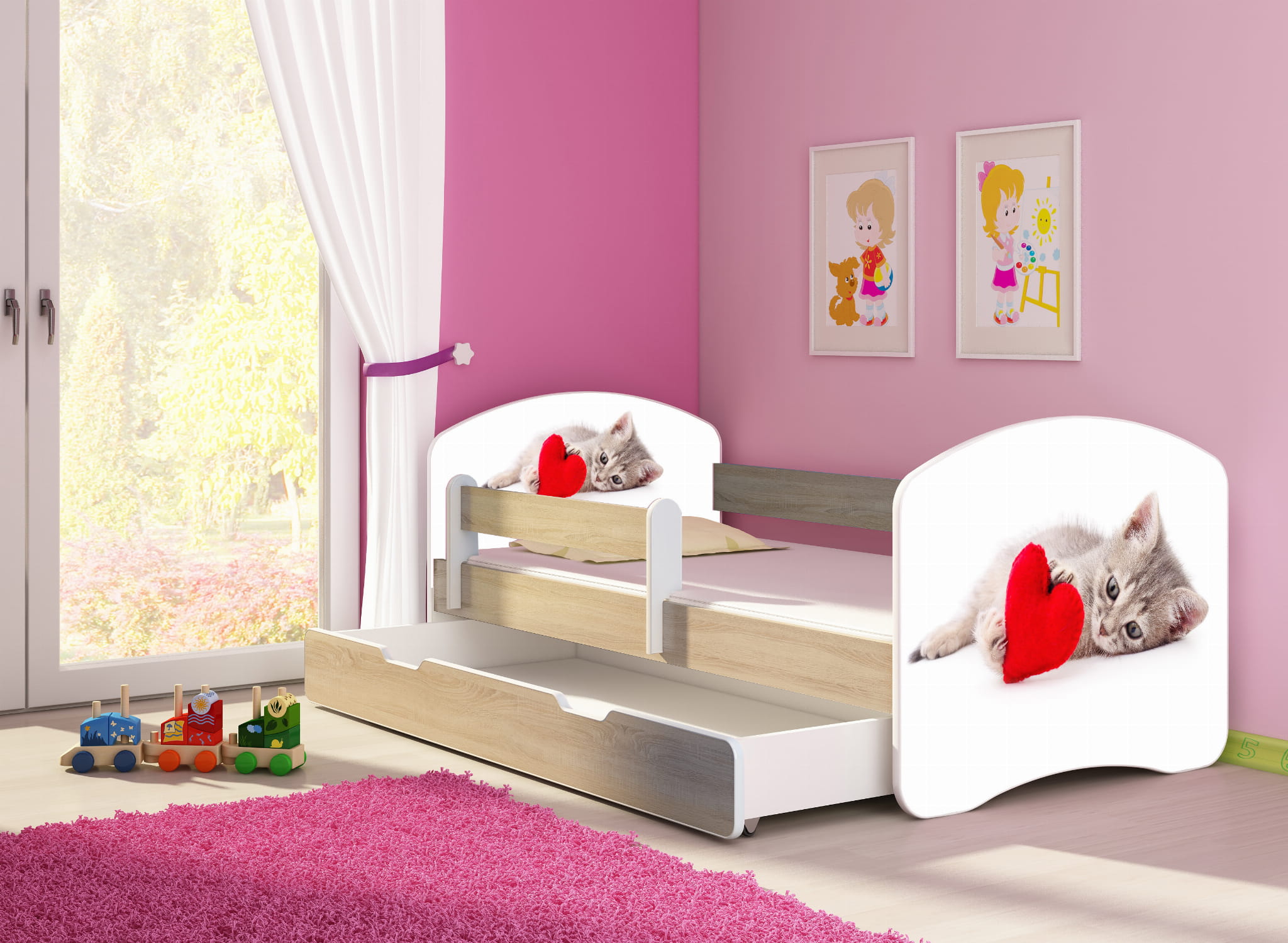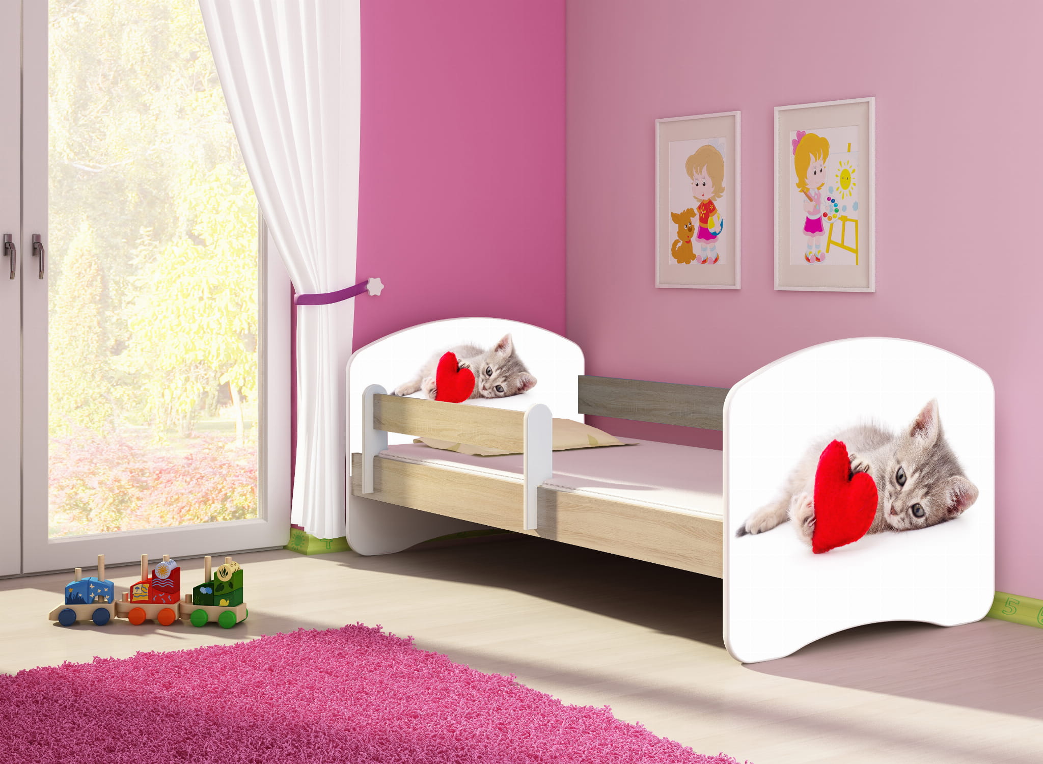 Łóżko dziecięce z barierką 140x70, ACMA II - Kotek