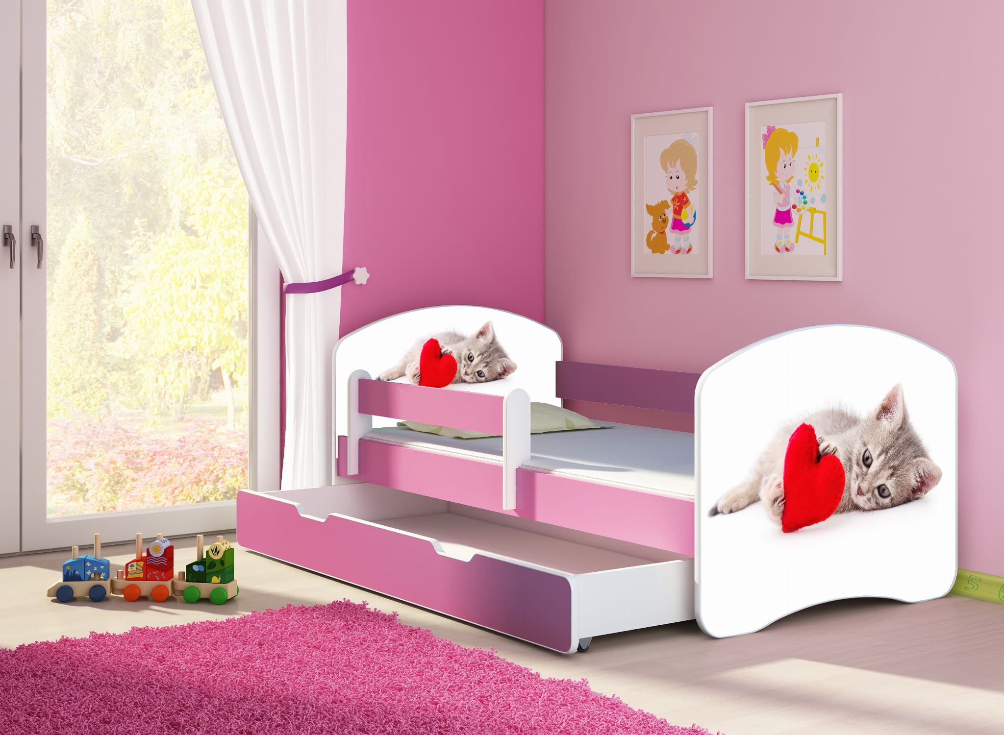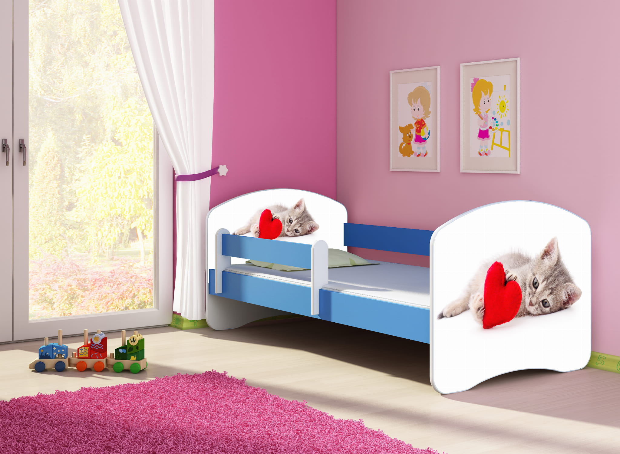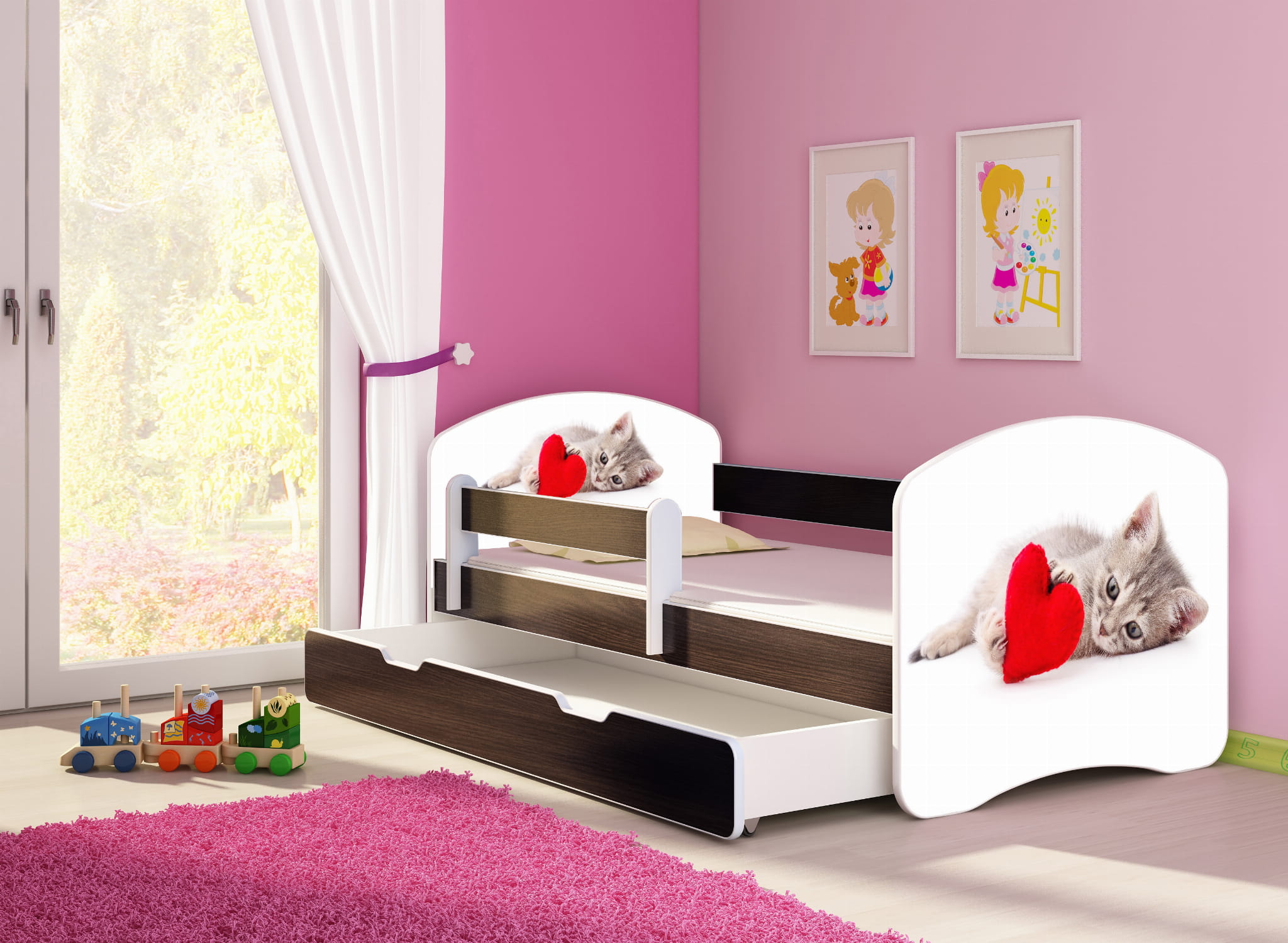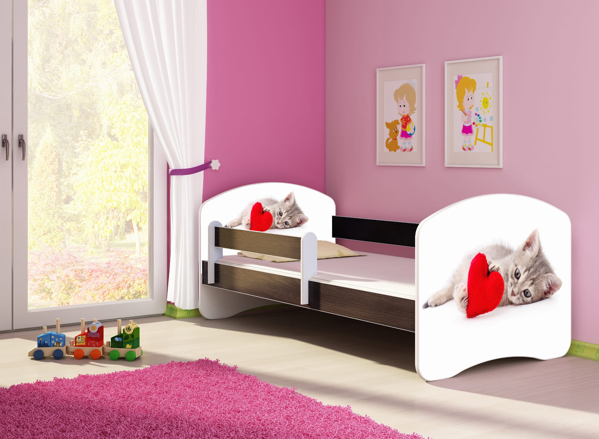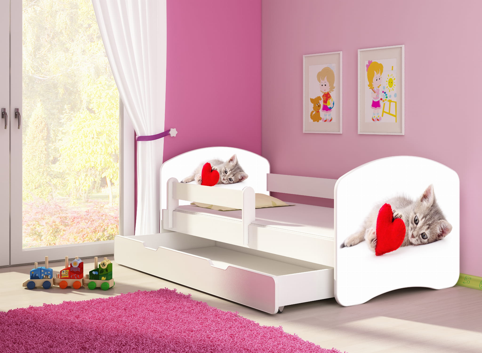 Łóżko dziecięce z barierką 140x70, ACMA II - Kotek