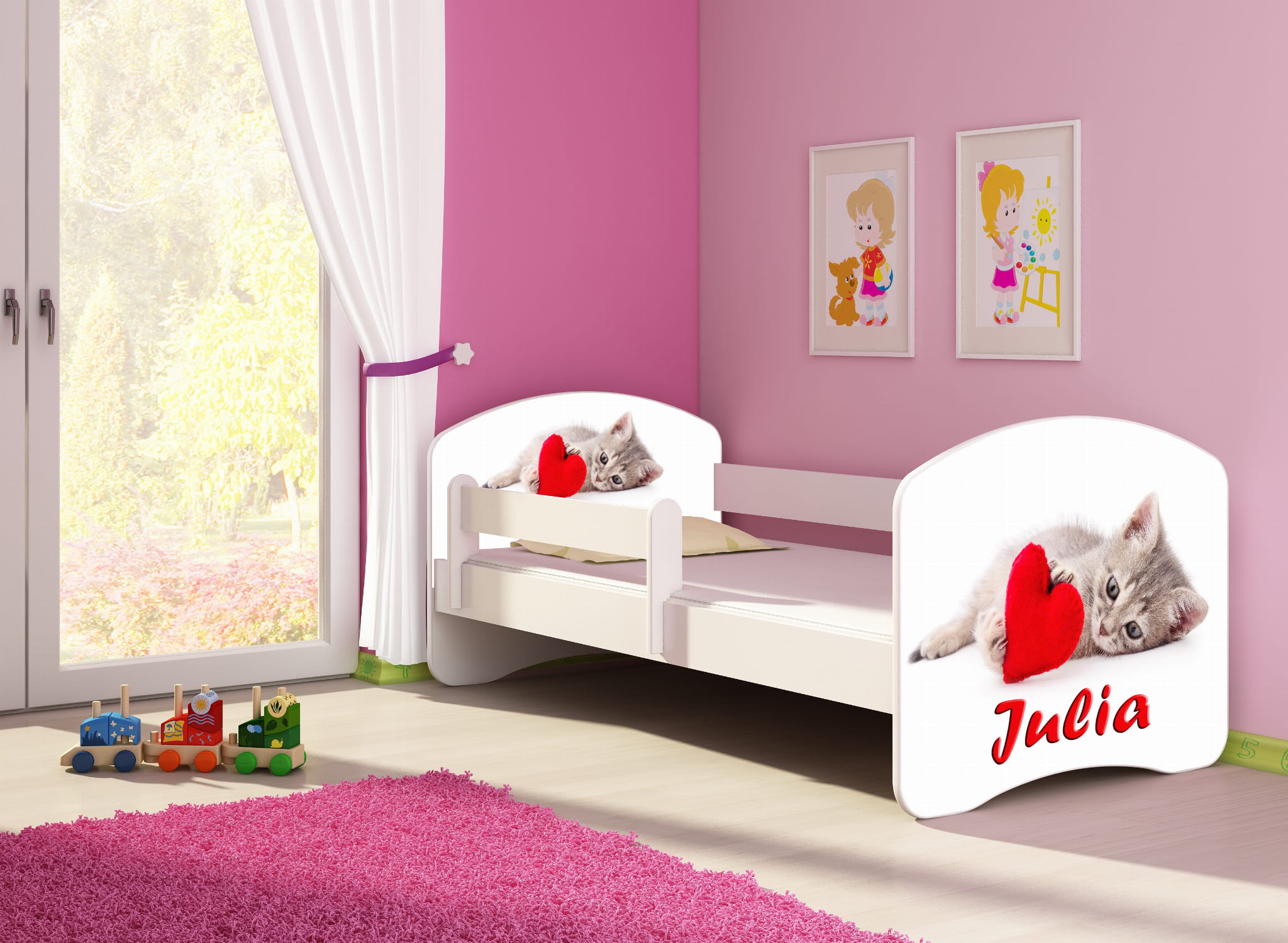 Podczas zakupu prosimy o wpisanie imienia jakie ma być naniesione na łóżko np. "Mikołaj". Po zakupie łóżka zostanie przesłany projekt.