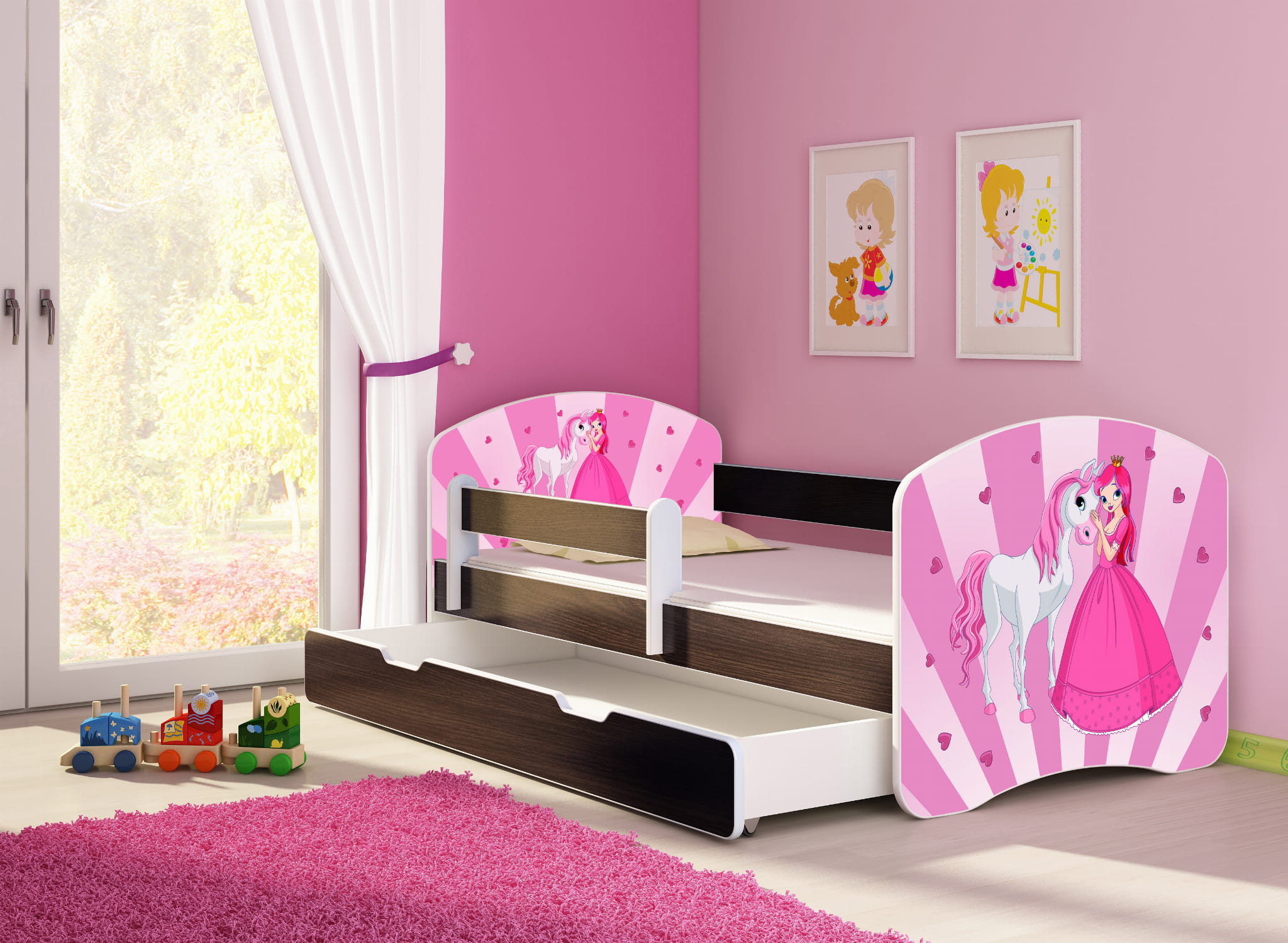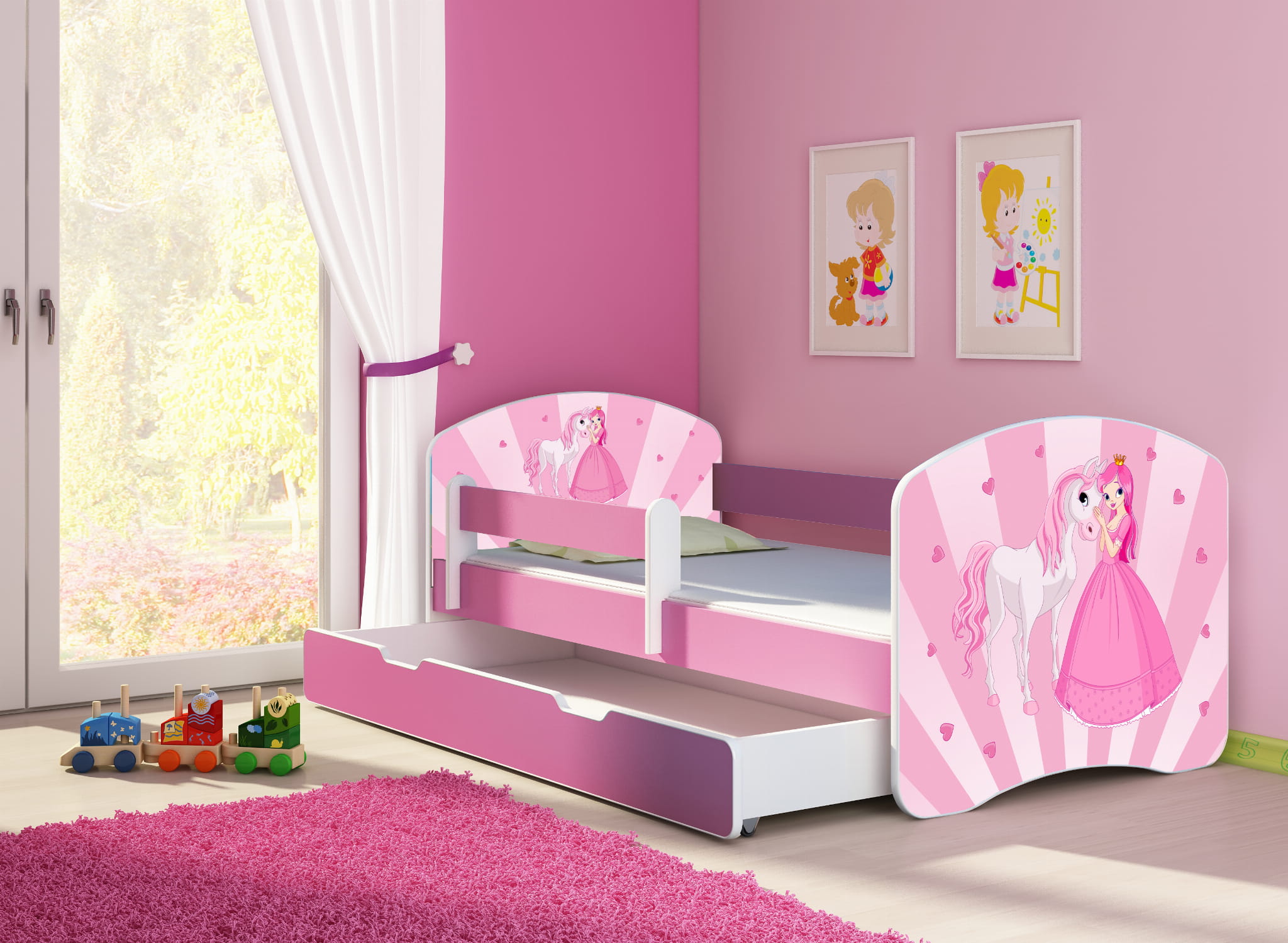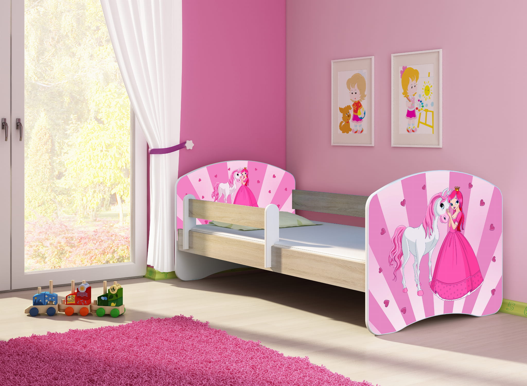 Łóżko dziecięce z barierką 140x70, ACMA II - Księżniczka z kucykiem