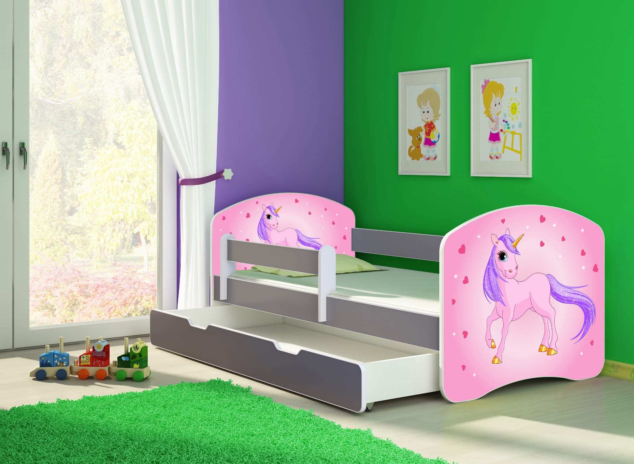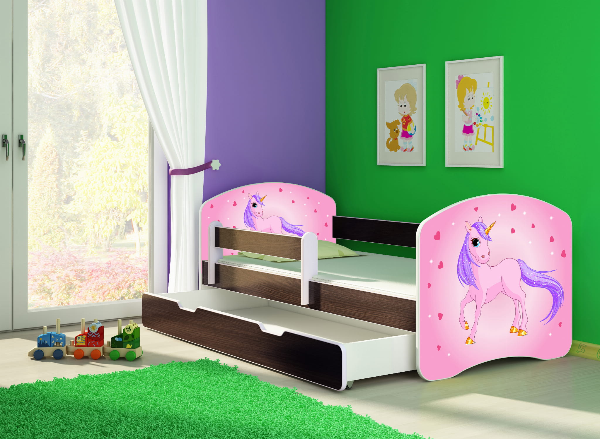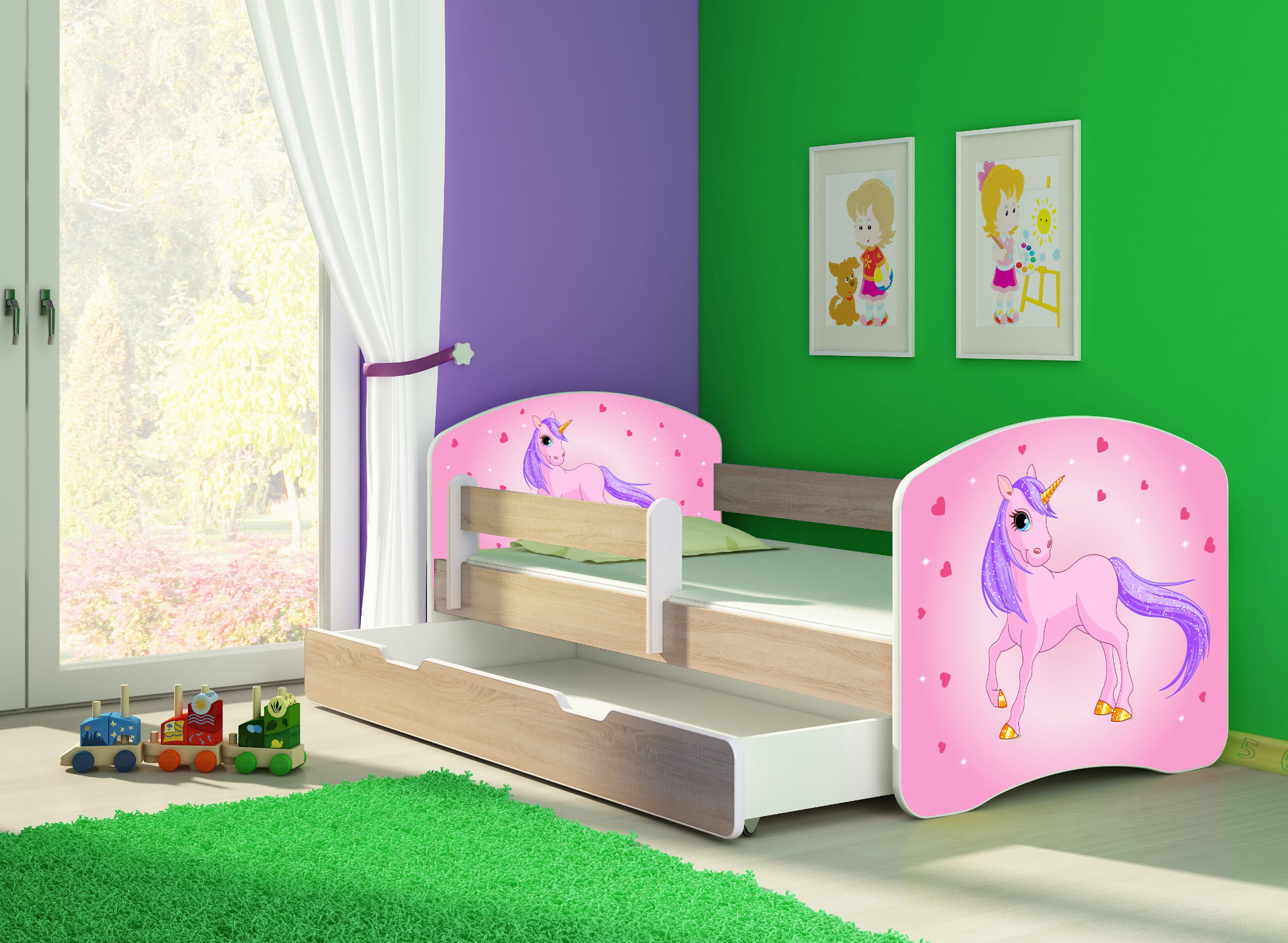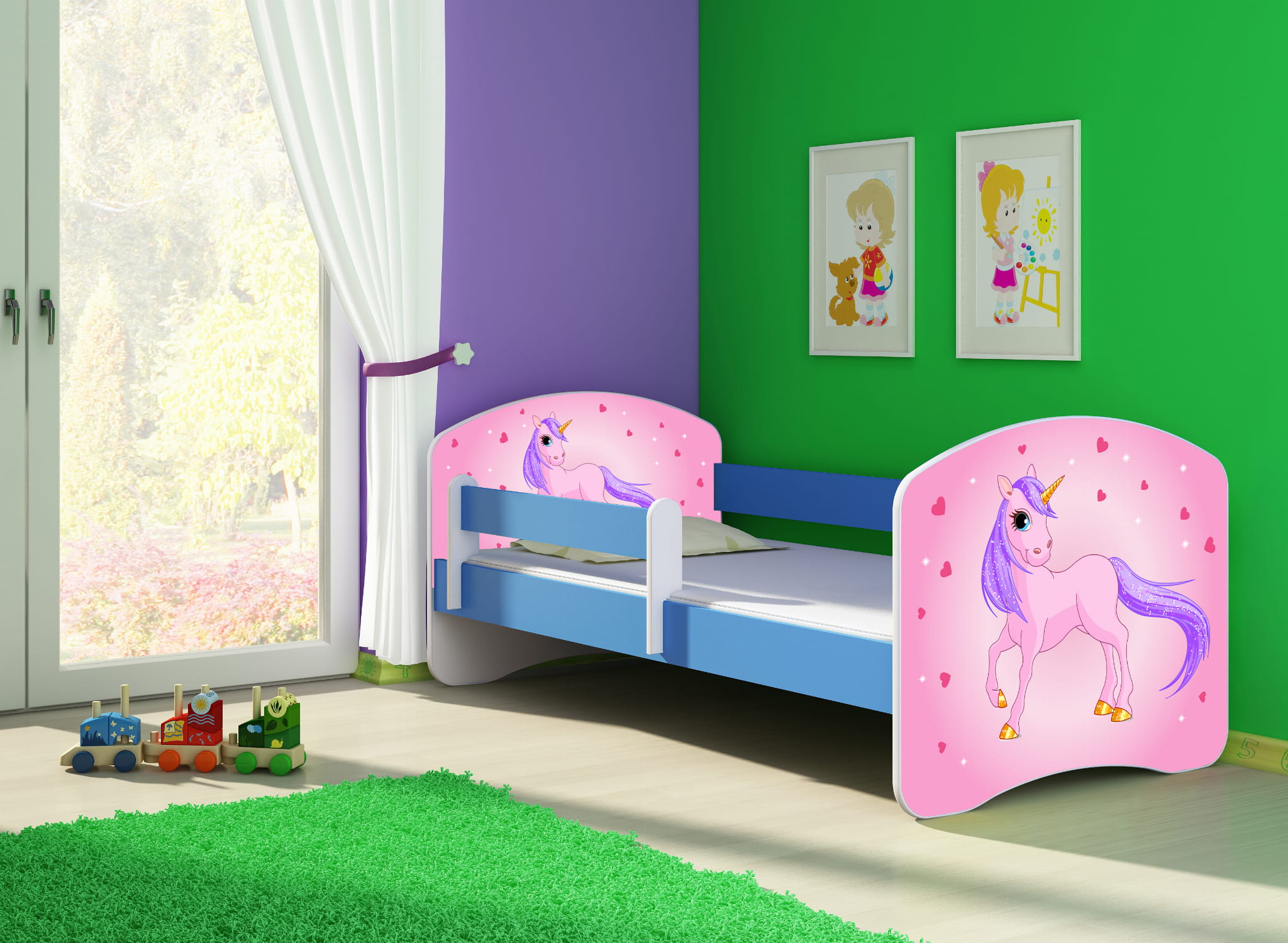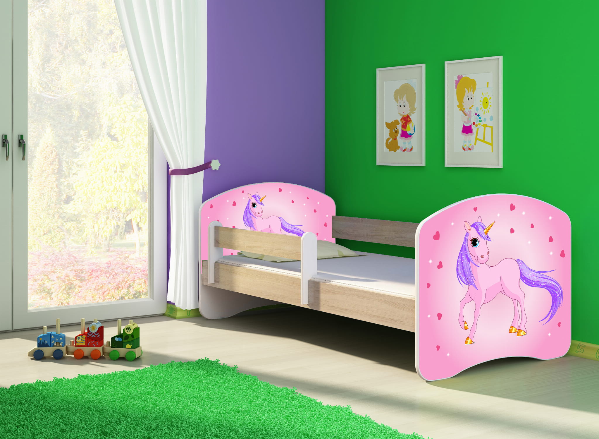 Łóżko dziecięce z barierką 140x70, ACMA II - Kucyk