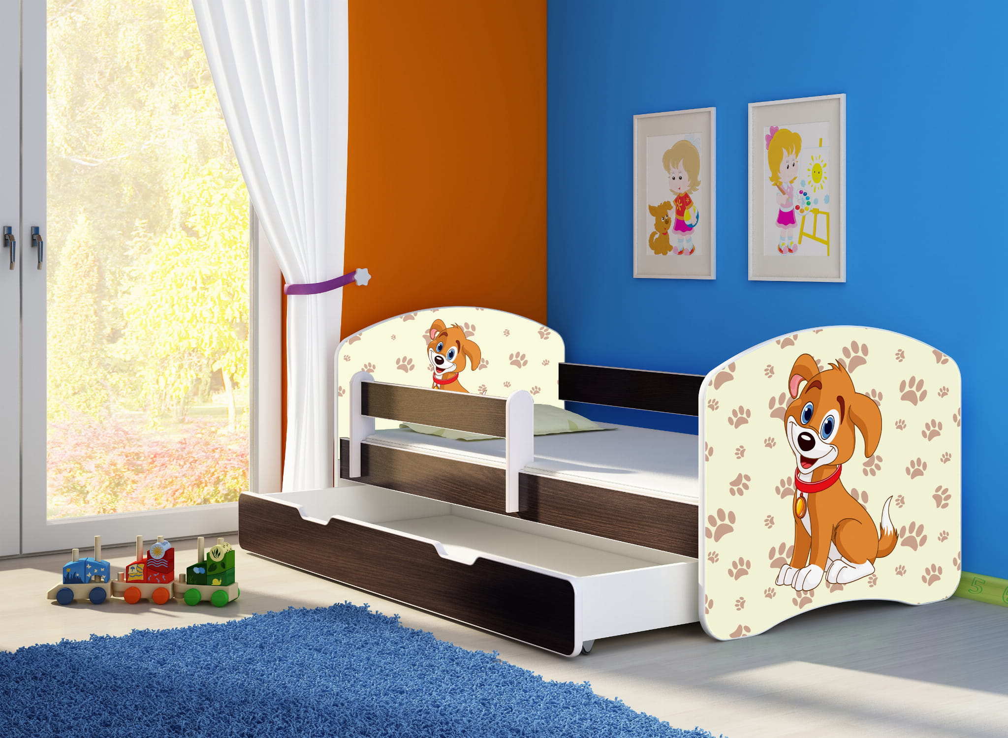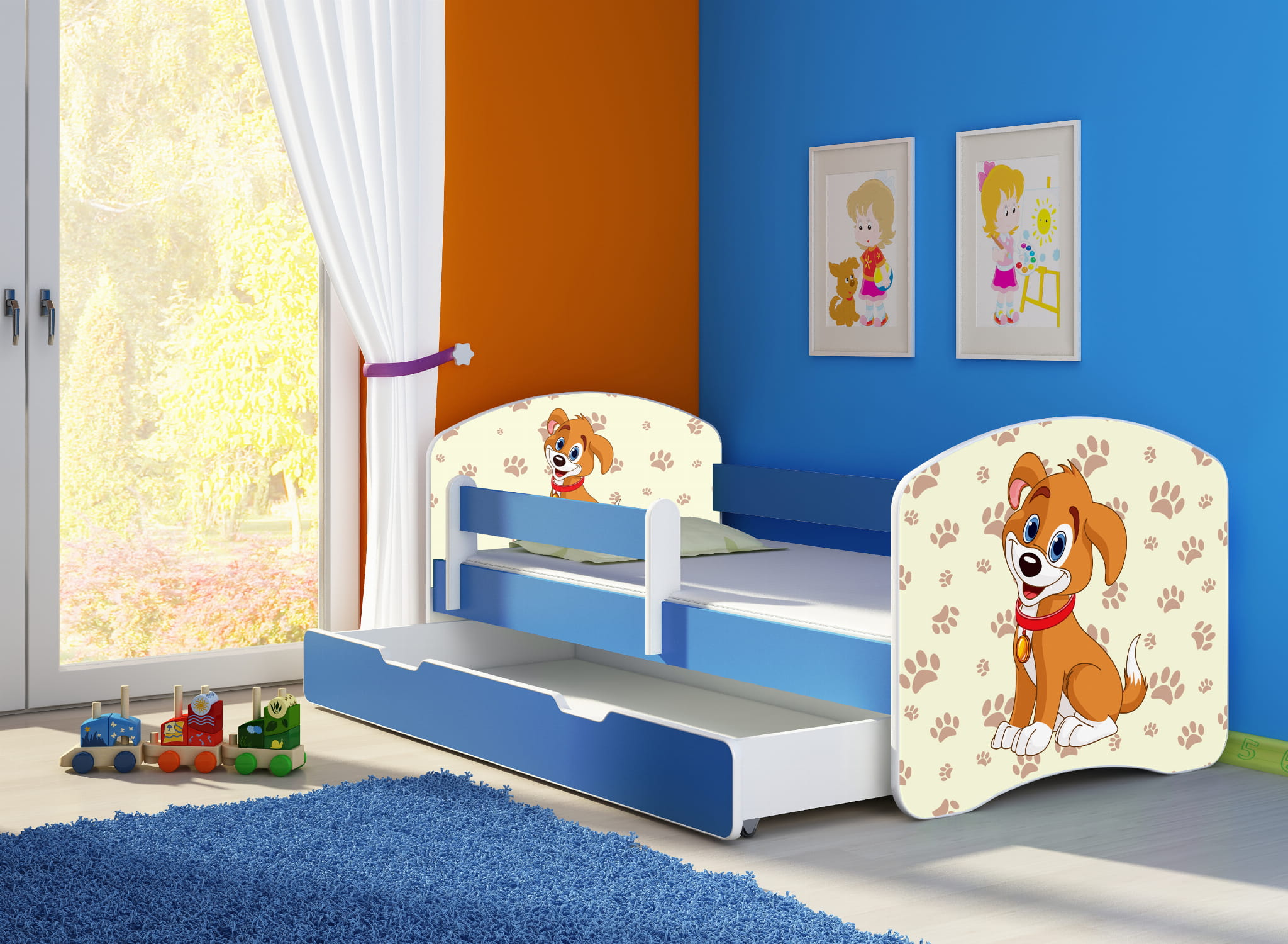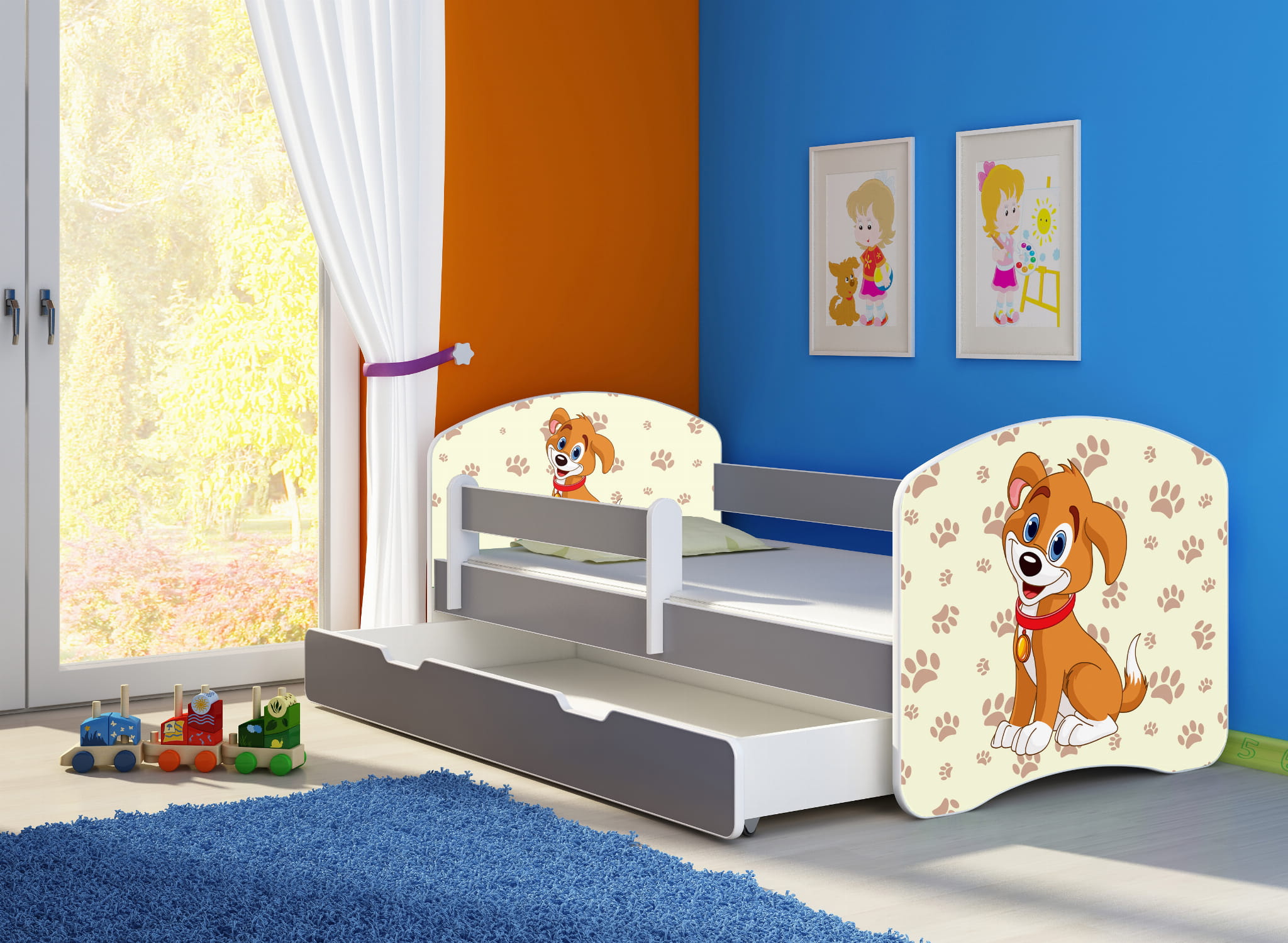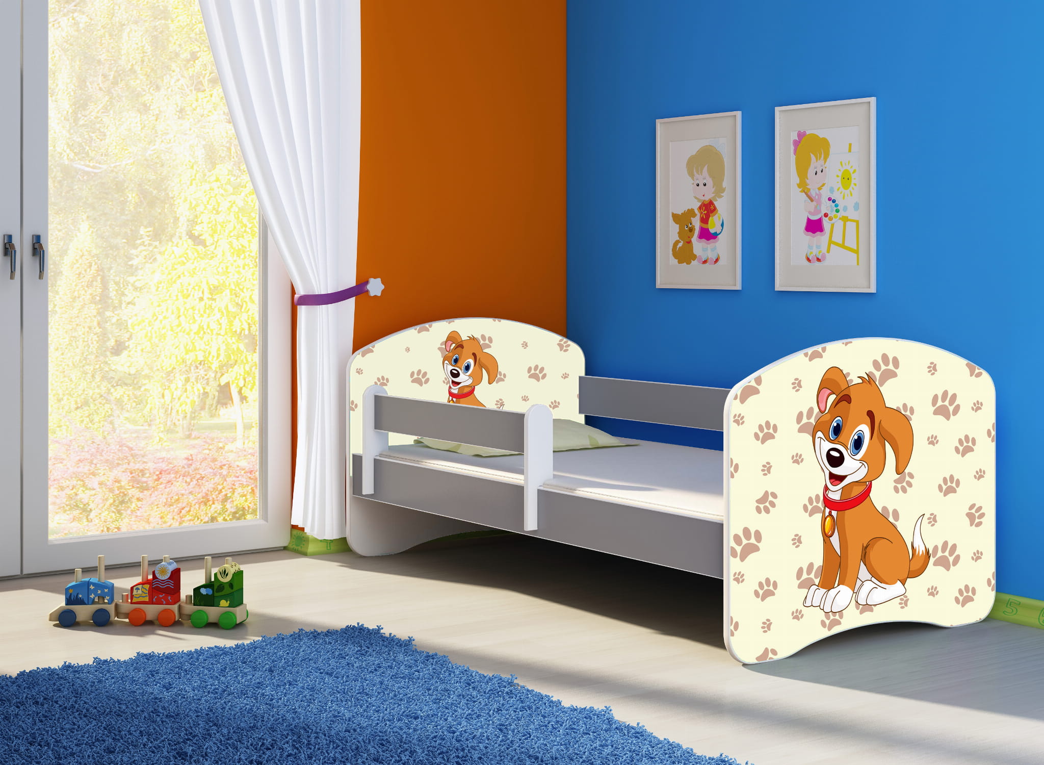 Łóżko dziecięce z barierką 140x70, ACMA II - Piesek