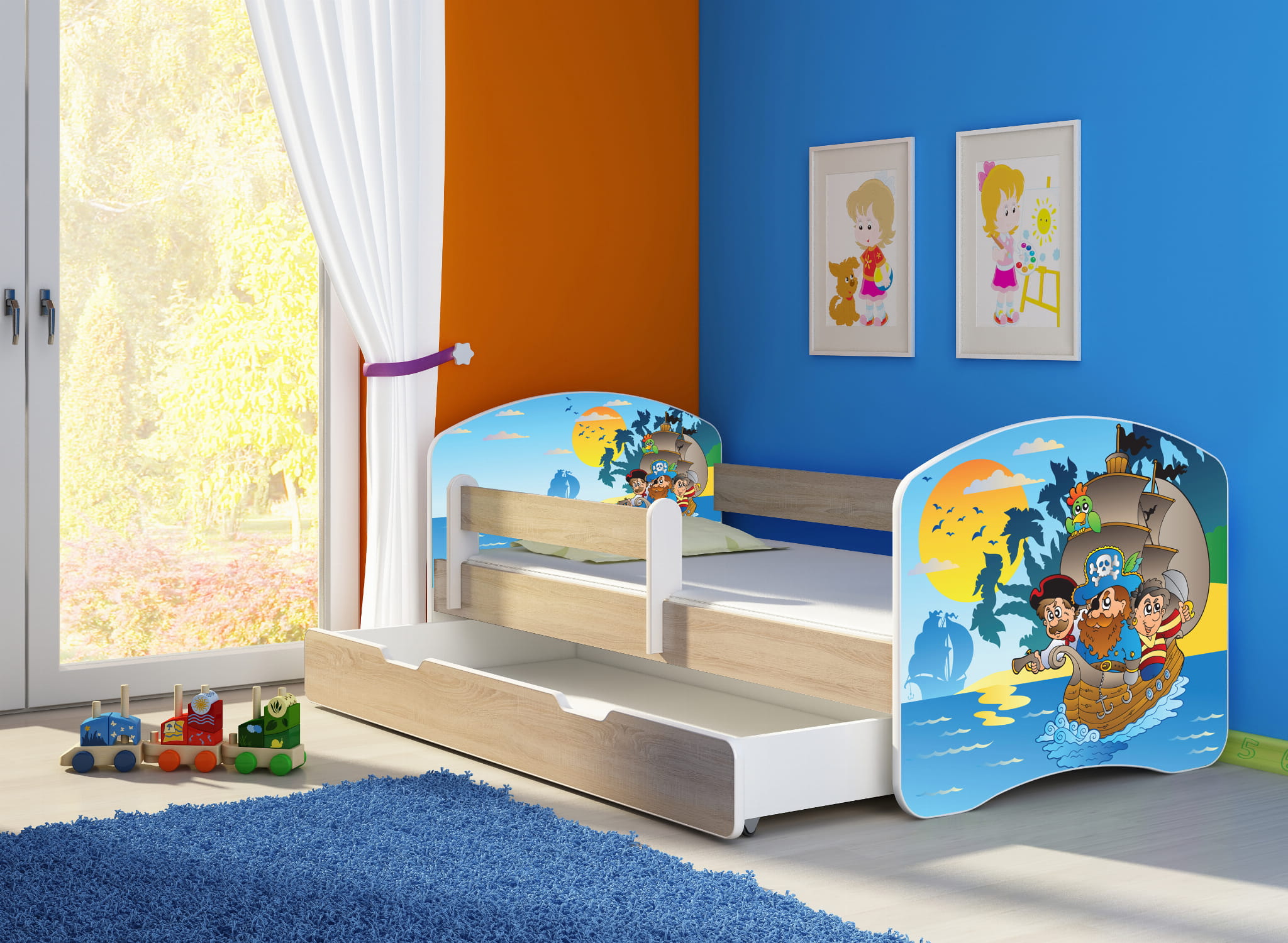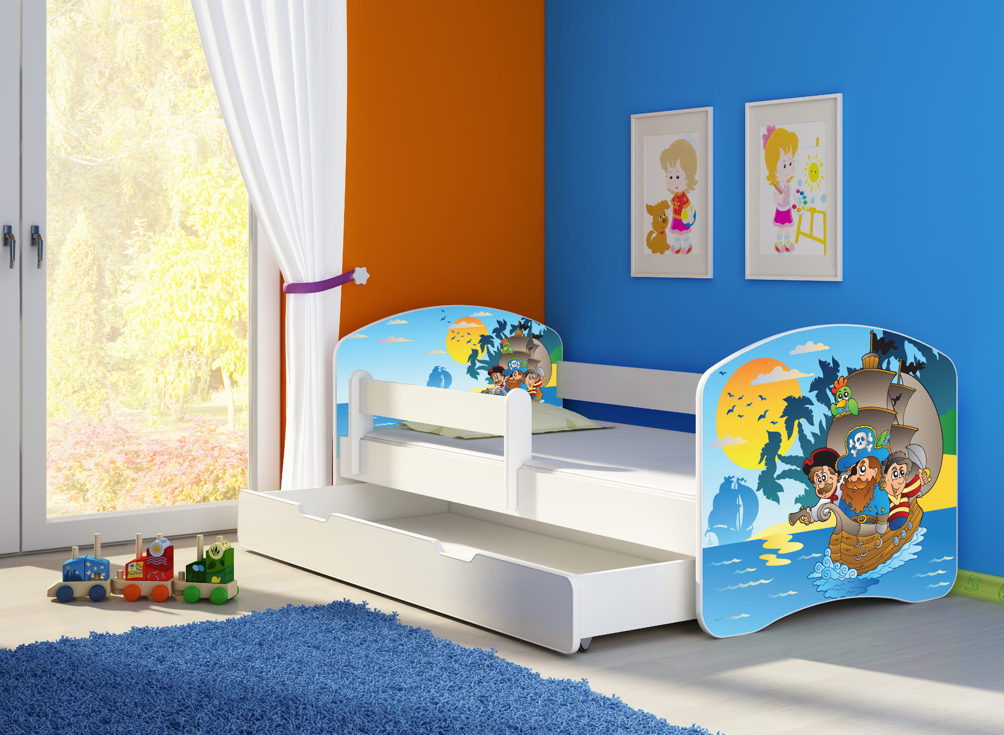 Łóżko dziecięce z barierką 140x70, ACMA II - Piraci