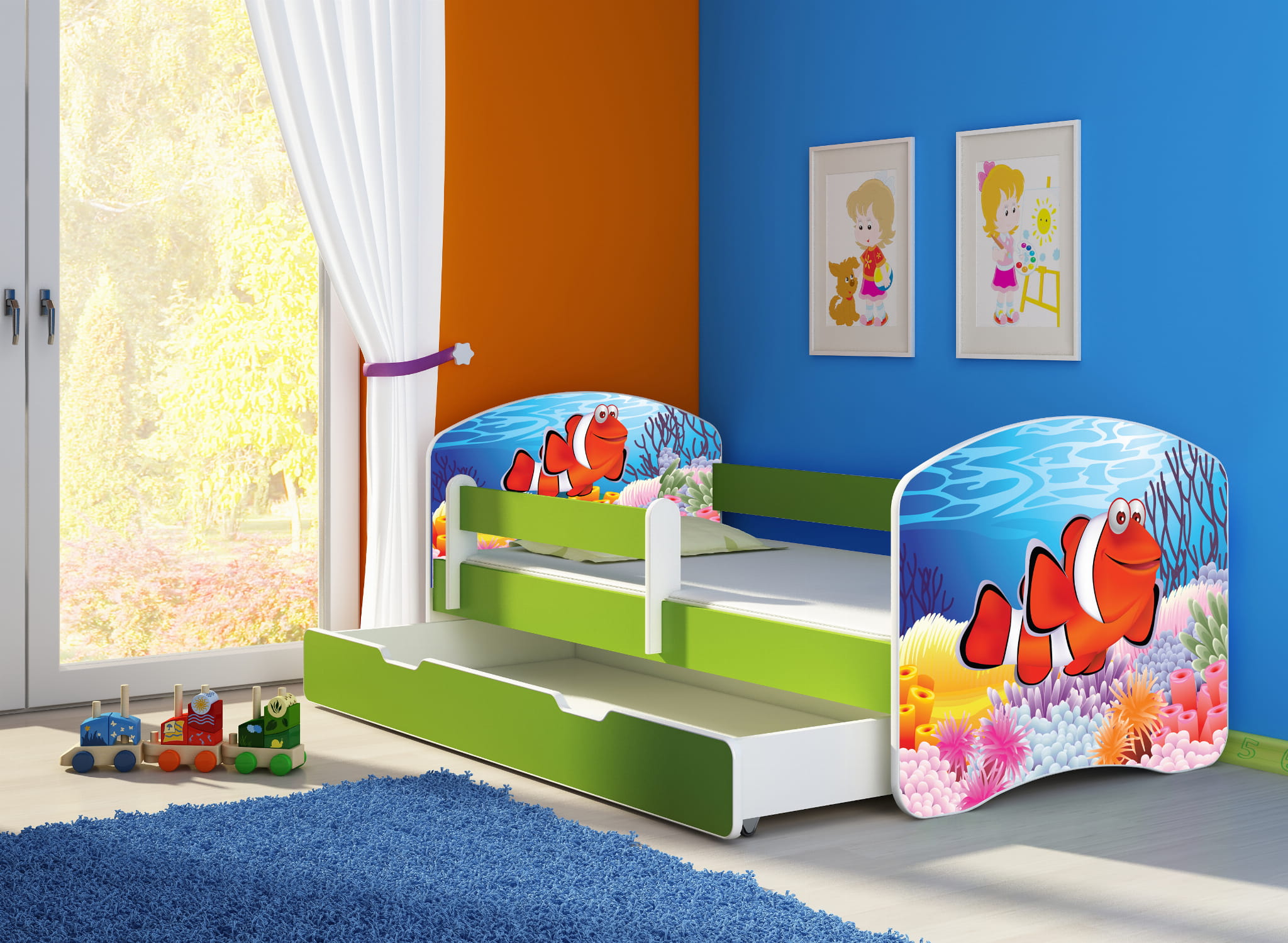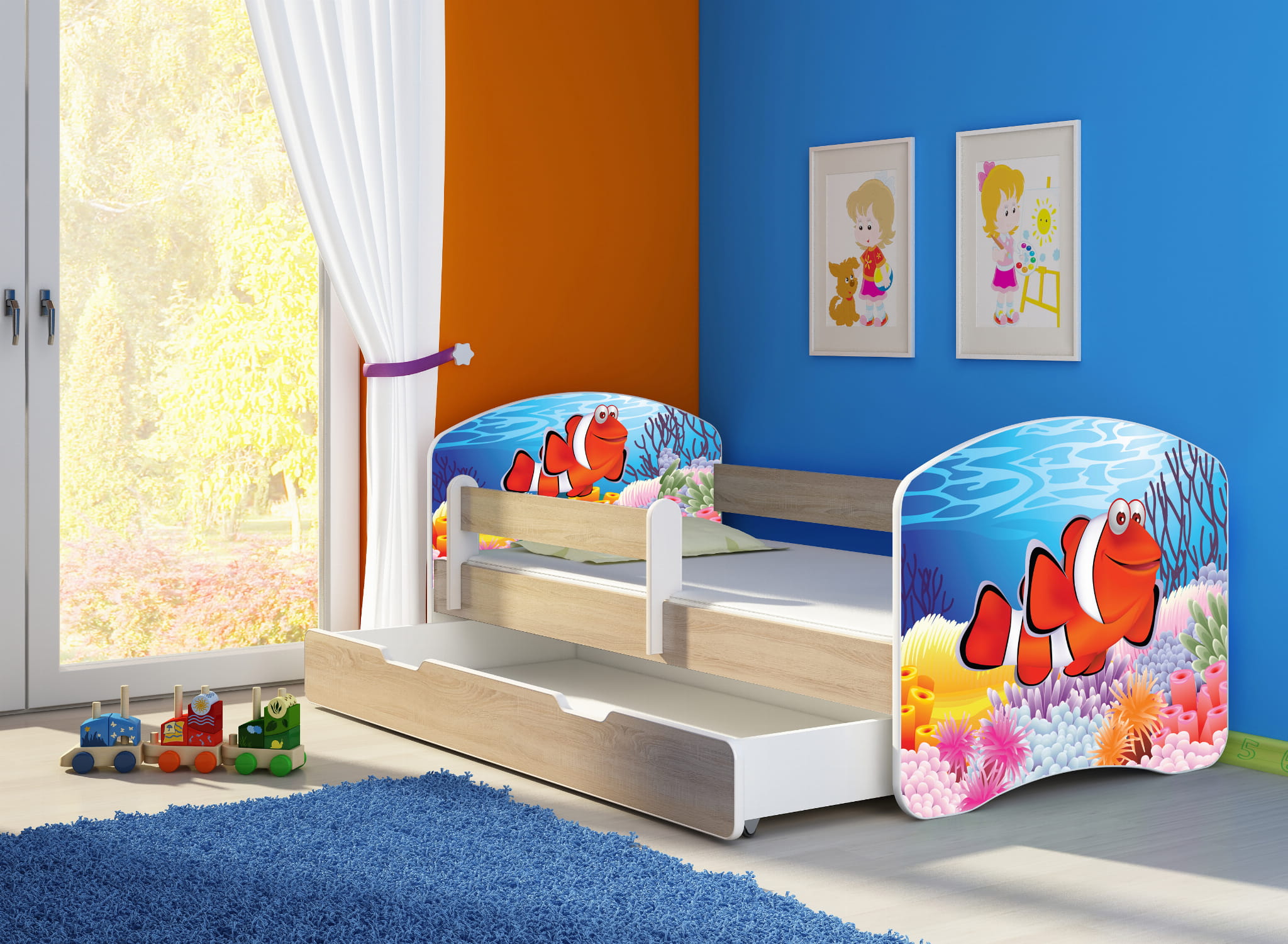 Łóżko dziecięce z barierką 140x70, ACMA II - Rybka nemo