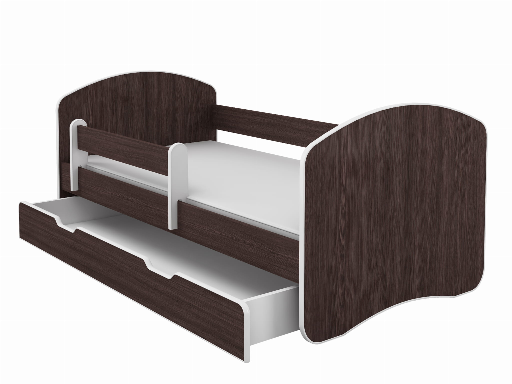 - KOMFORT - Specjalnie wyprofilowane boki łóżka zabezpieczają dziecko przed wypadnięciem w czasie snu