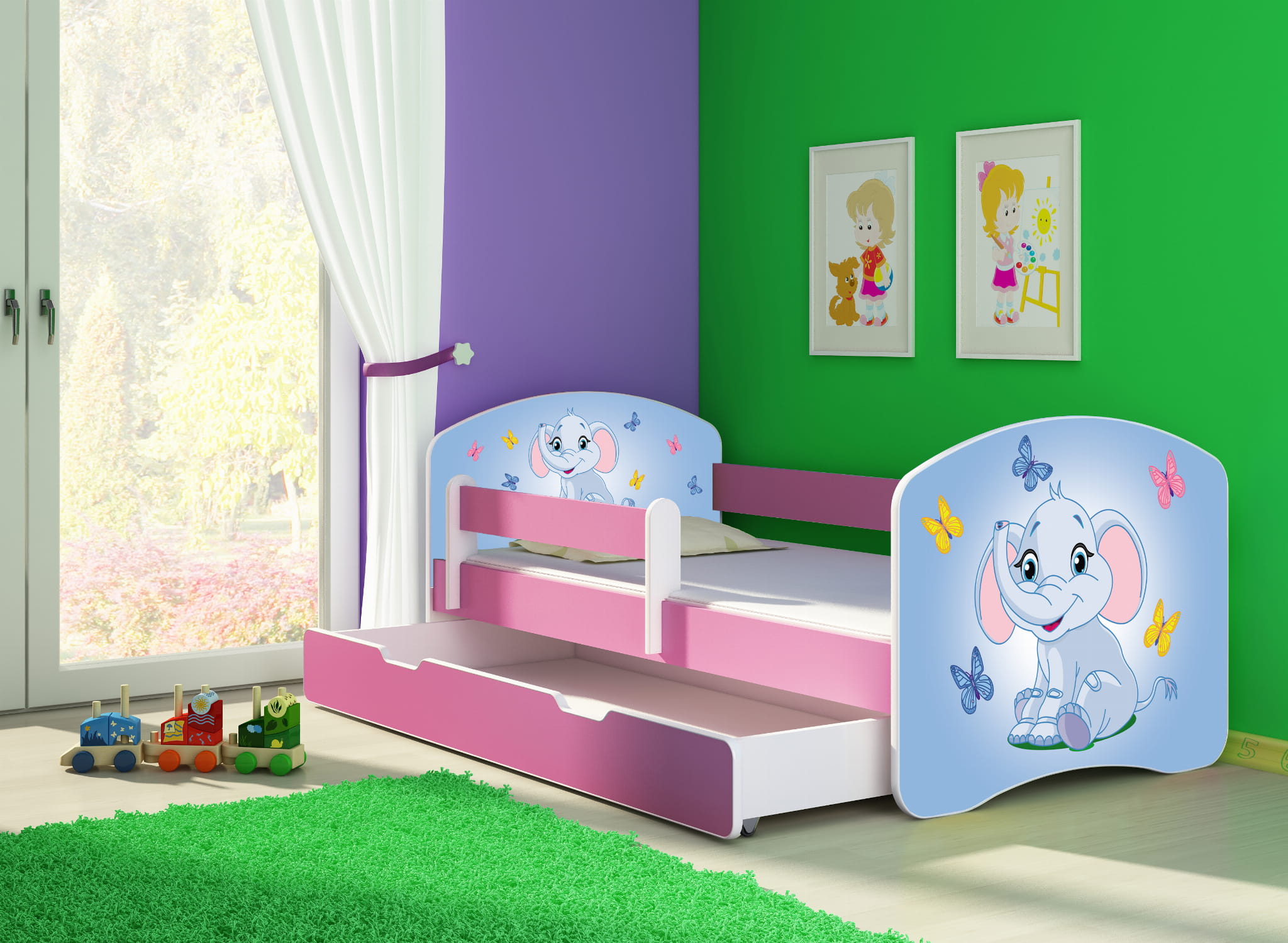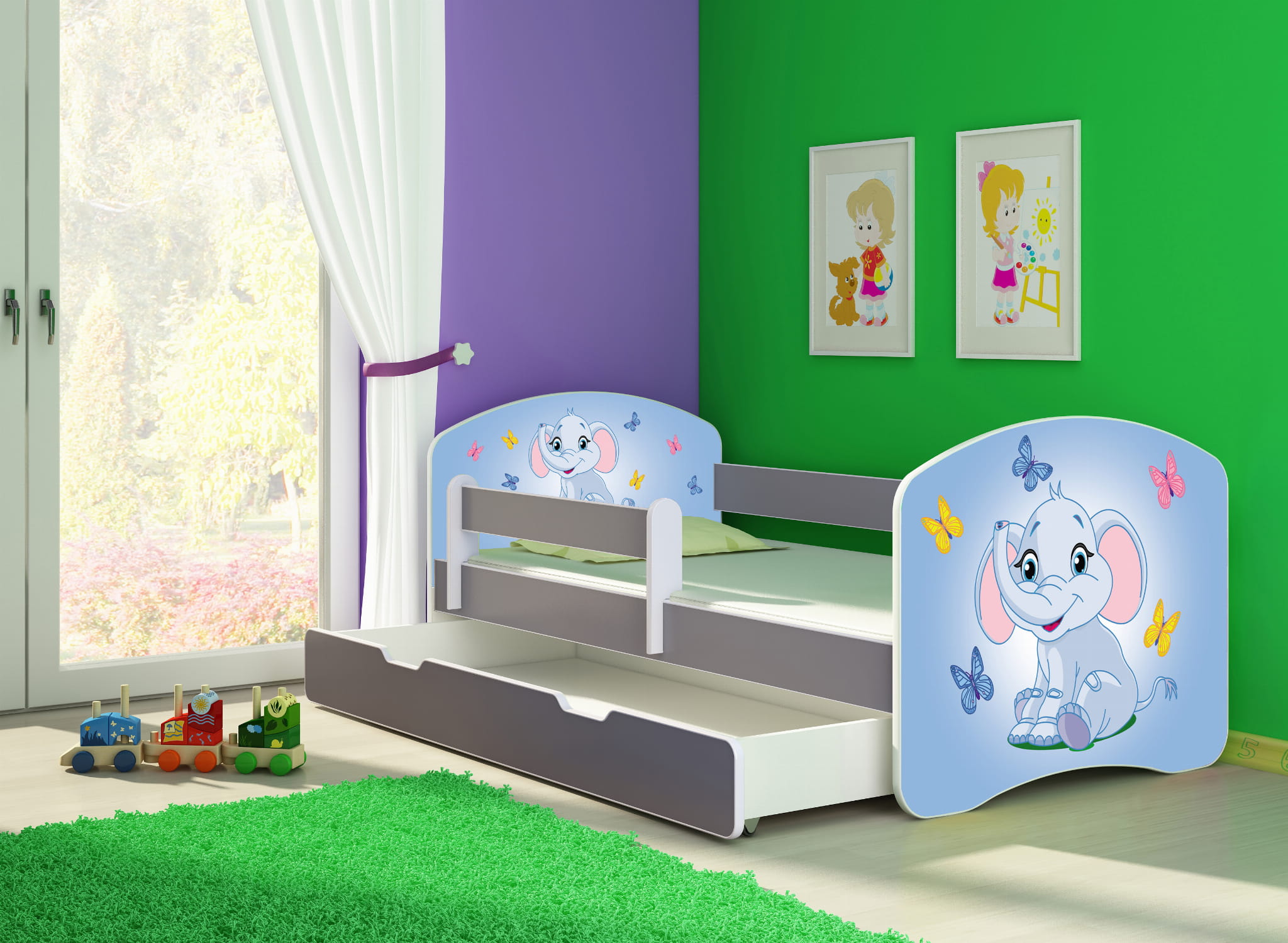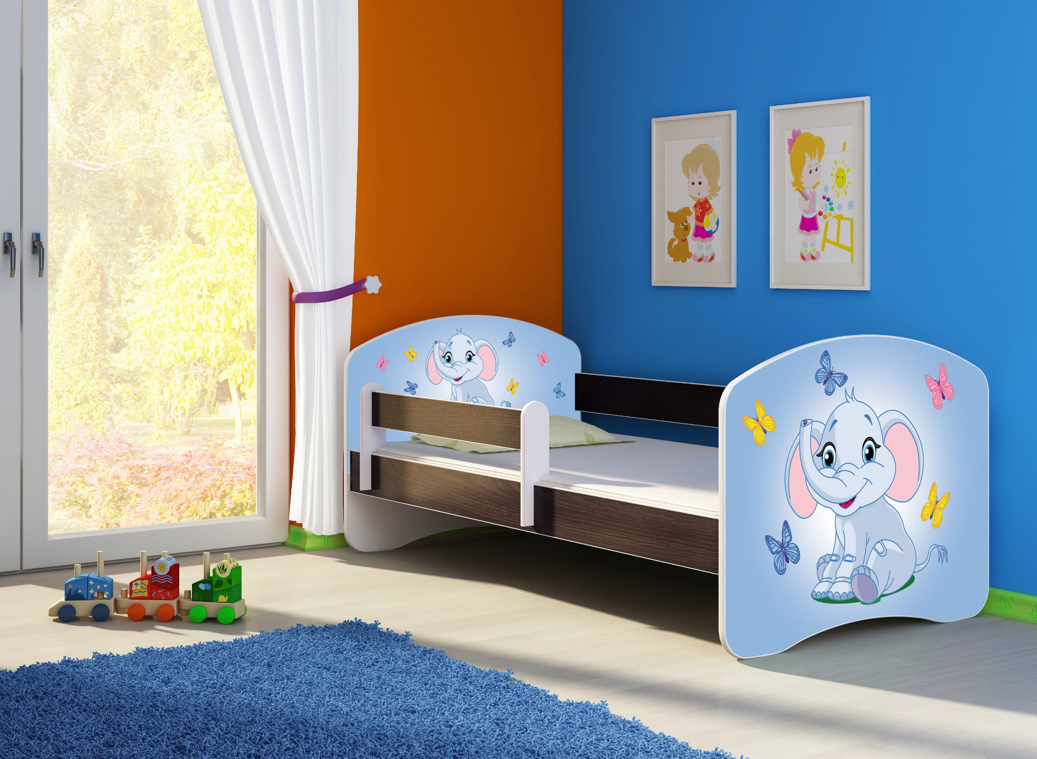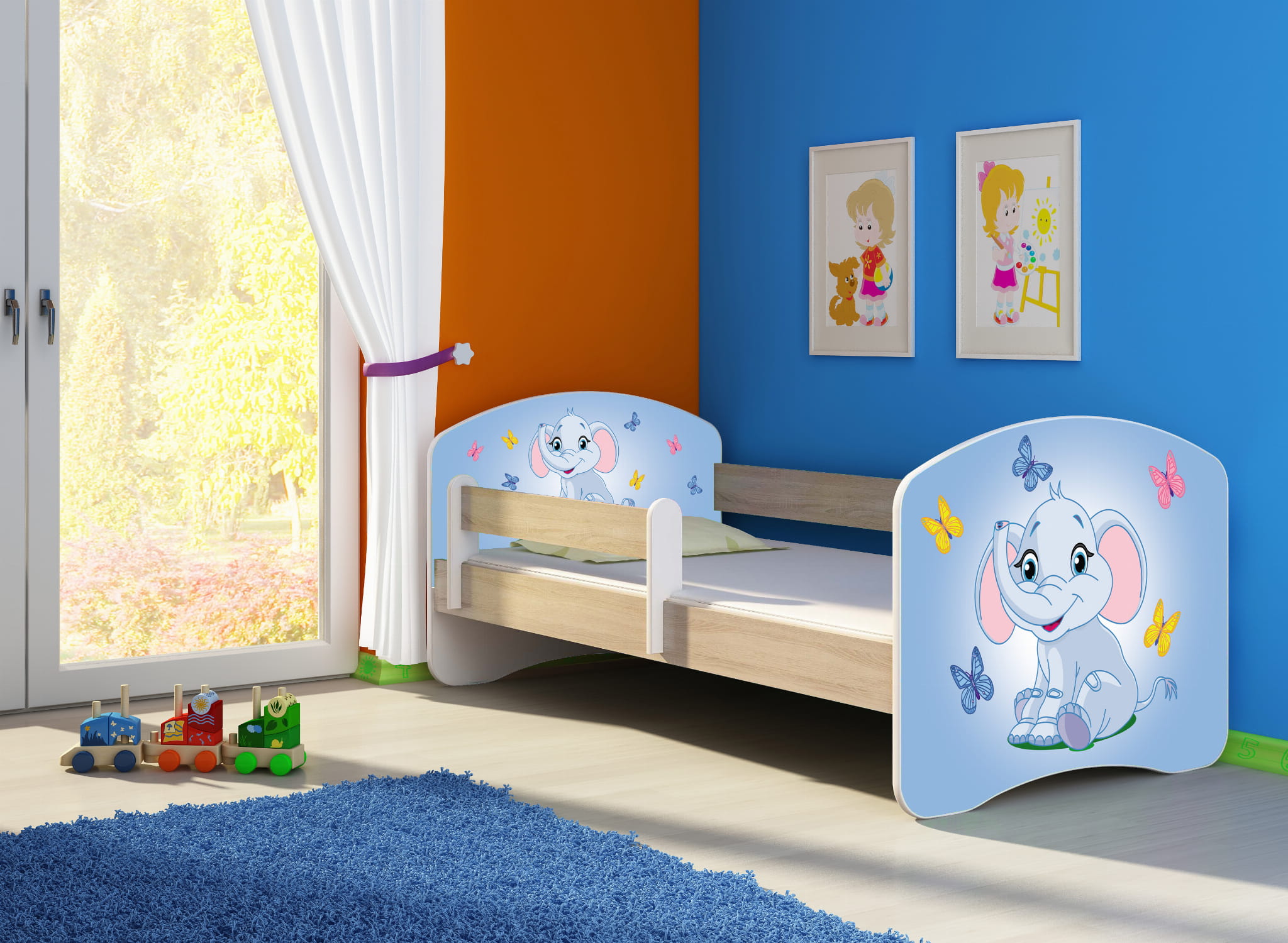 Łóżko dziecięce z barierką 160x80, ACMA II - Niebieski Słonik