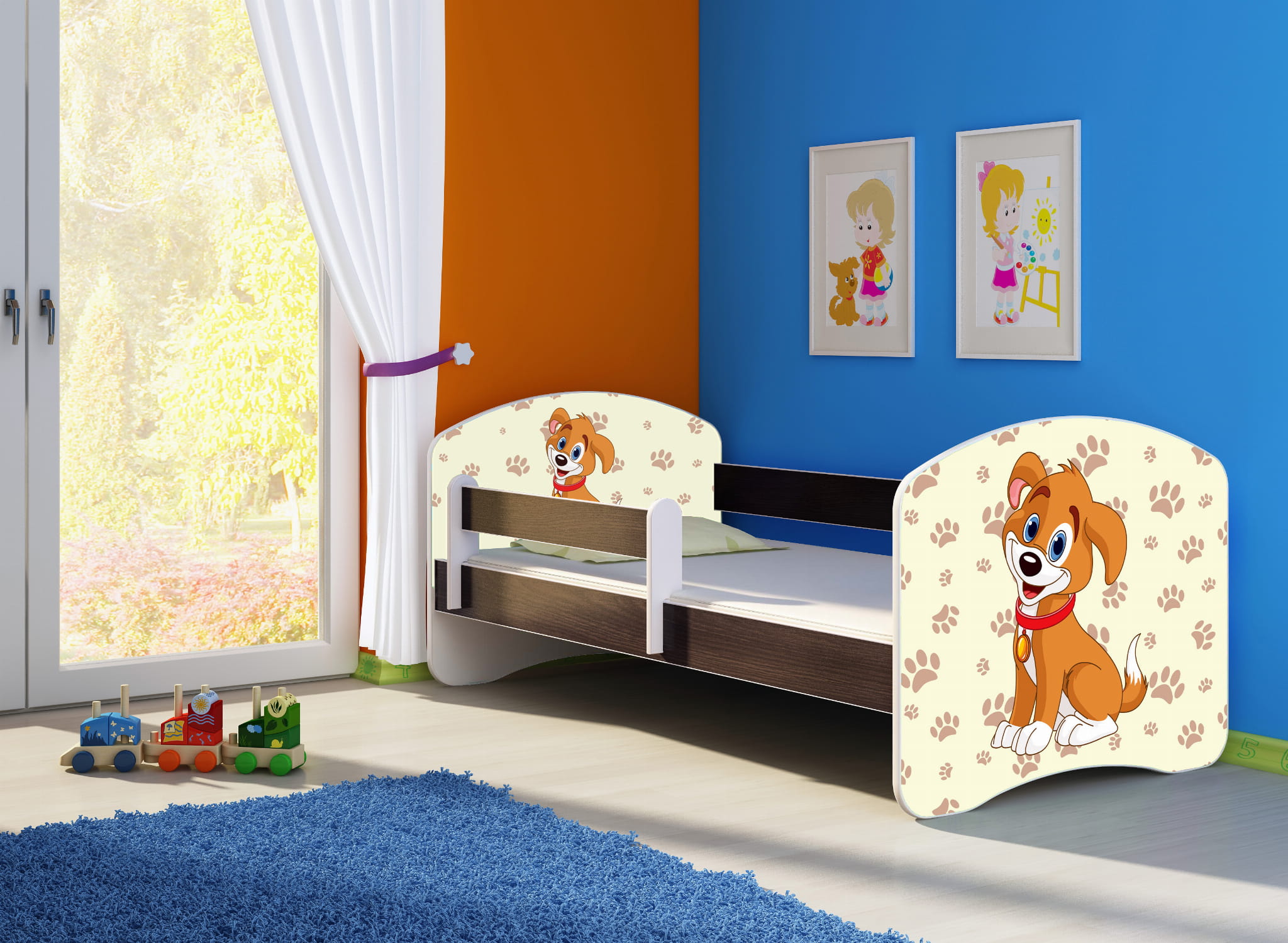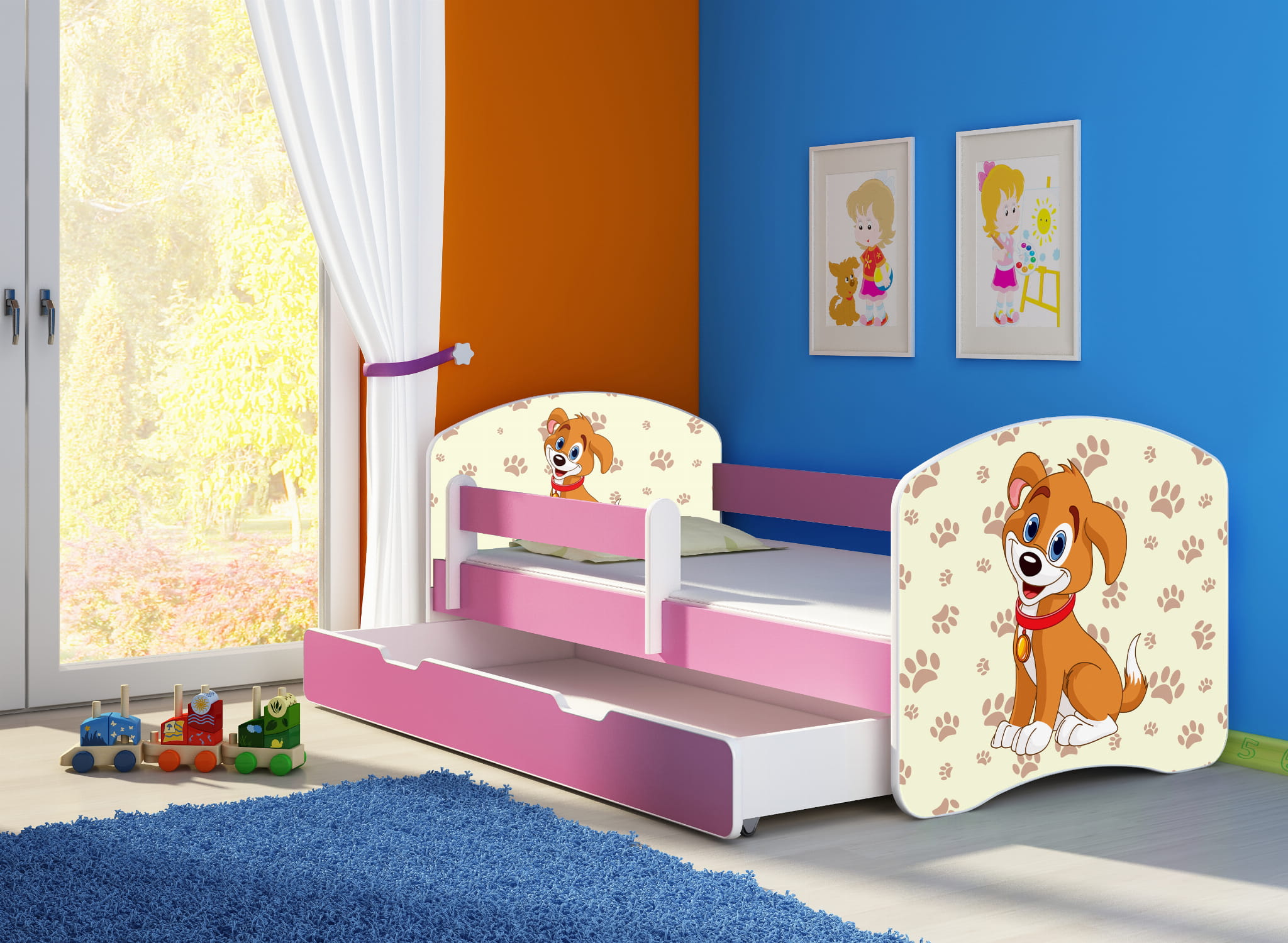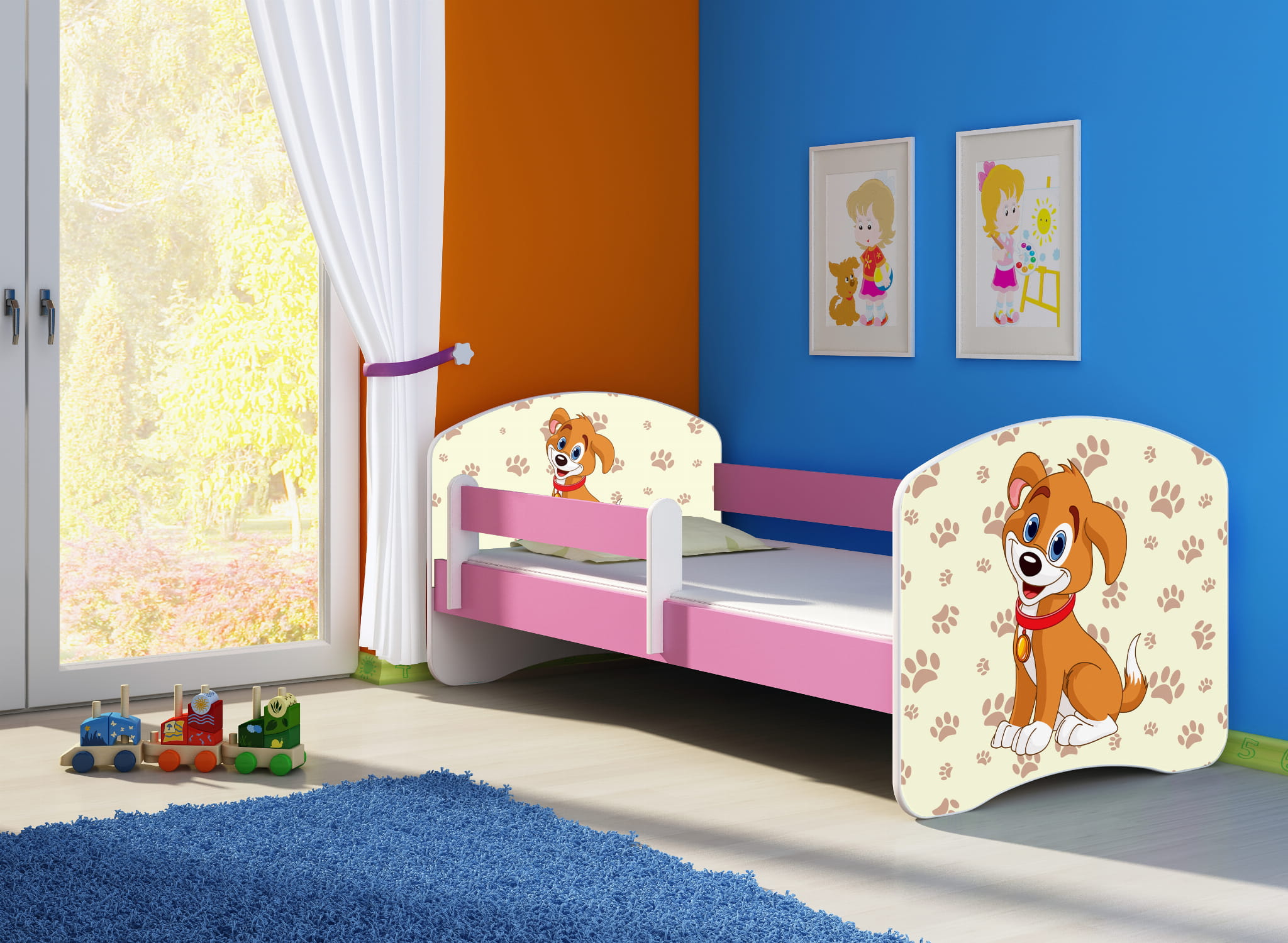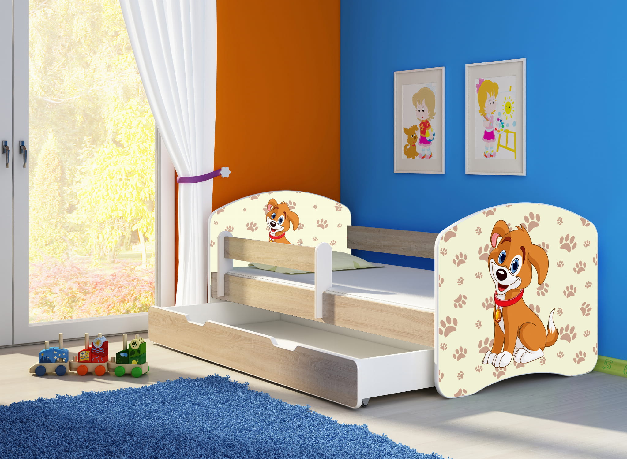 Łóżko dziecięce z barierką 160x80, ACMA II - Piesek