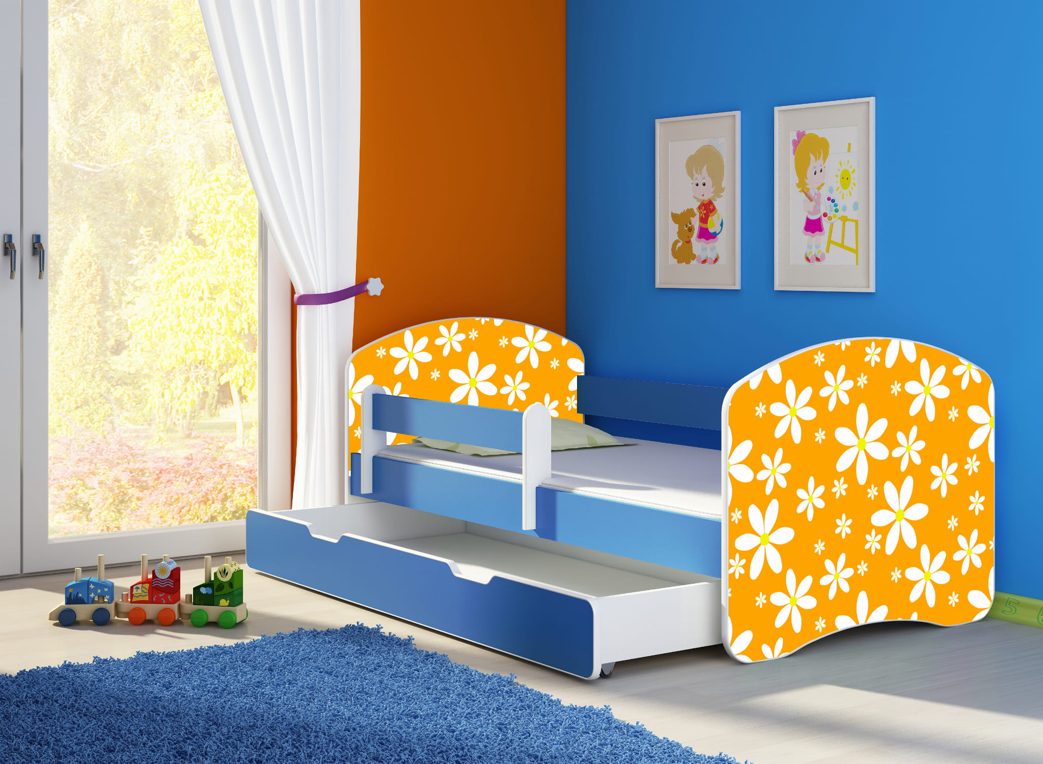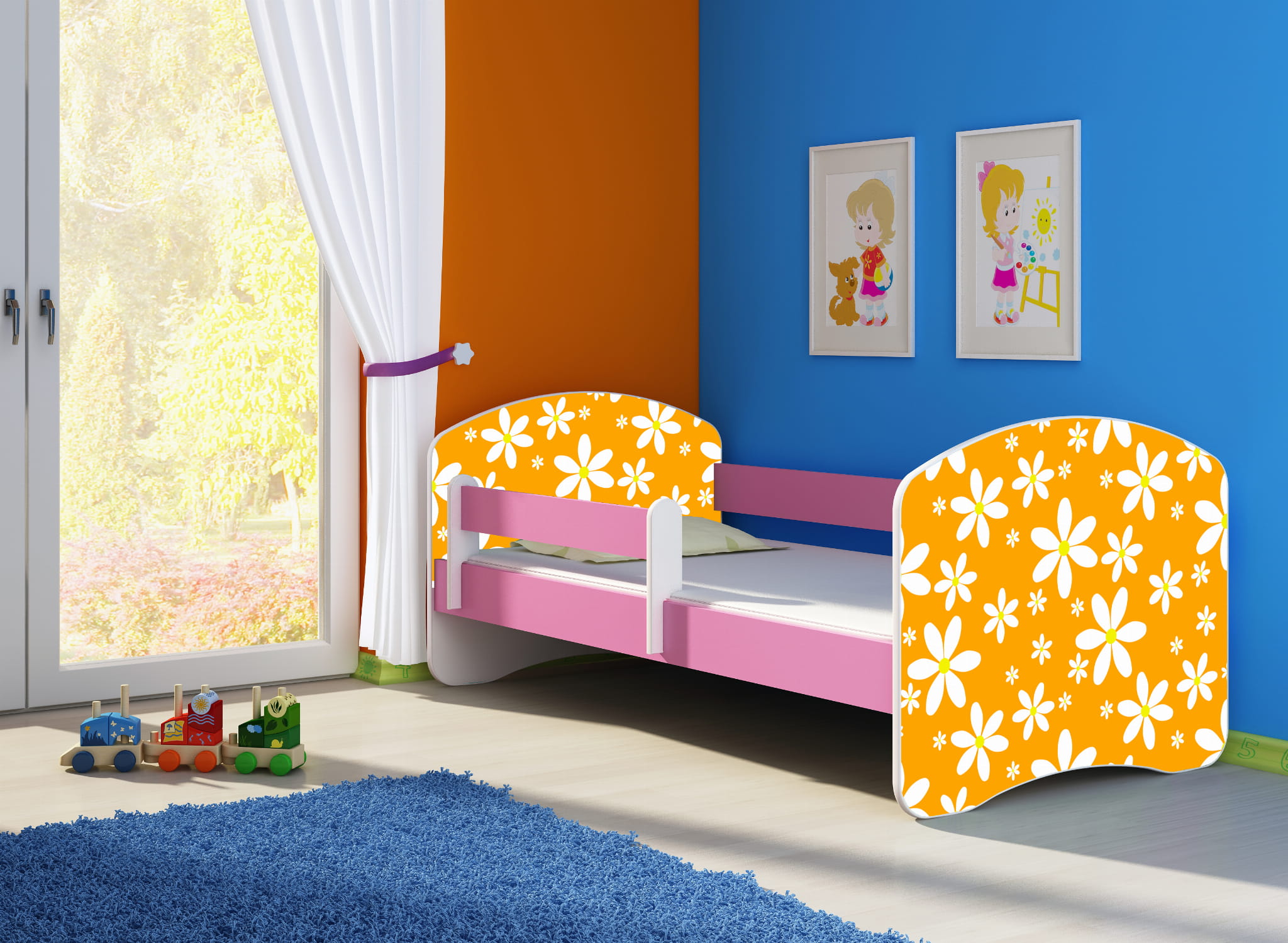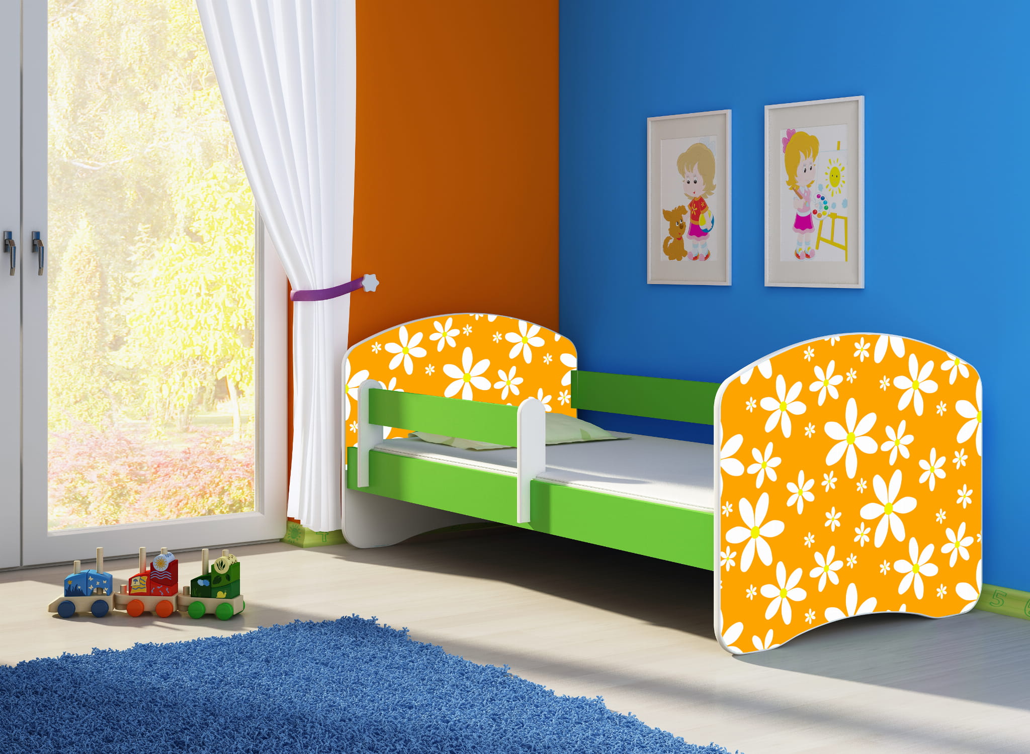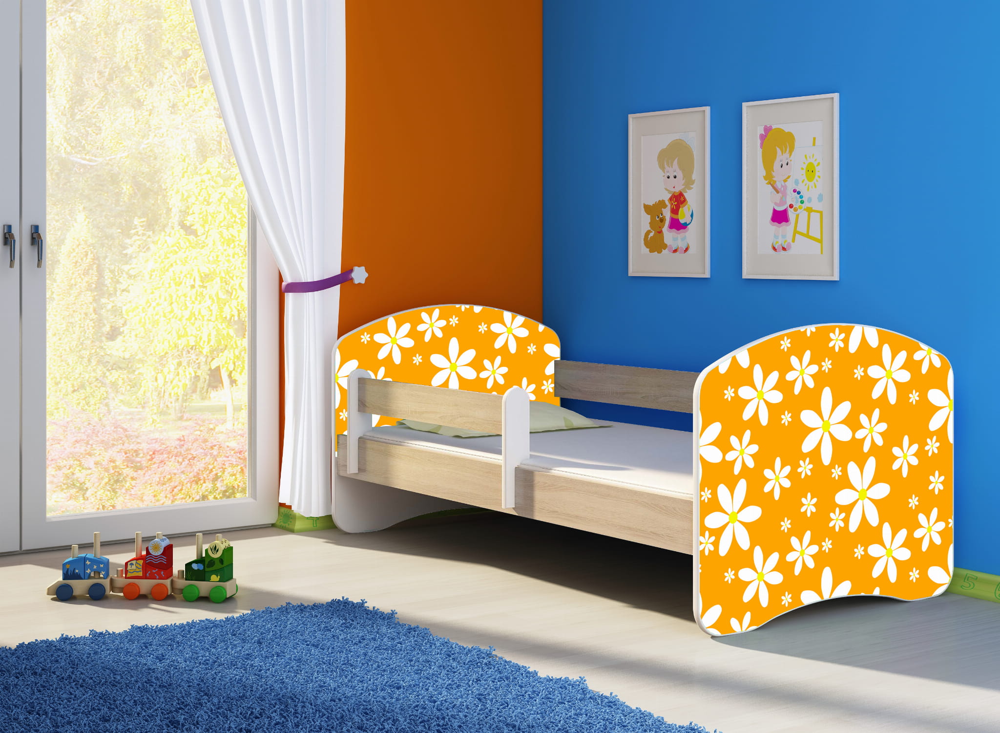 Łóżko dziecięce z barierką 160x80, ACMA II - Pomarańczowe stokrotki