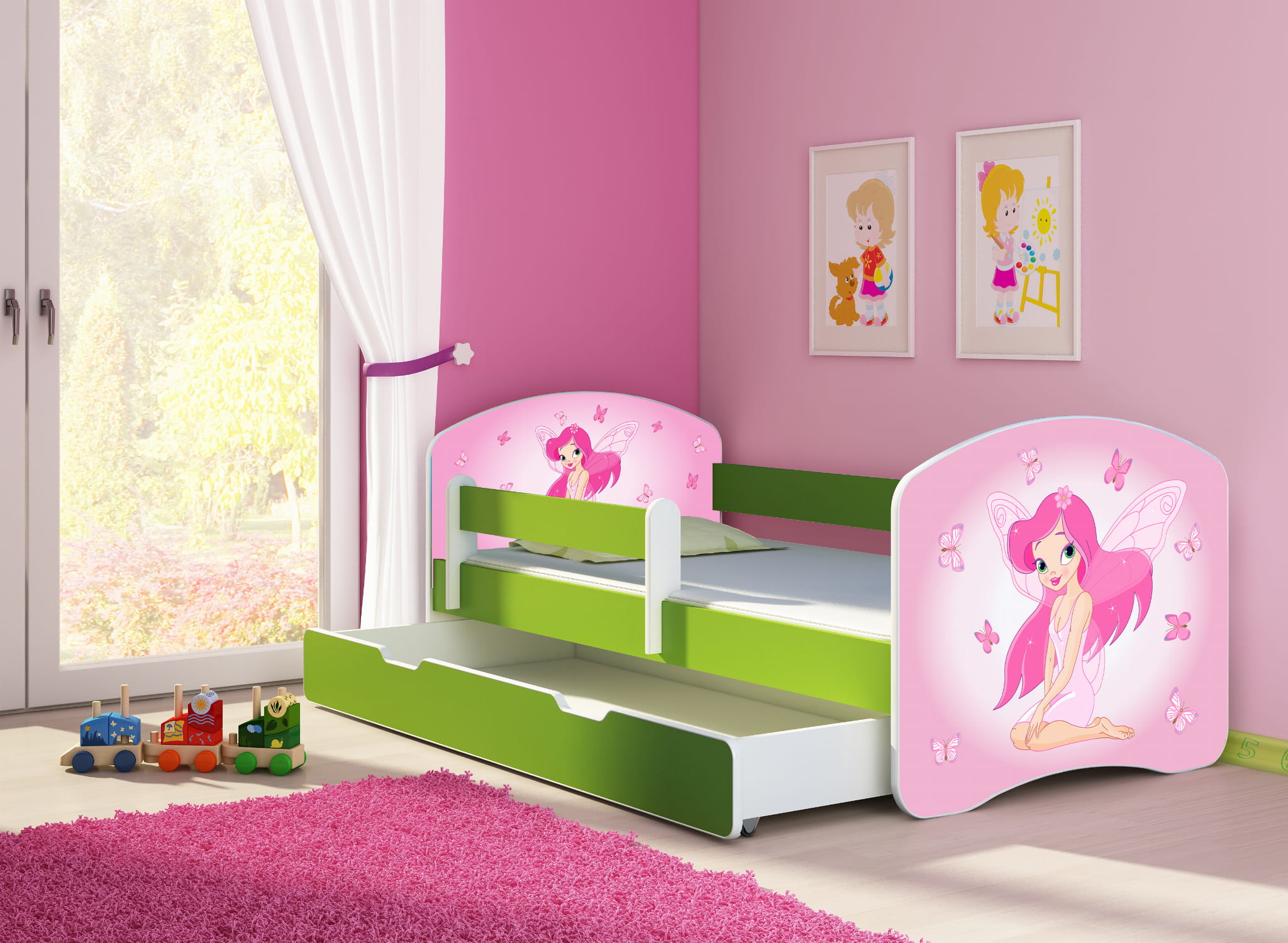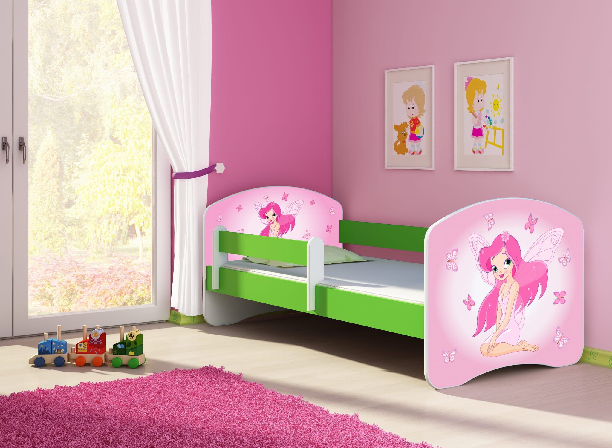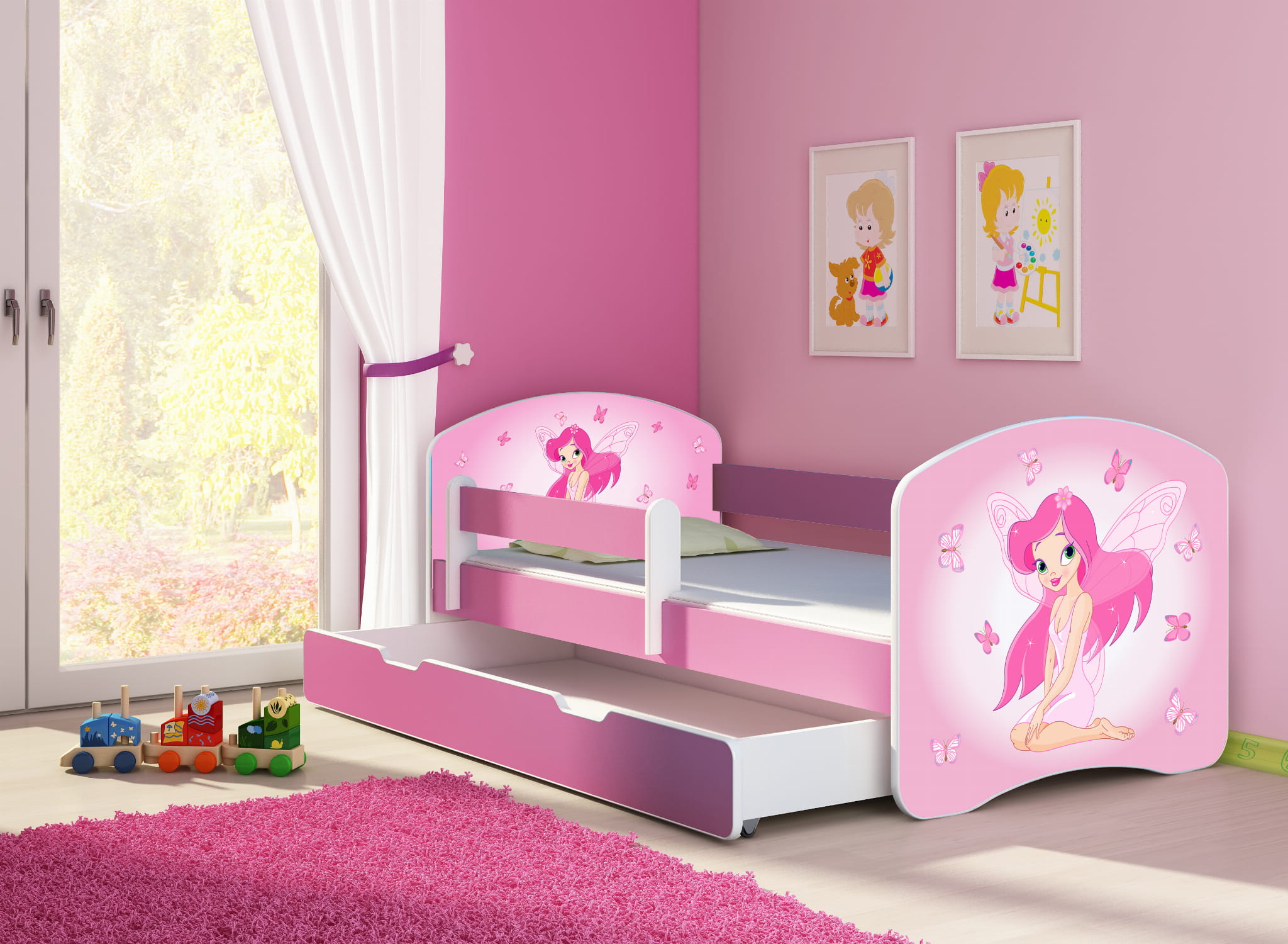 Łóżko dziecięce z barierką 160x80, ACMA II - Różowa wróżka
