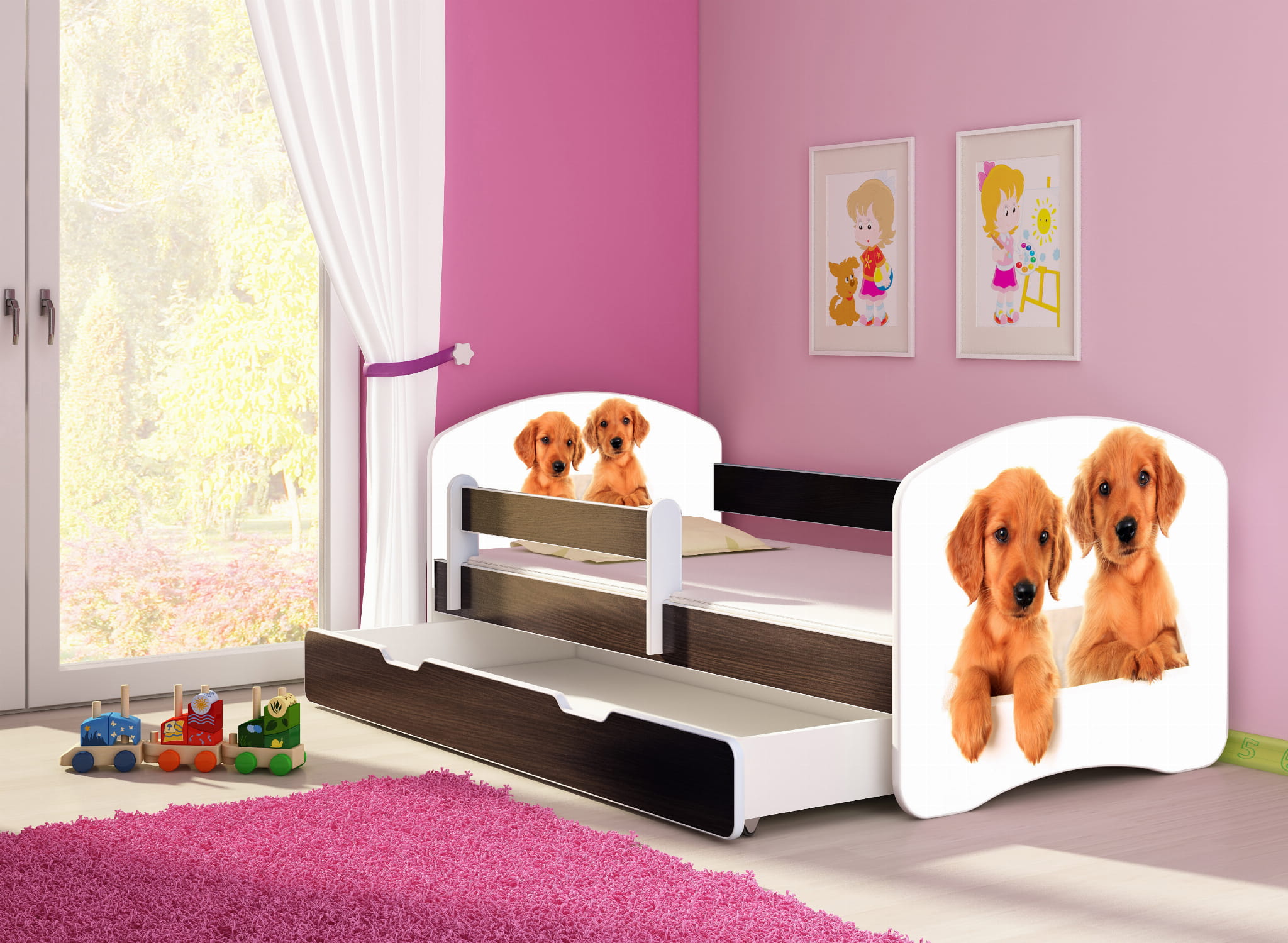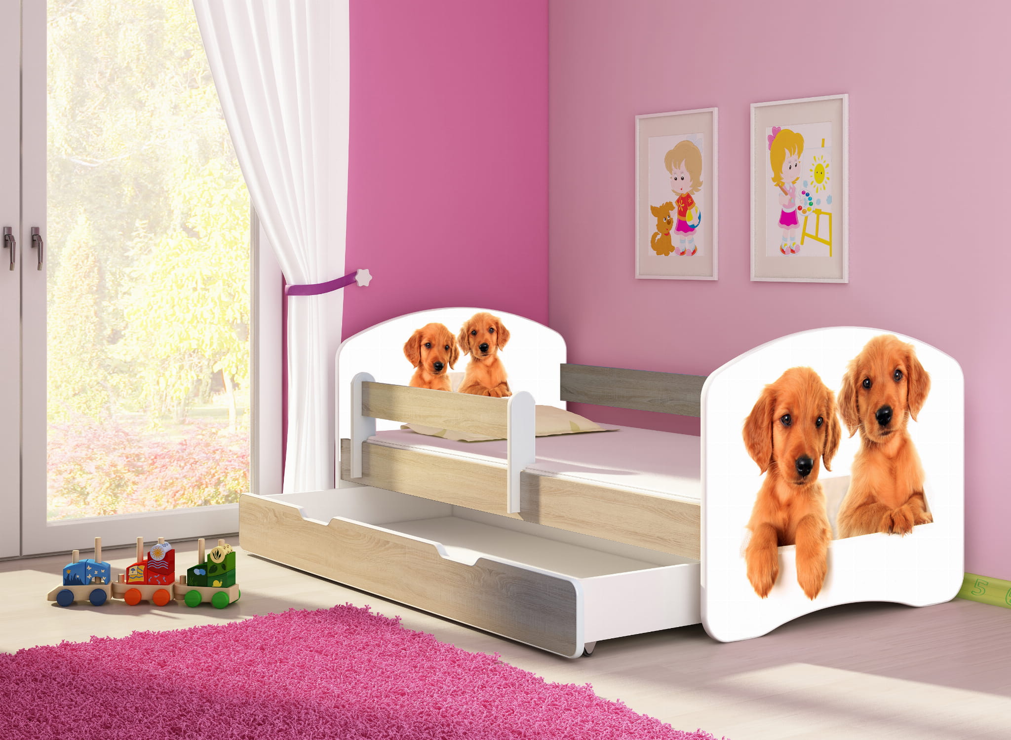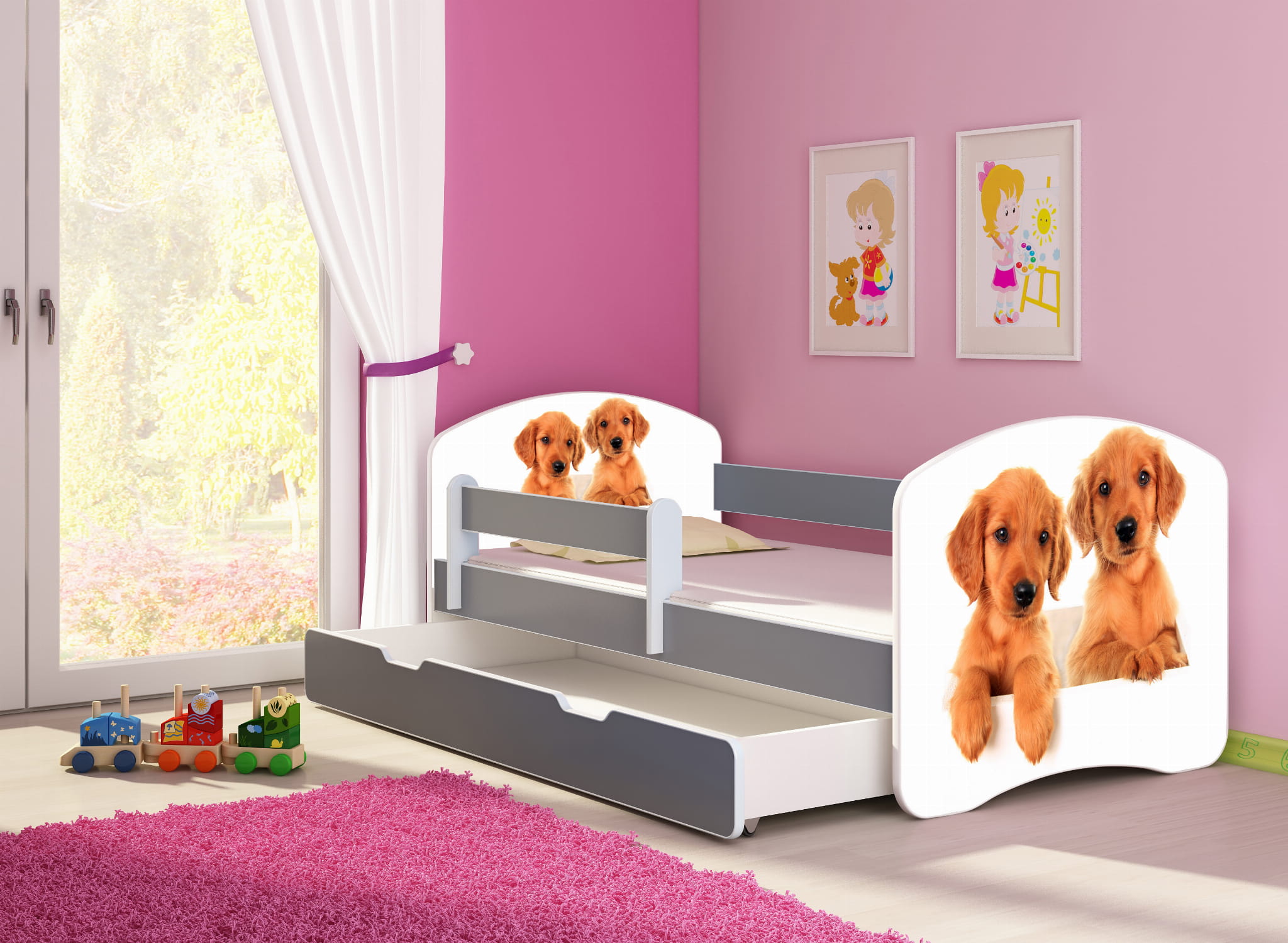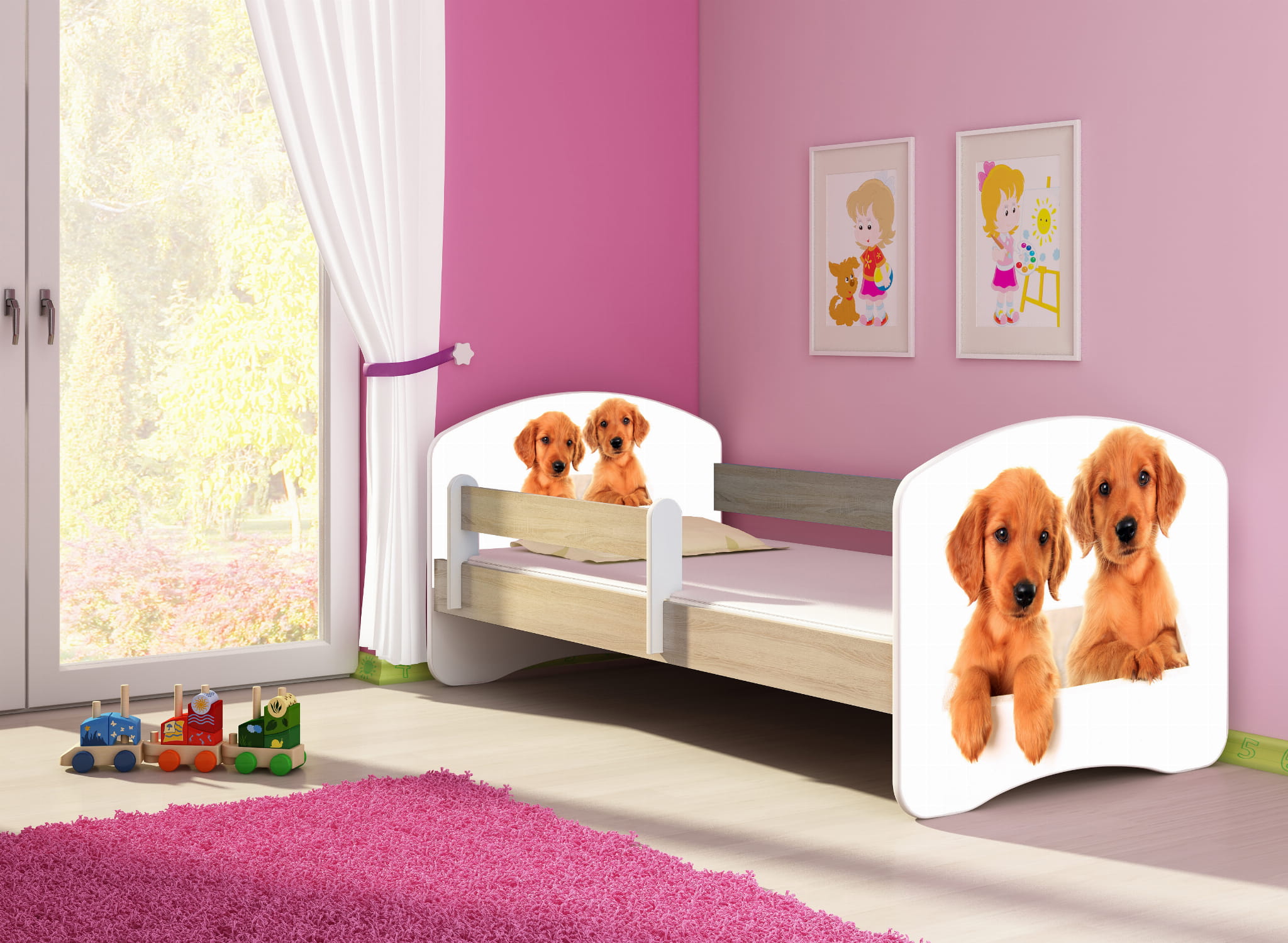 Łóżko dziecięce z barierką 160x80, ACMA II - Szczeniaczki