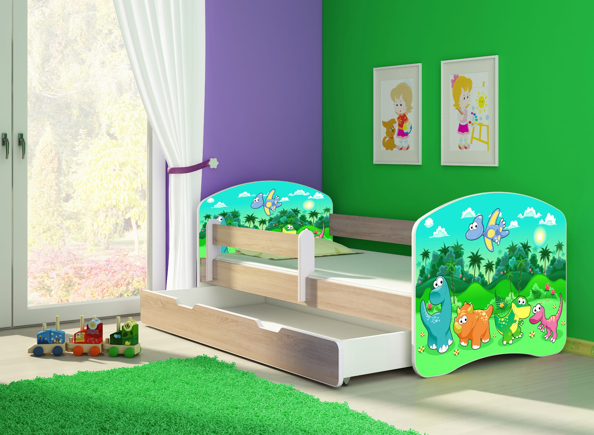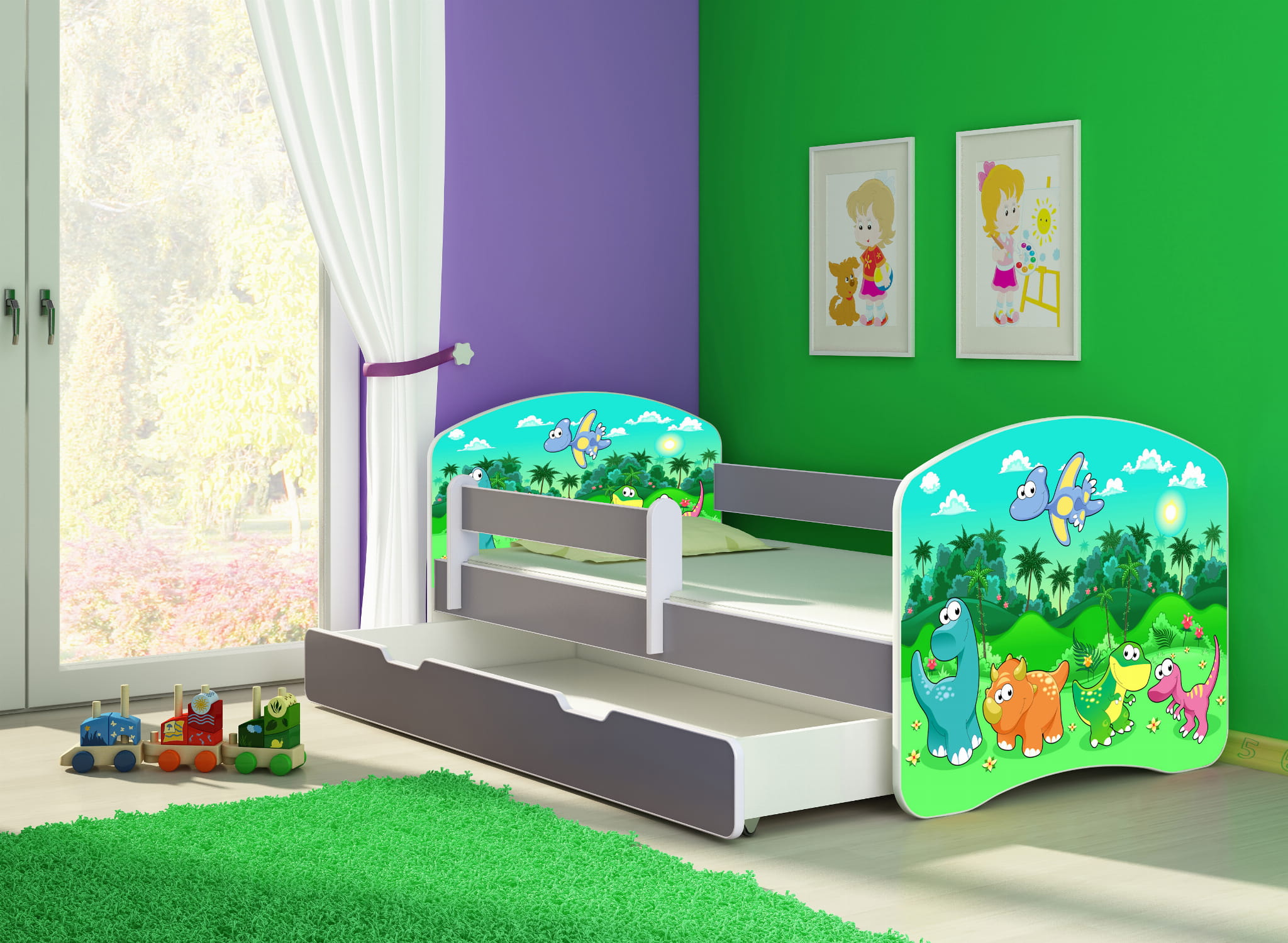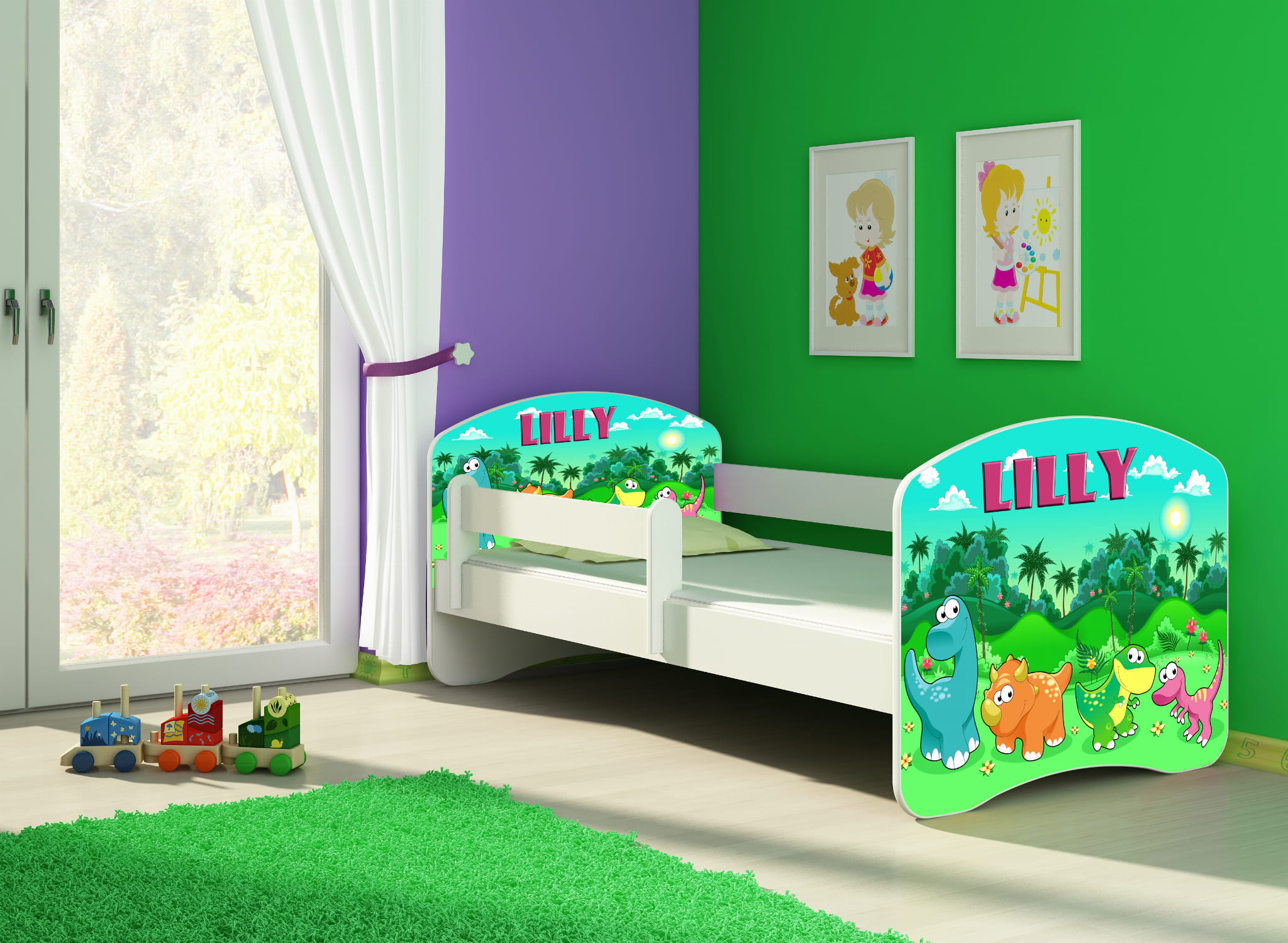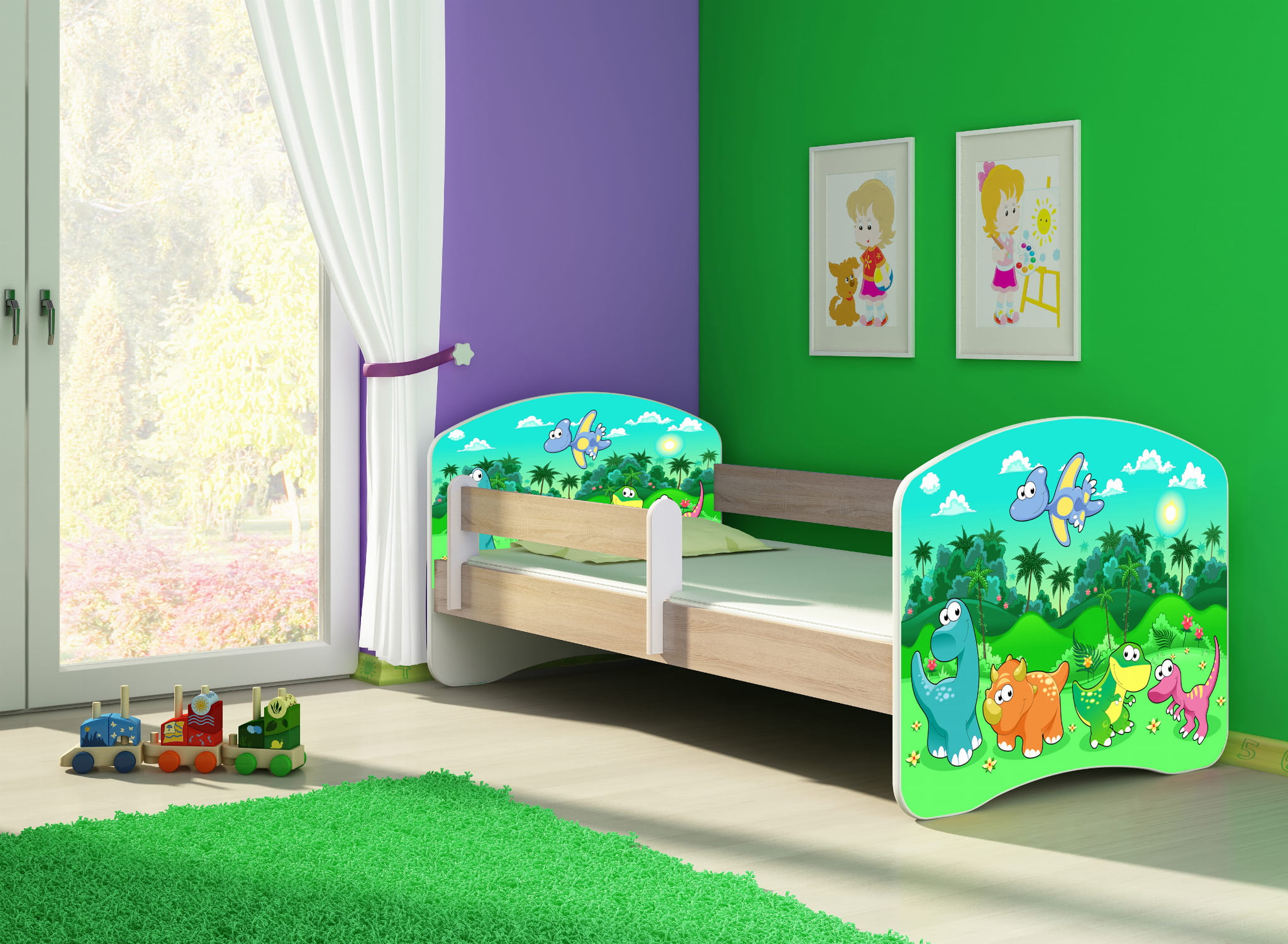Łóżko dziecięce z barierką 180x80, ACMA II - Dinozaury