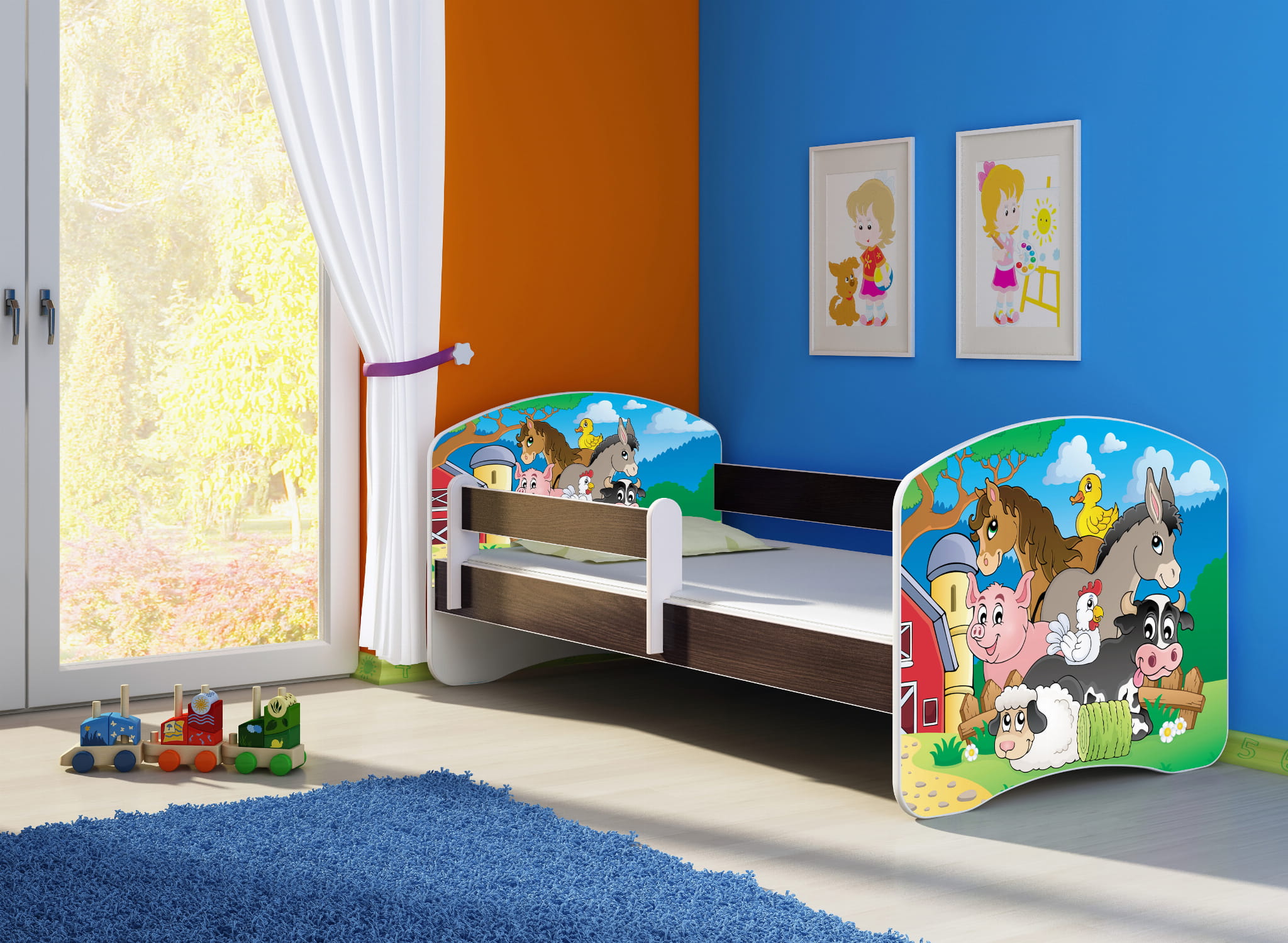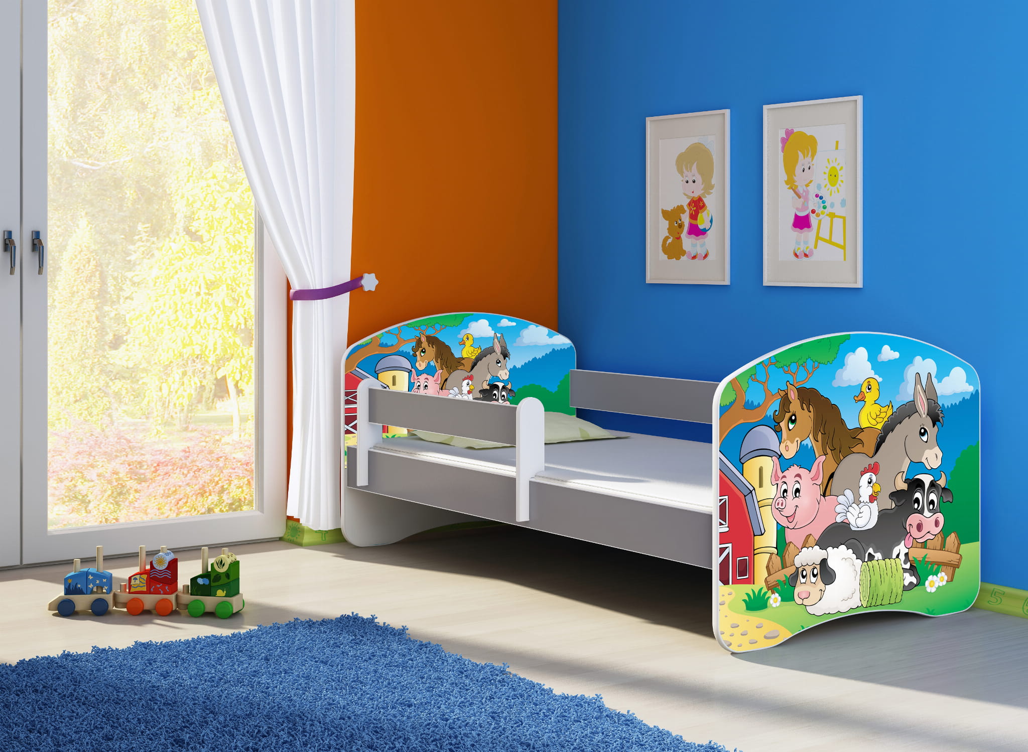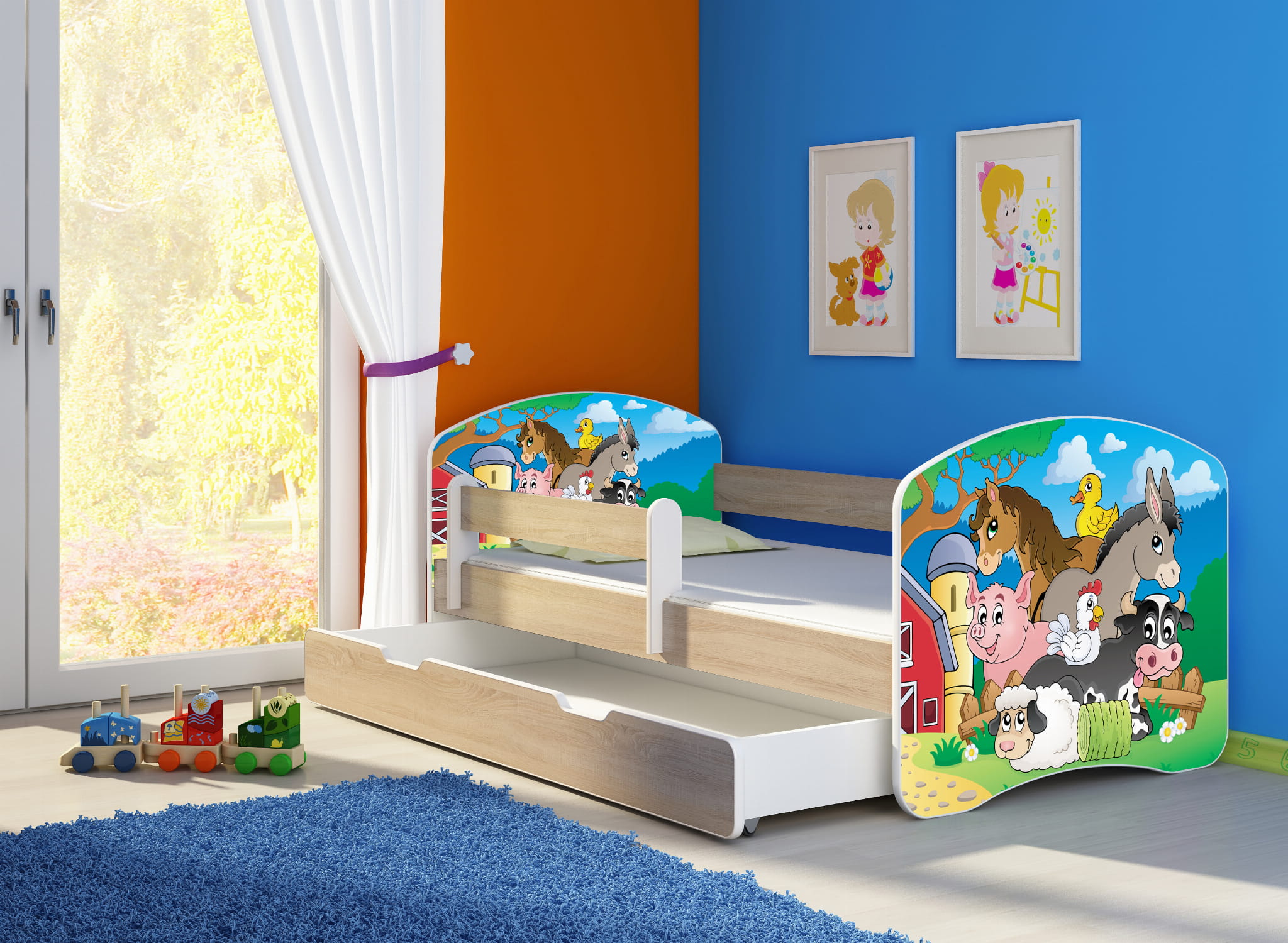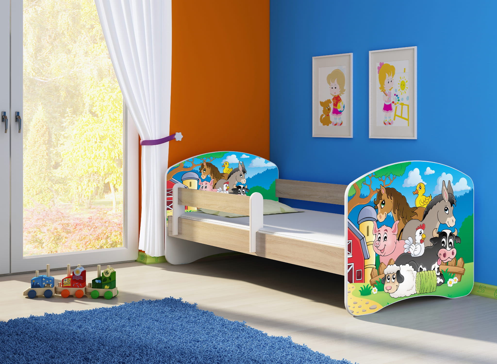 Łóżko dziecięce z barierką 180x80, ACMA II - Farma