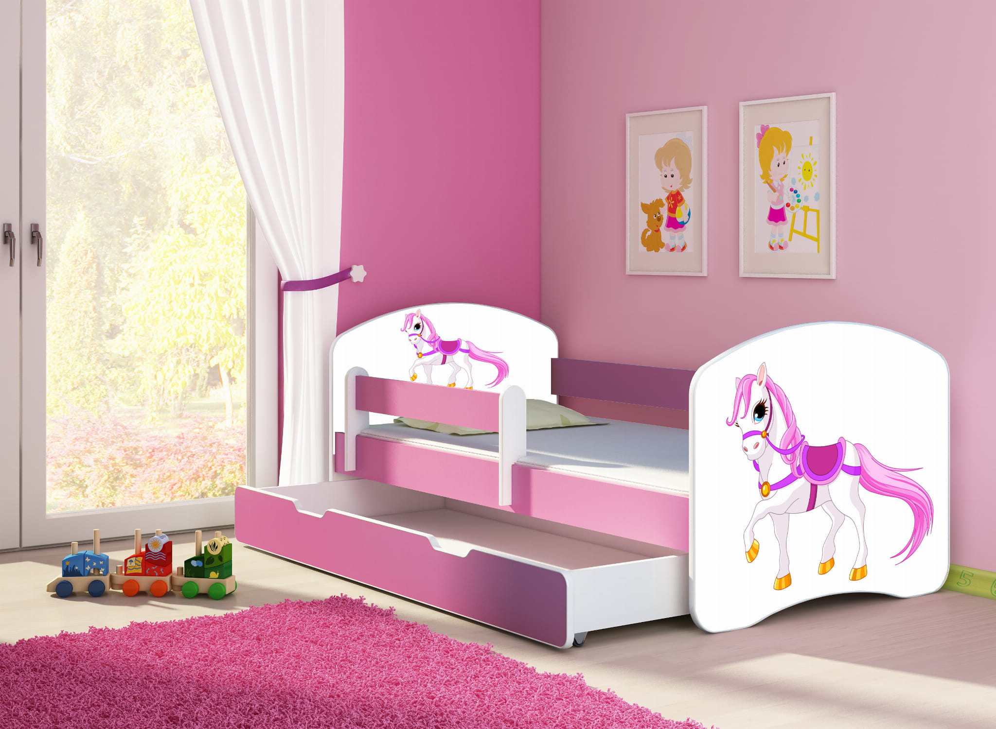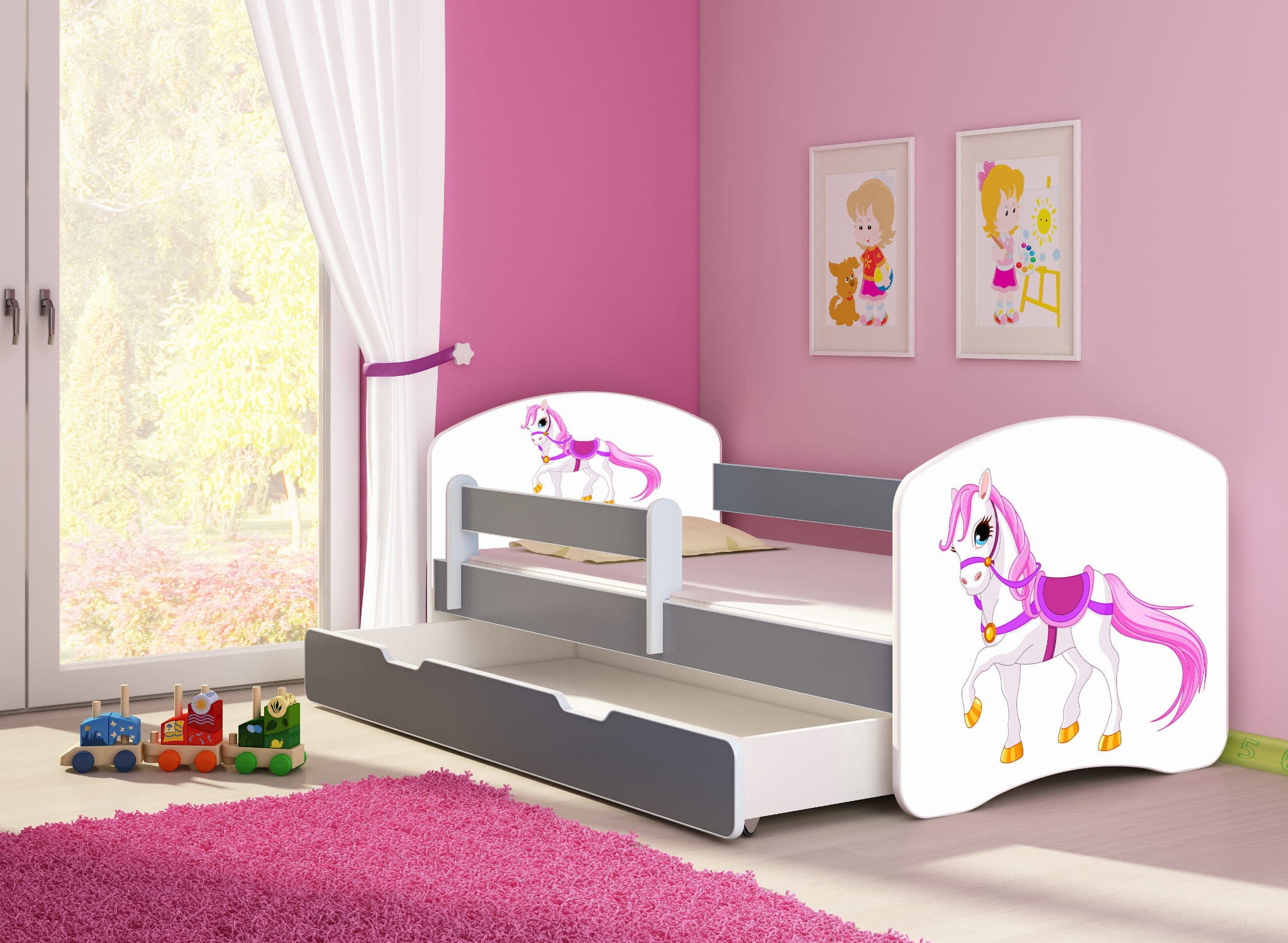 Łóżko dziecięce z barierką 180x80, ACMA II - Konik