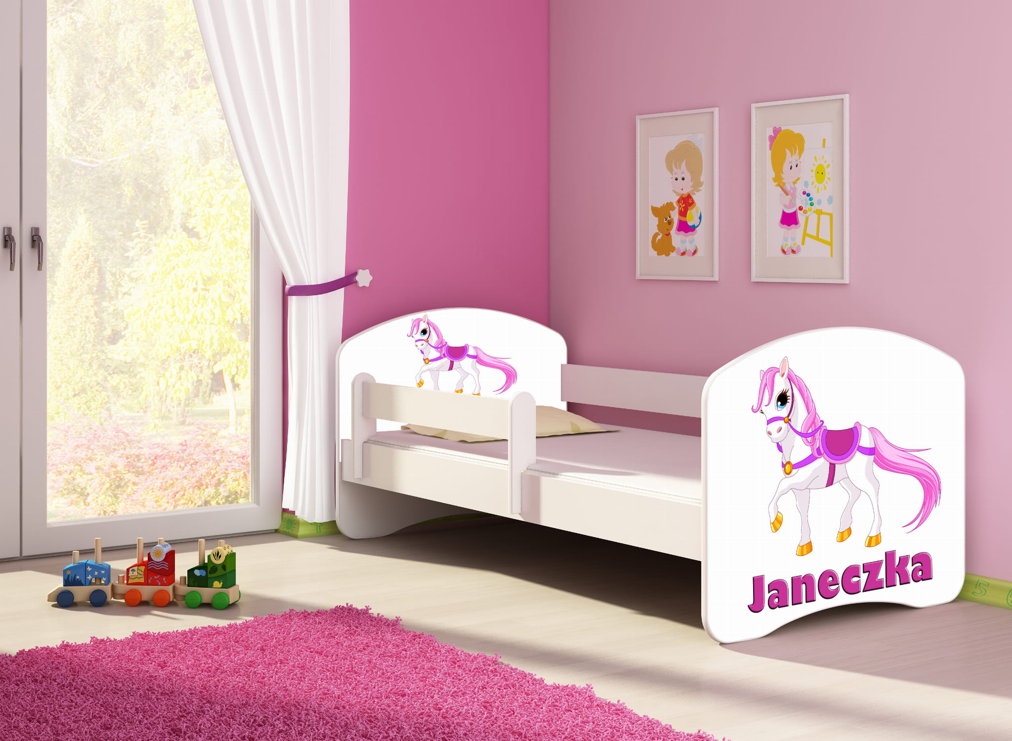 Podczas zakupu prosimy o wpisanie imienia jakie ma być naniesione na łóżko np. "Mikołaj". Po zakupie łóżka zostanie przesłany projekt.