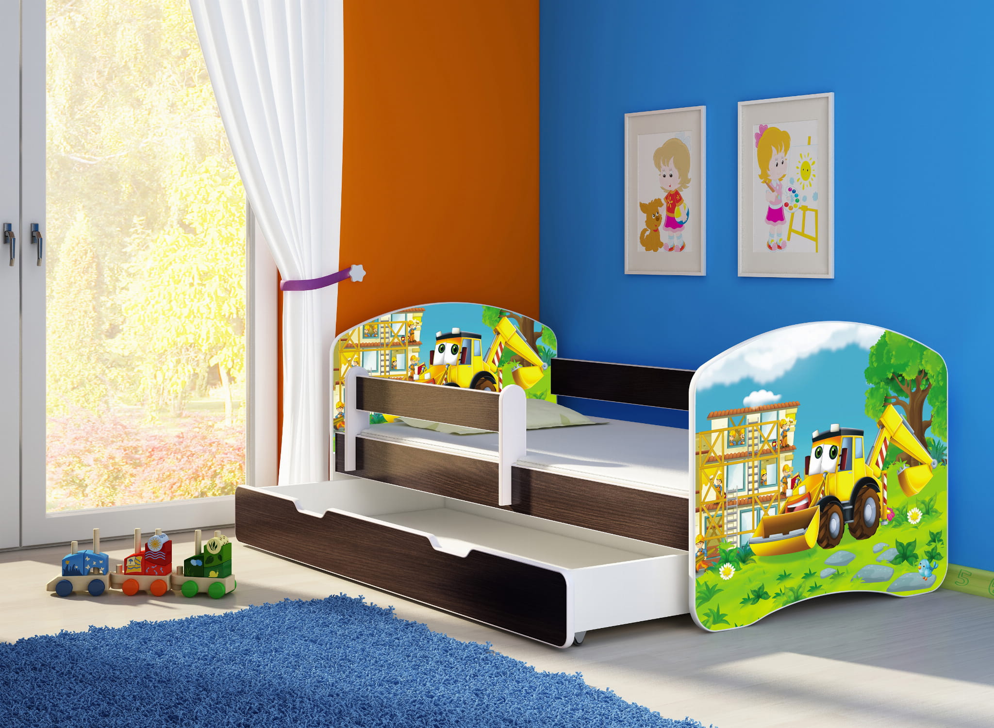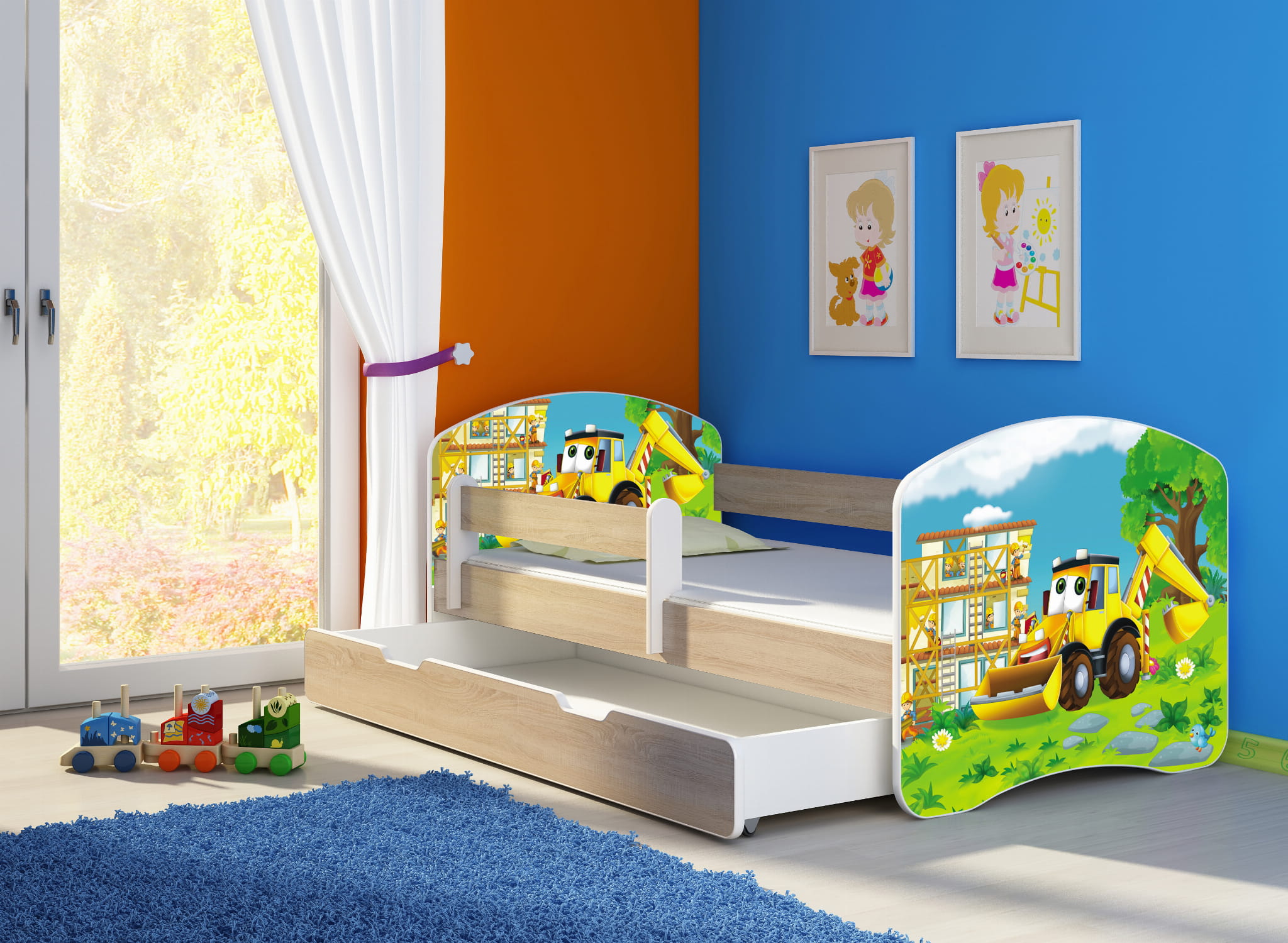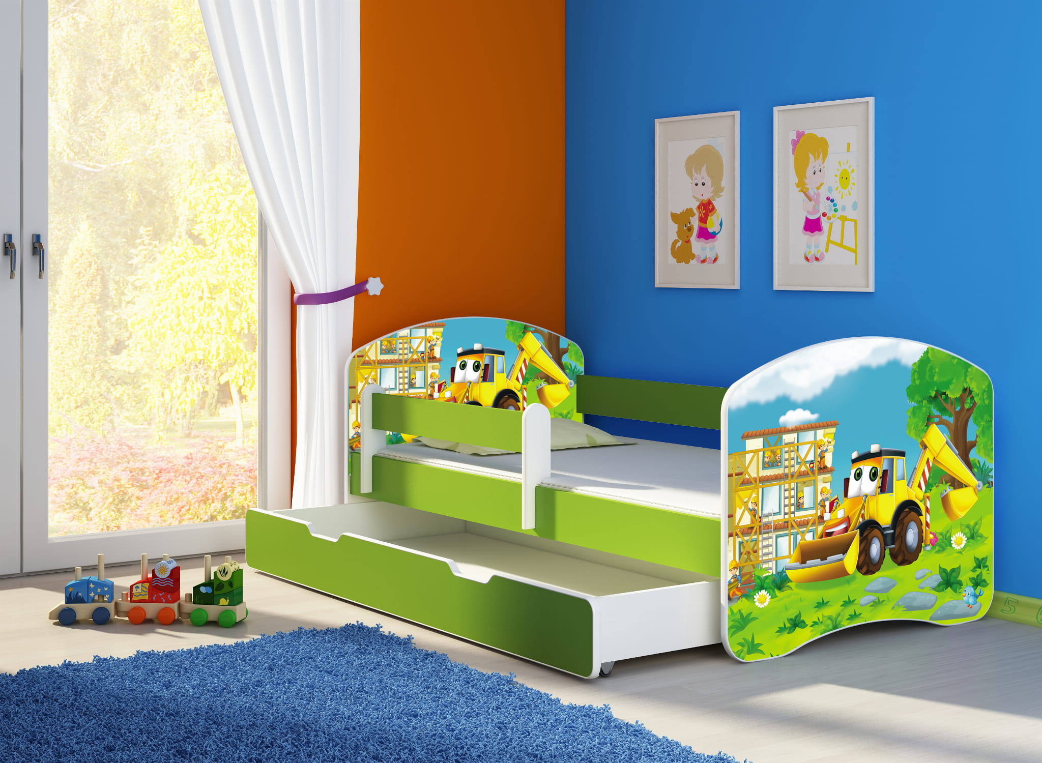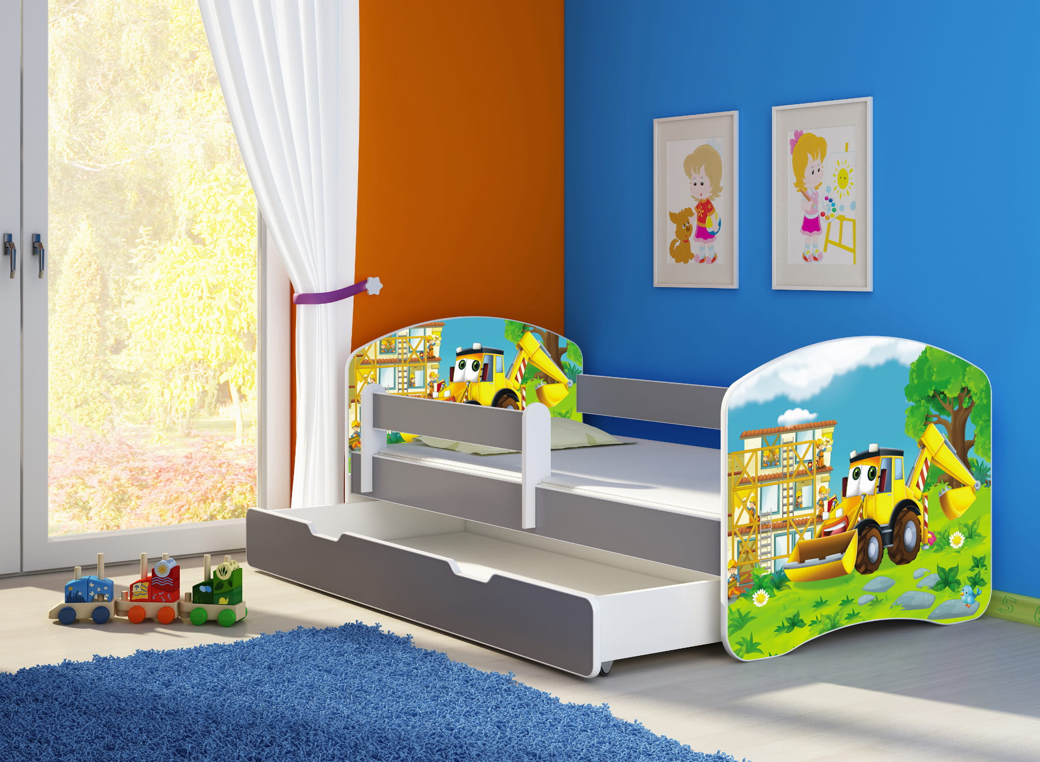 Łóżko dziecięce z barierką 180x80, ACMA II - Koparka