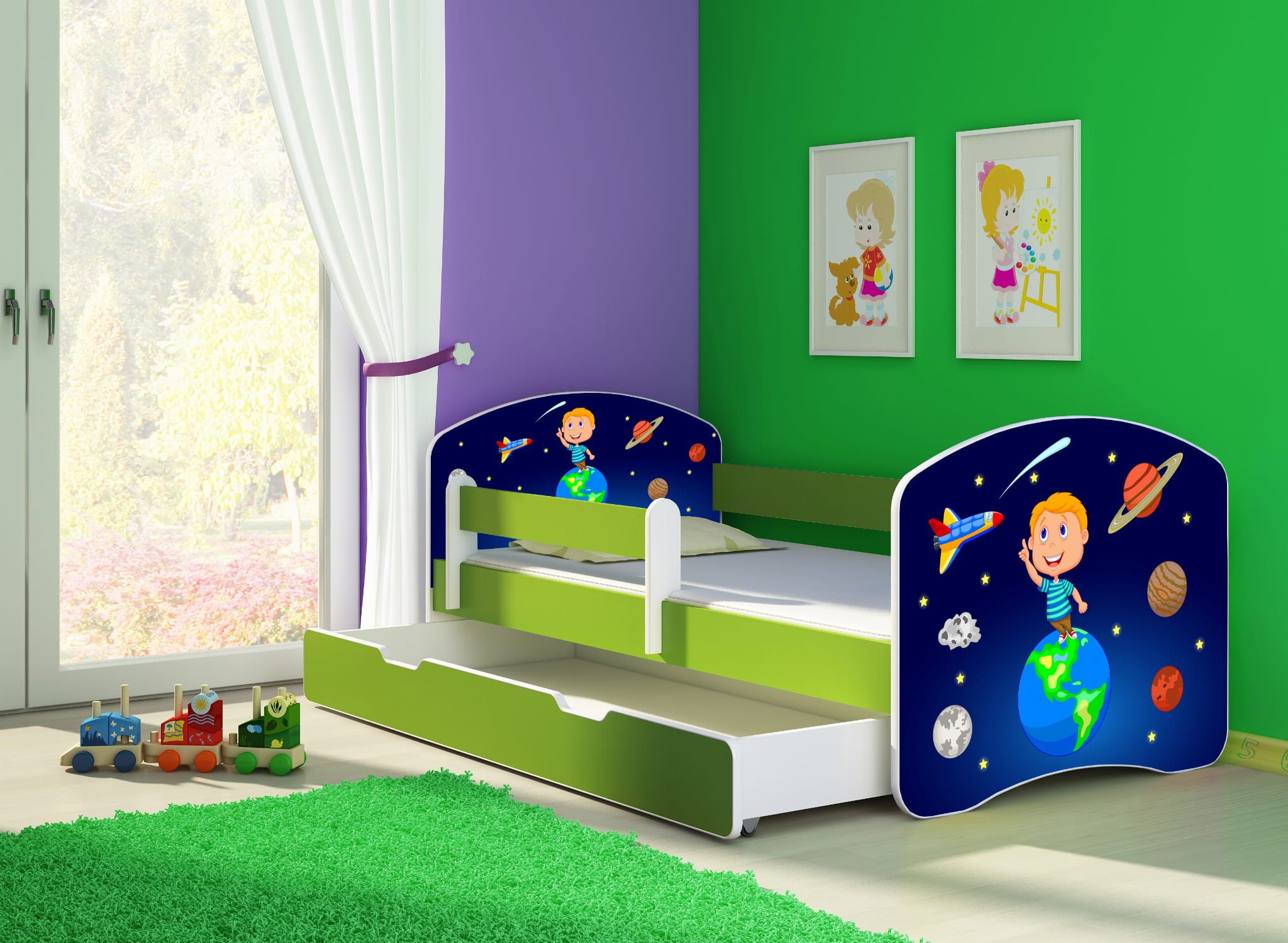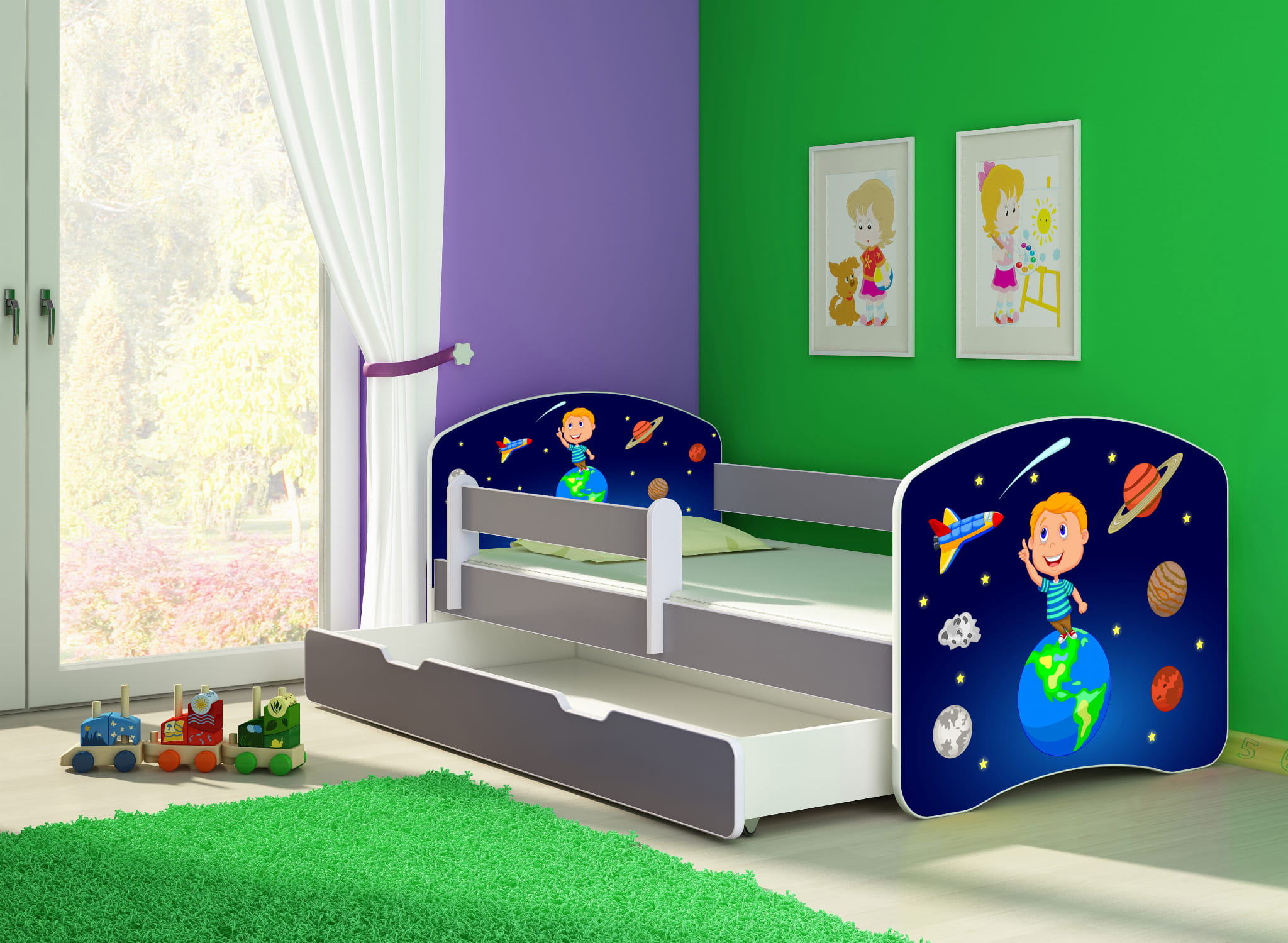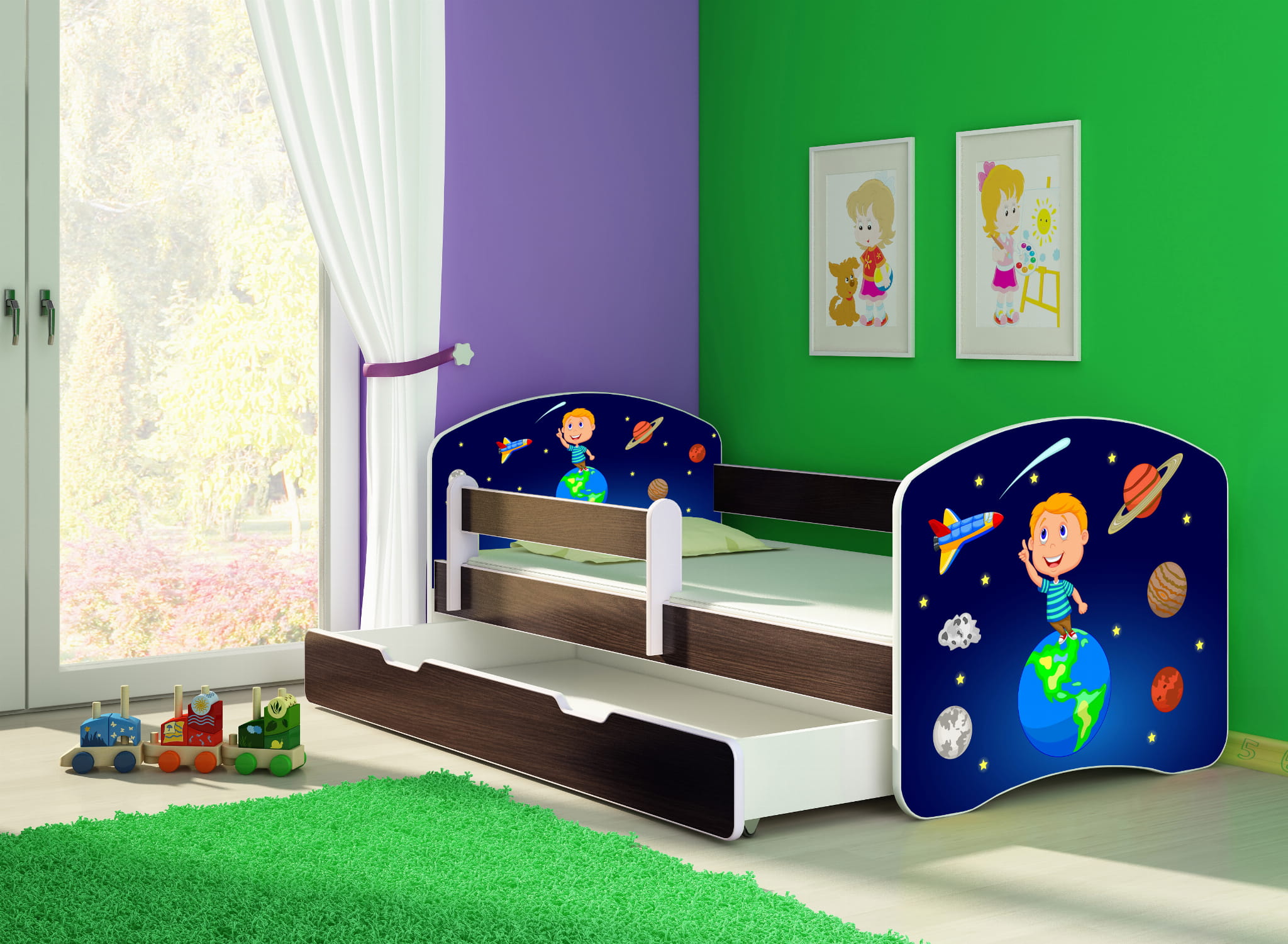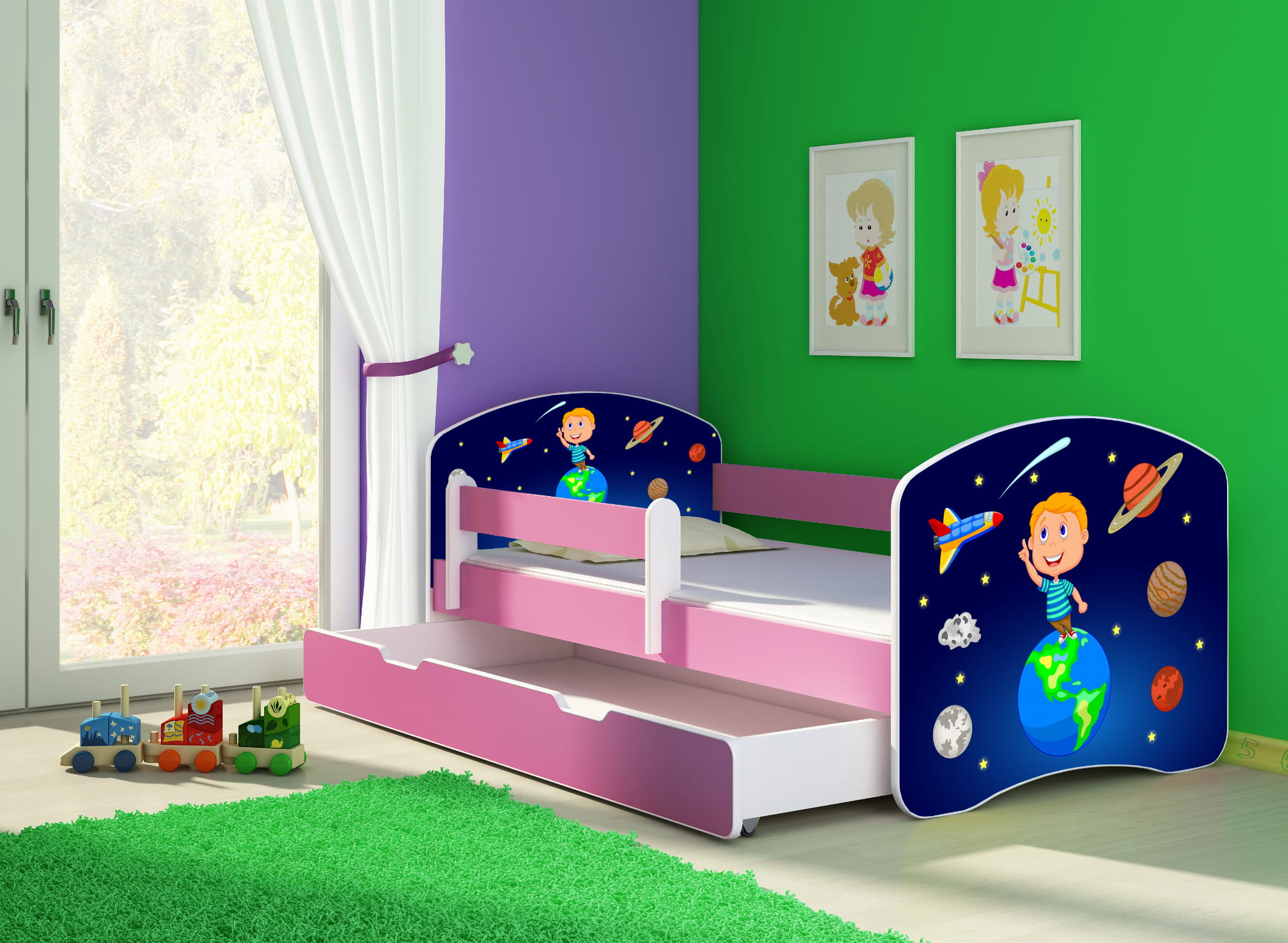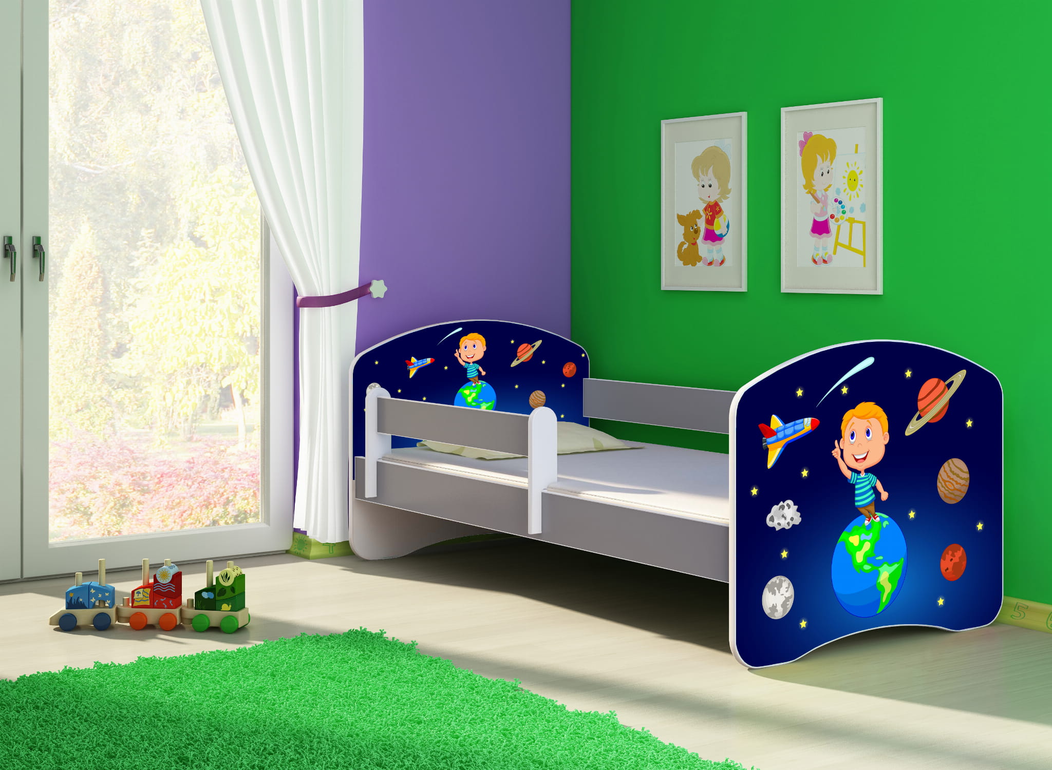 Łóżko dziecięce z barierką 180x80, ACMA II - Kosmos