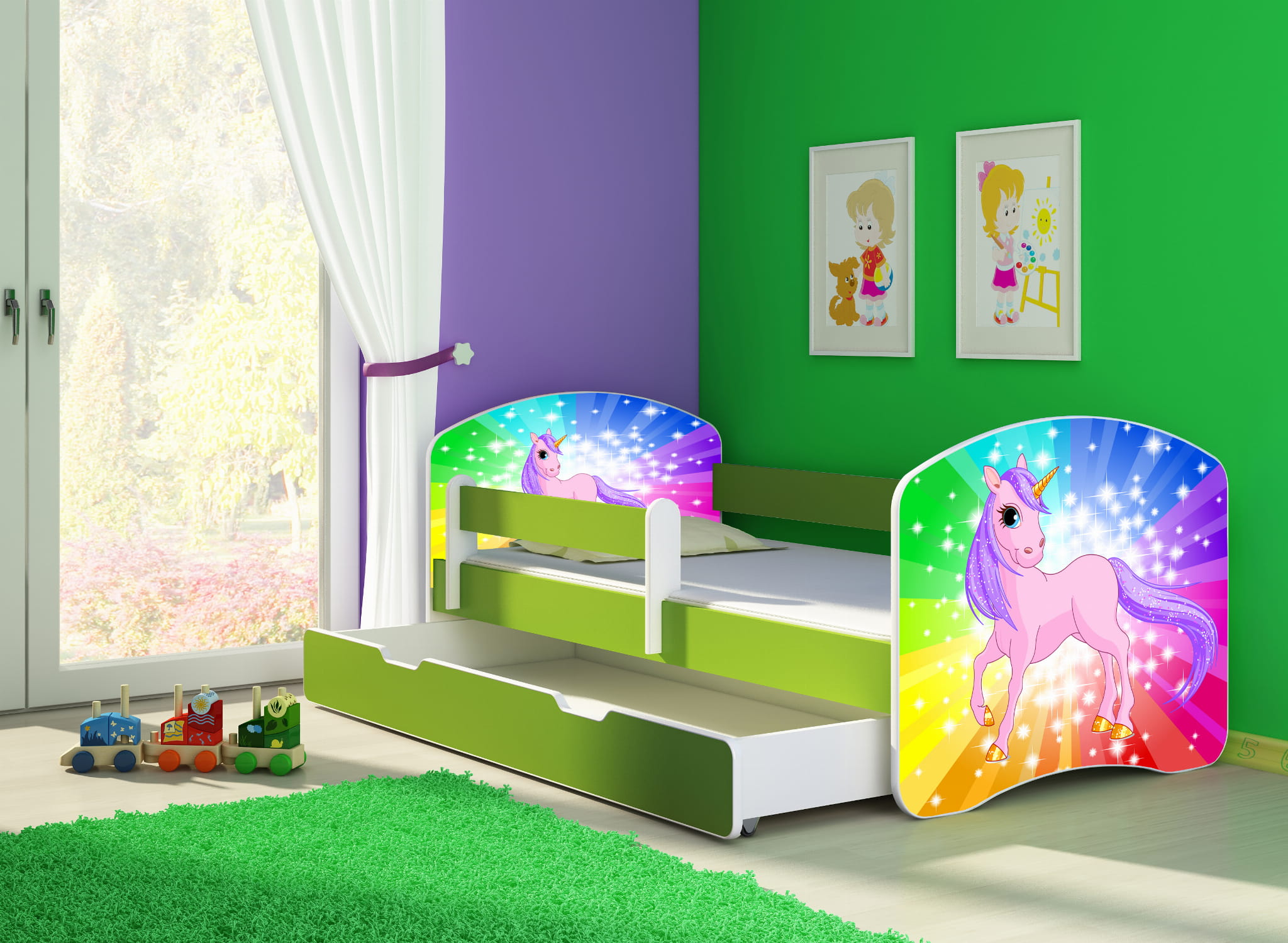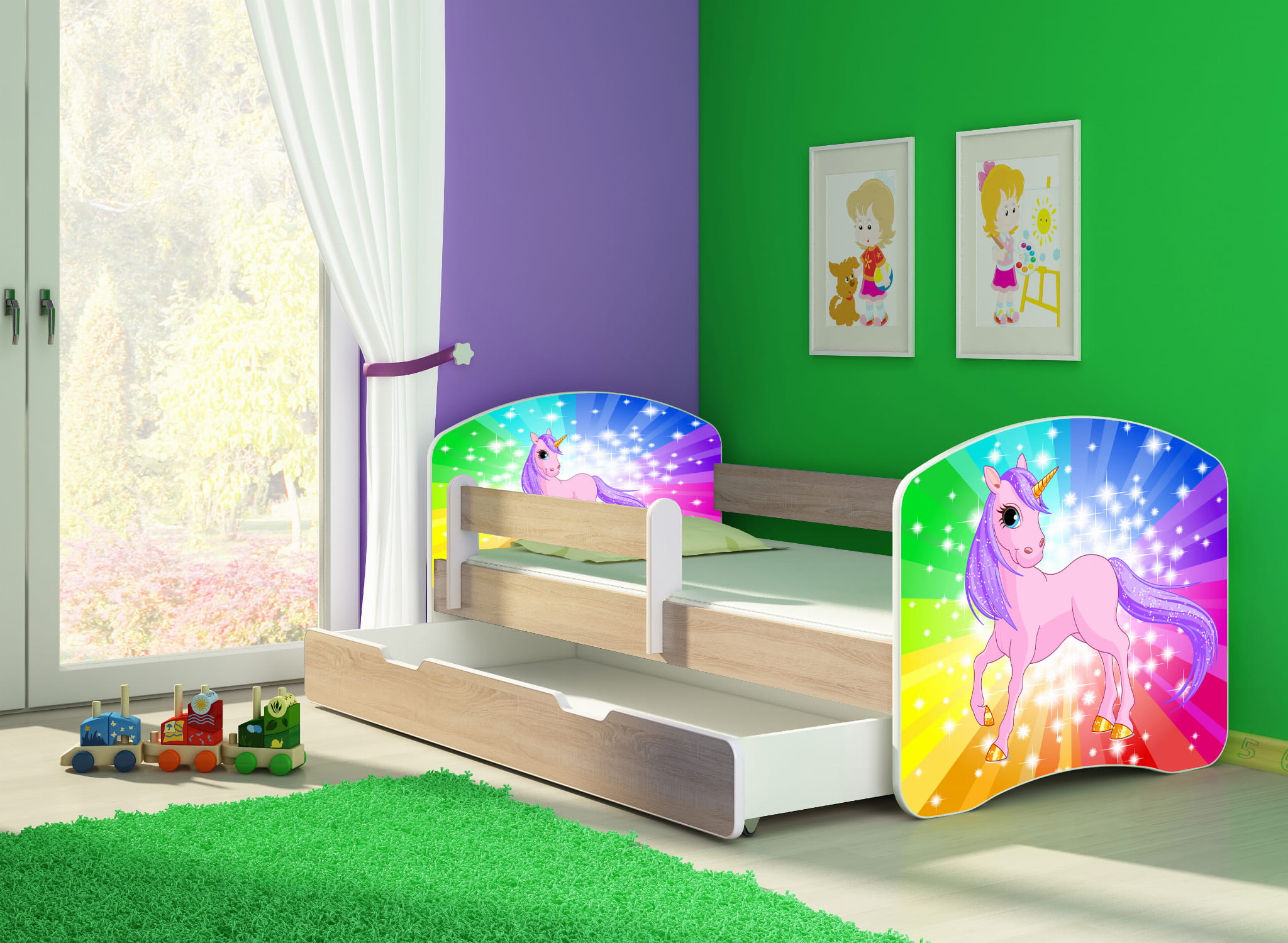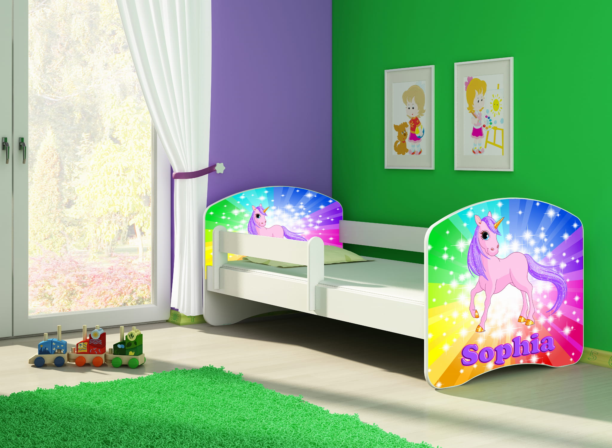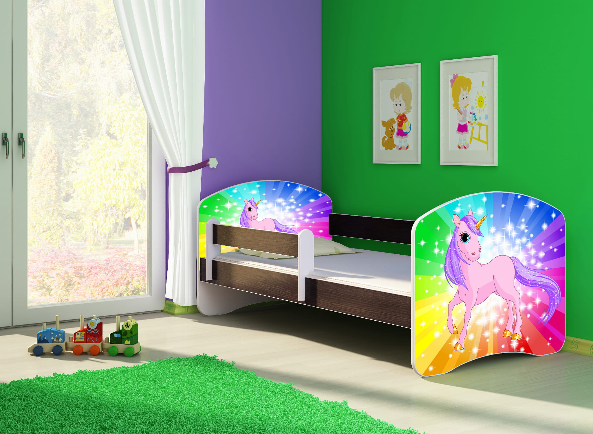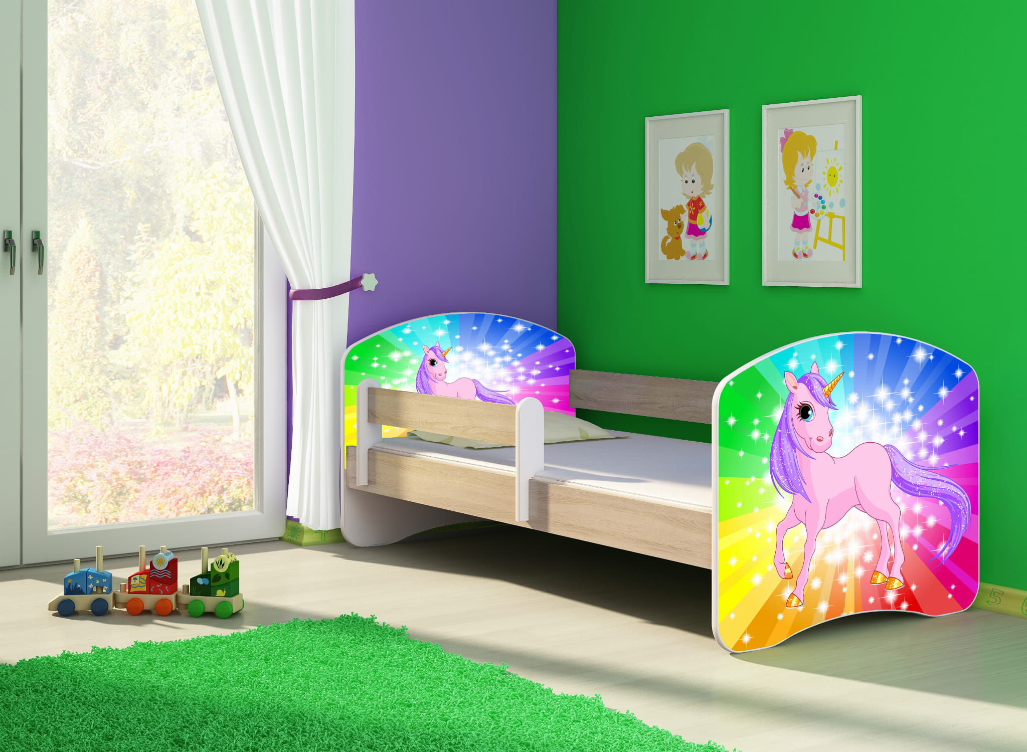 Łóżko dziecięce z barierką 180x80, ACMA II - Kucyk tęcza