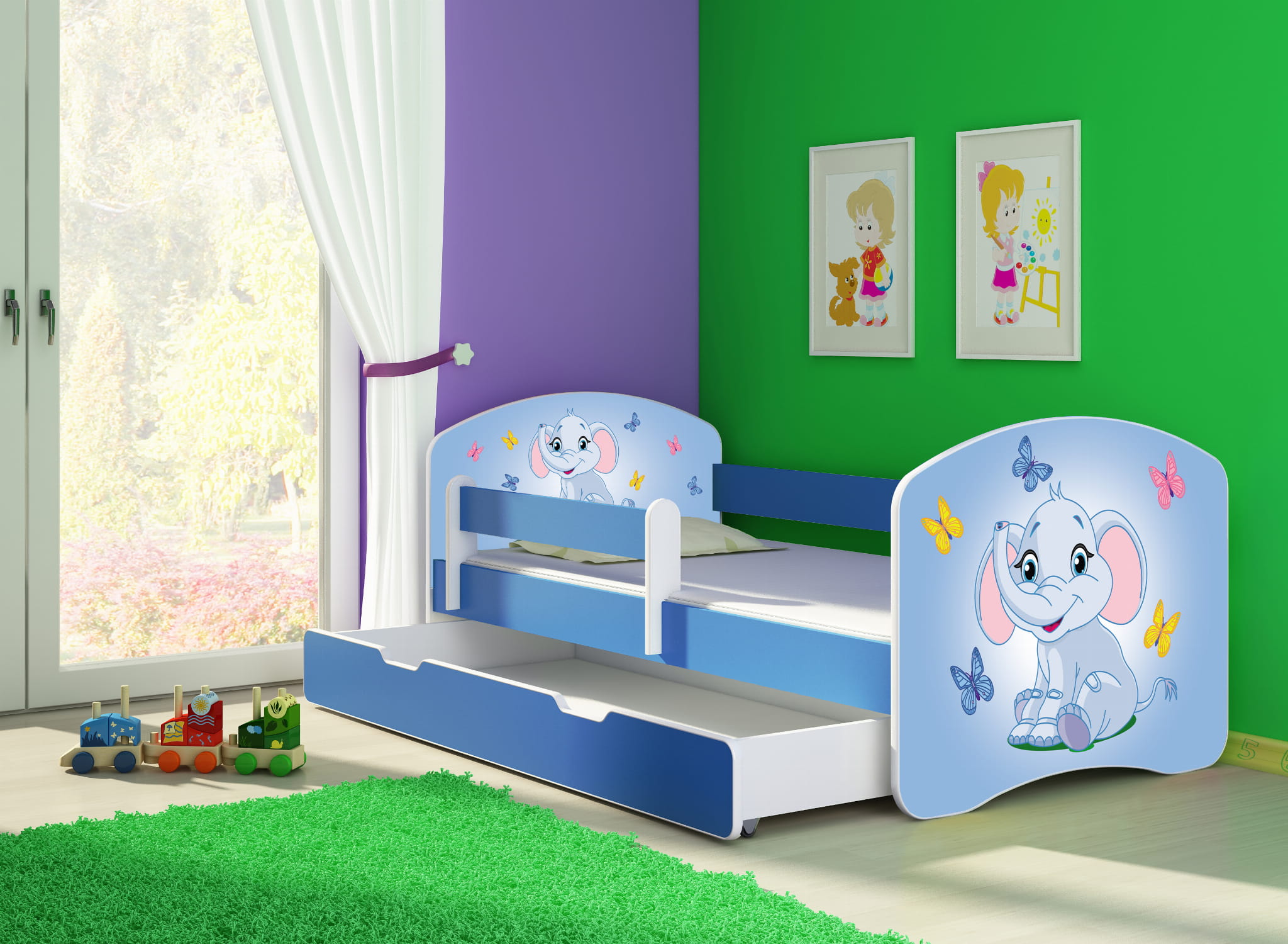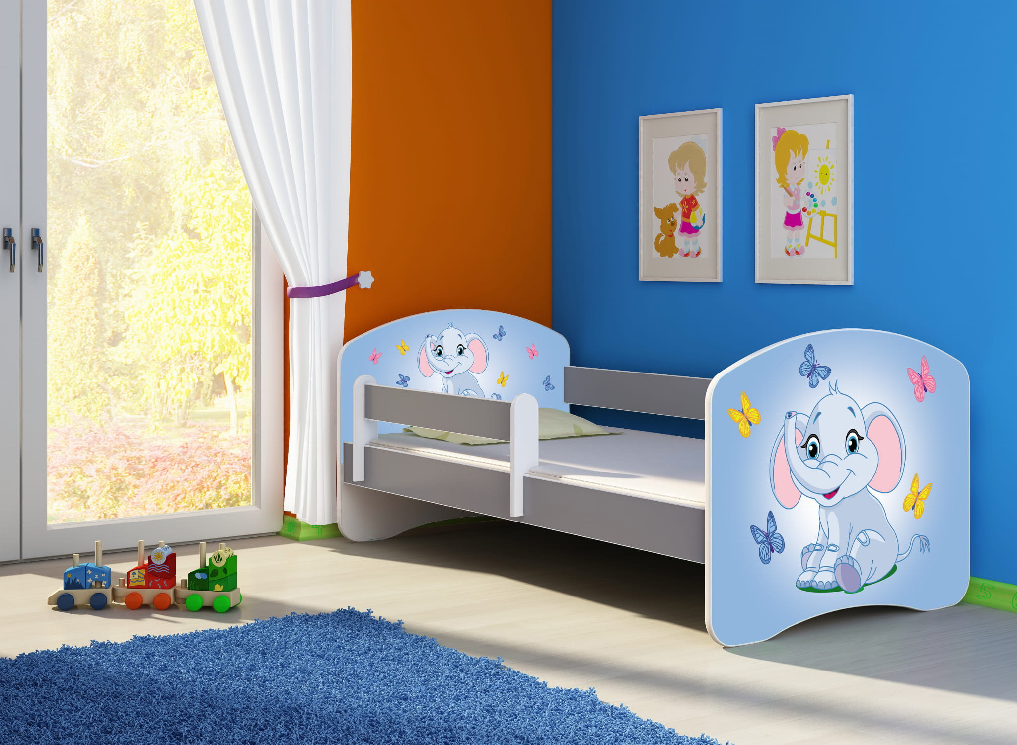 Łóżko dziecięce z barierką 180x80, ACMA II - Niebieski Słonik