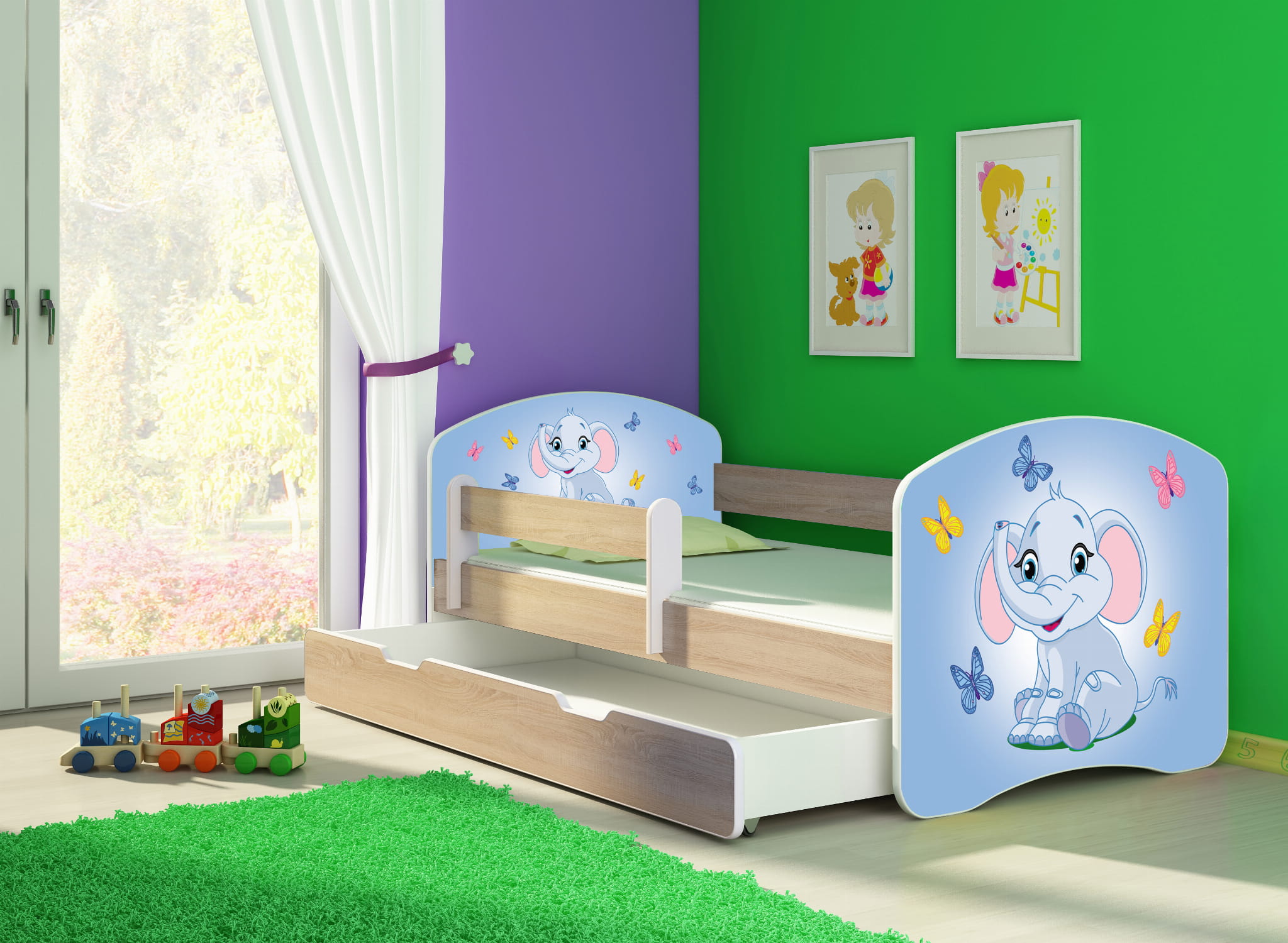 - KOMFORT - Specjalnie wyprofilowane boki łóżka zabezpieczają dziecko przed wypadnięciem w czasie snu