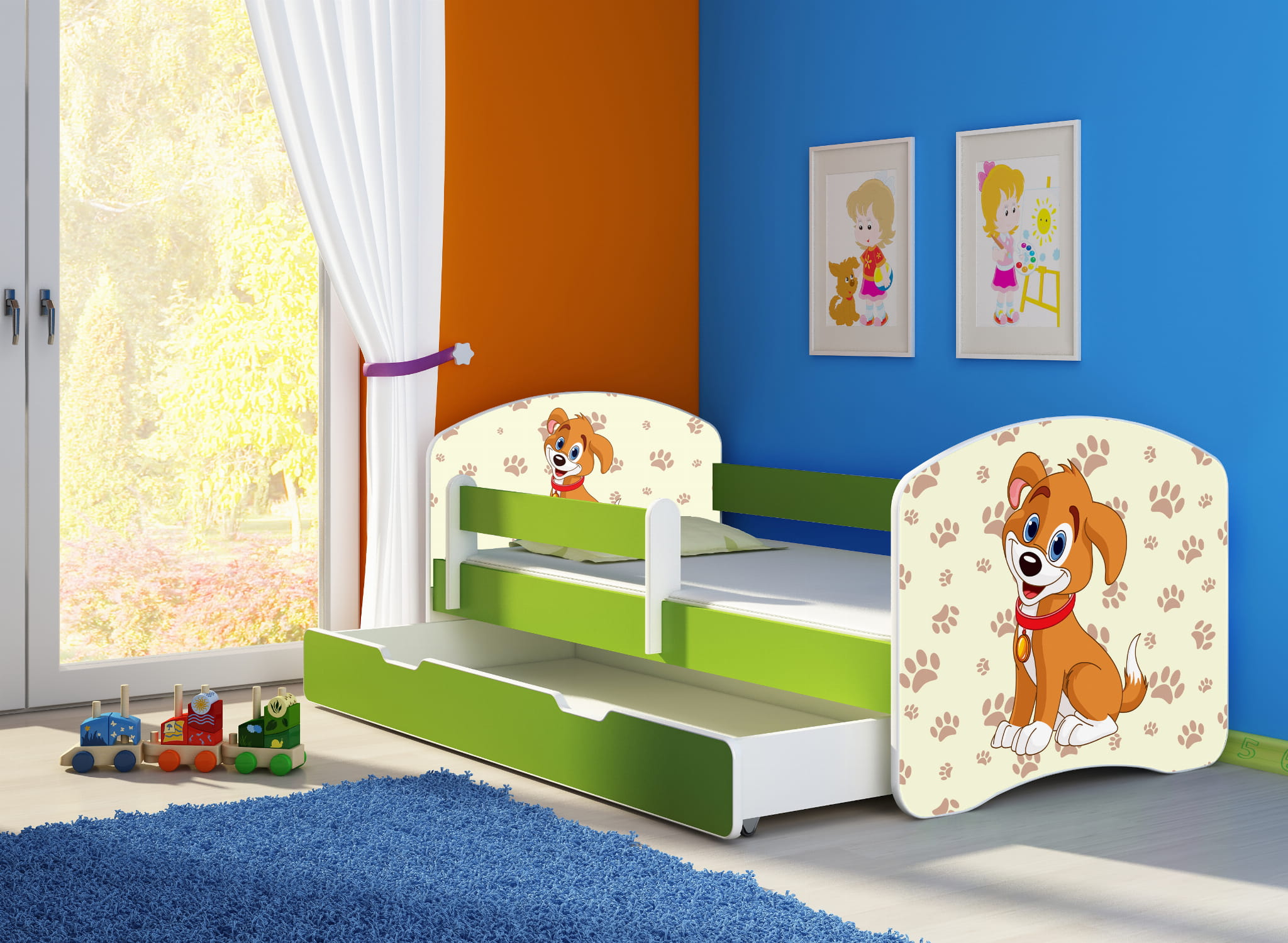 Łóżko dziecięce z barierką 180x80, ACMA II - Piesek