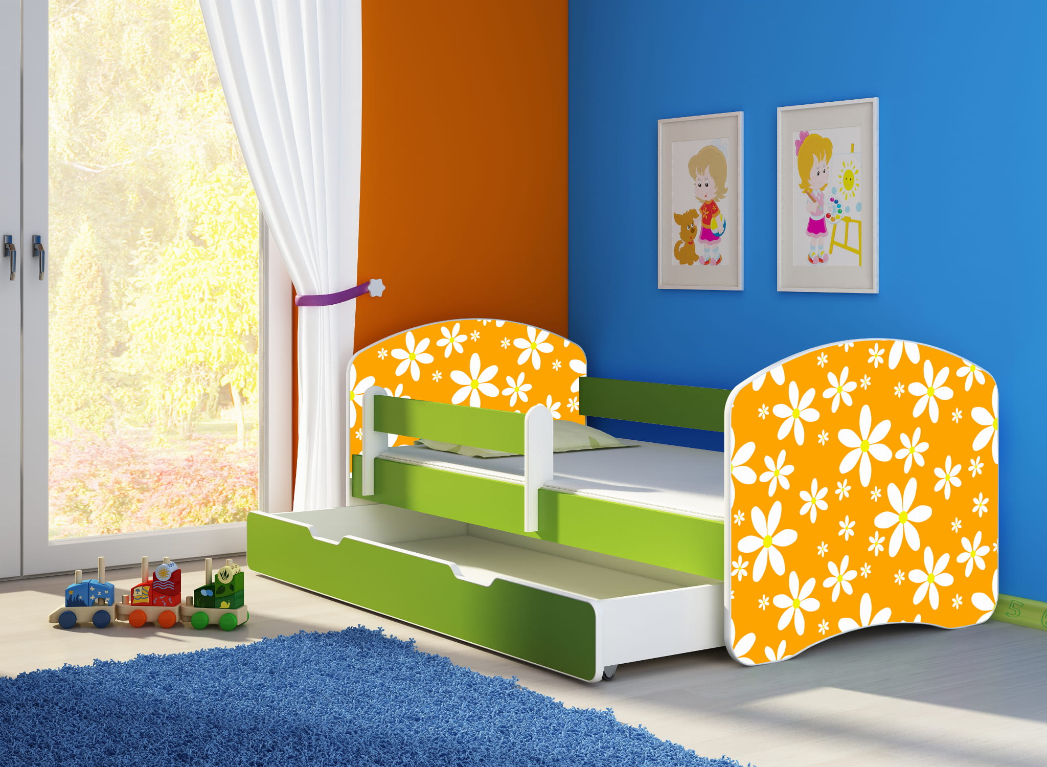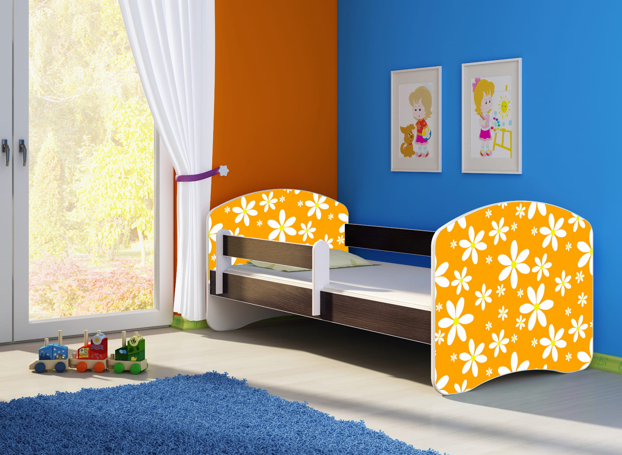 Łóżko dziecięce z barierką 180x80, ACMA II - Pomarańczowe stokrotki