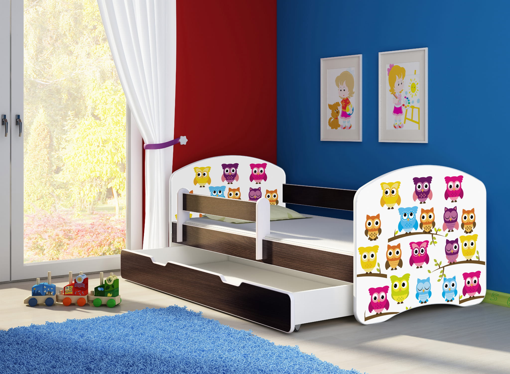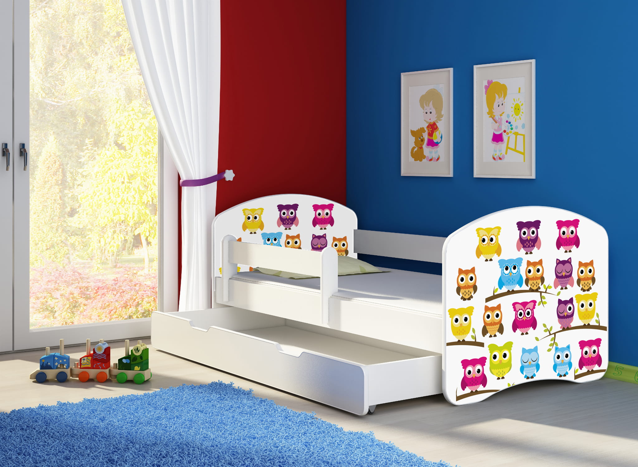 Łóżko dziecięce z barierką 180x80, ACMA II - Sowy
