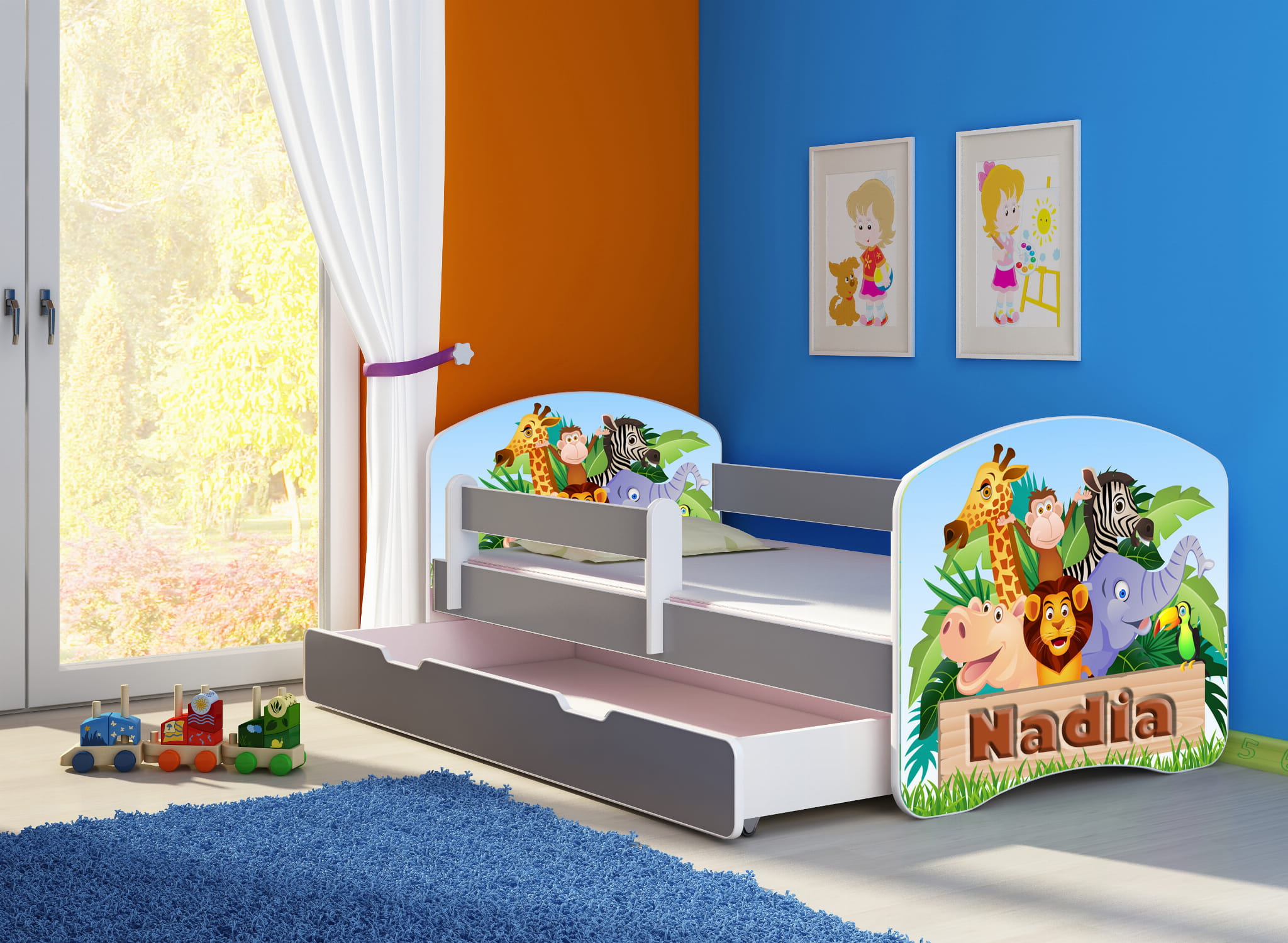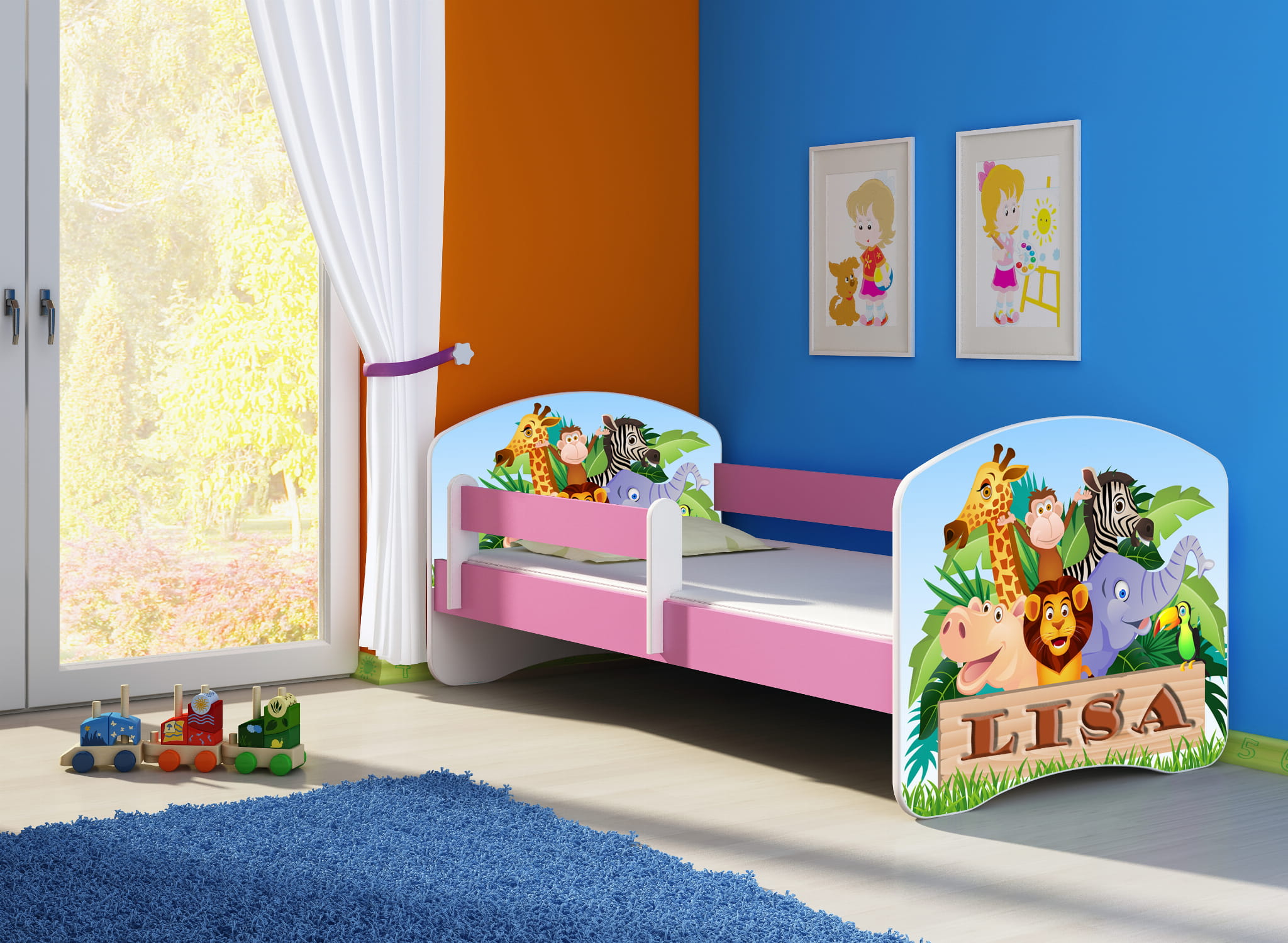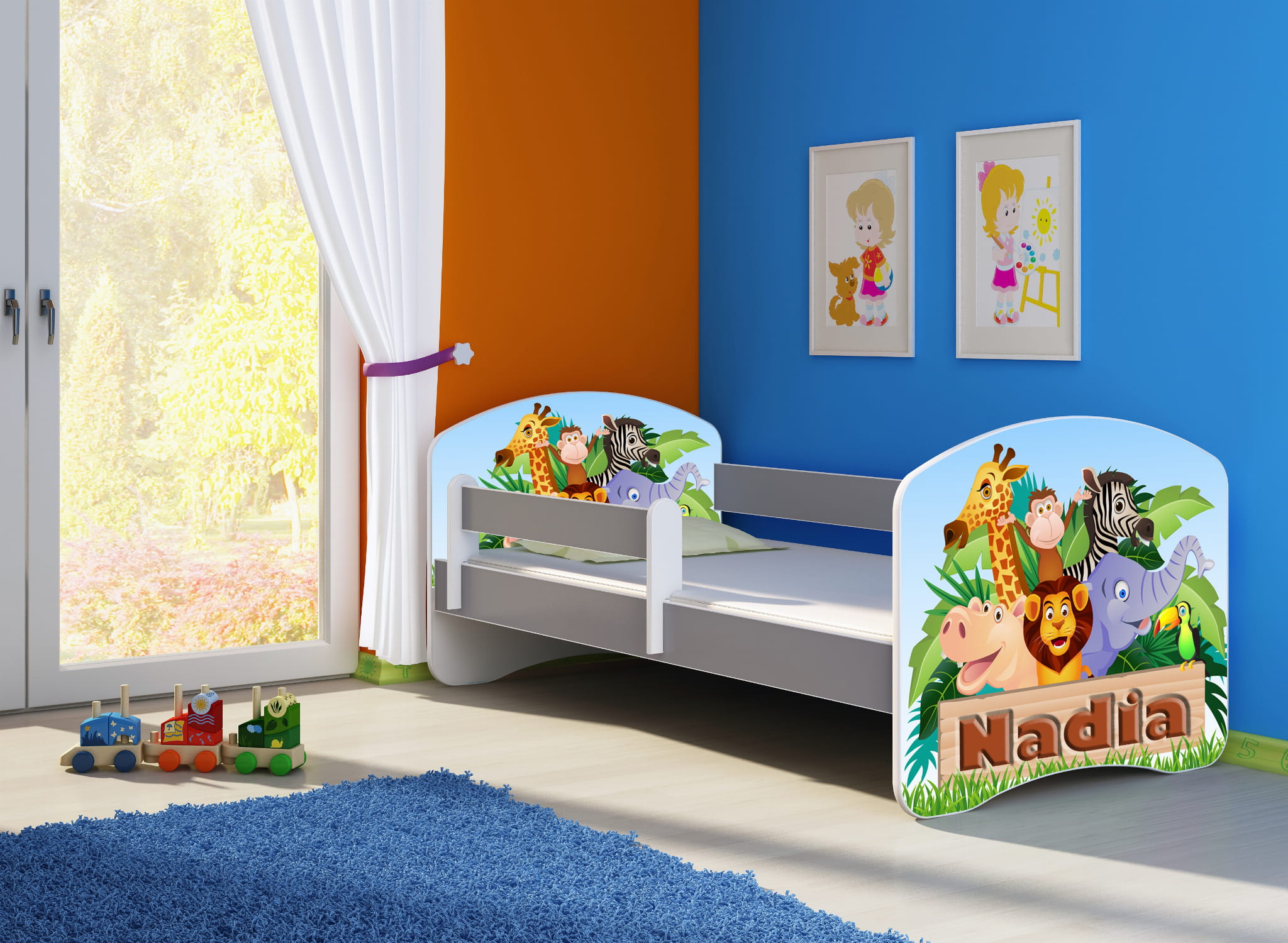 Łóżko dziecięce z barierką 180x80, ACMA II - Zwierzątka imię