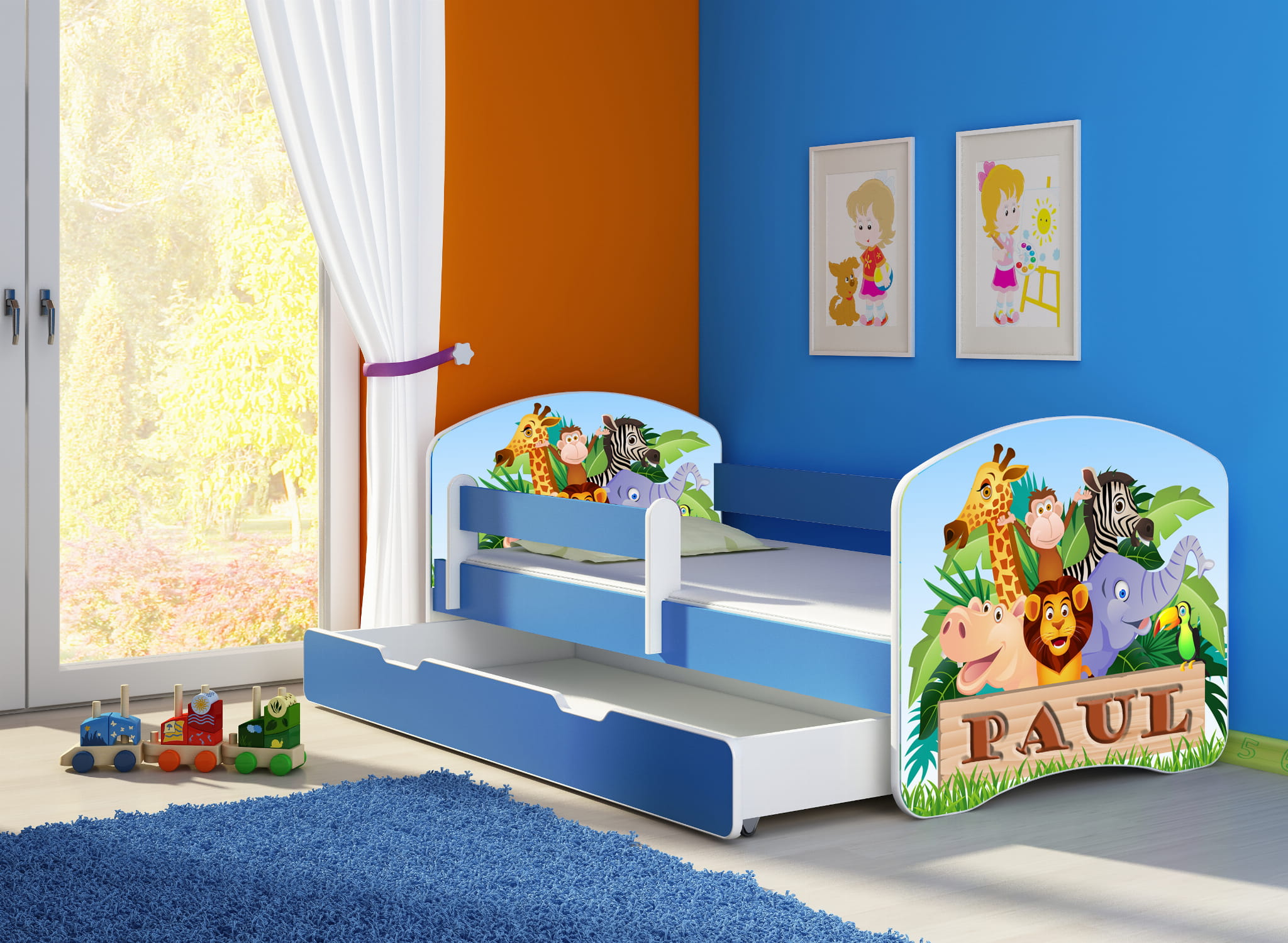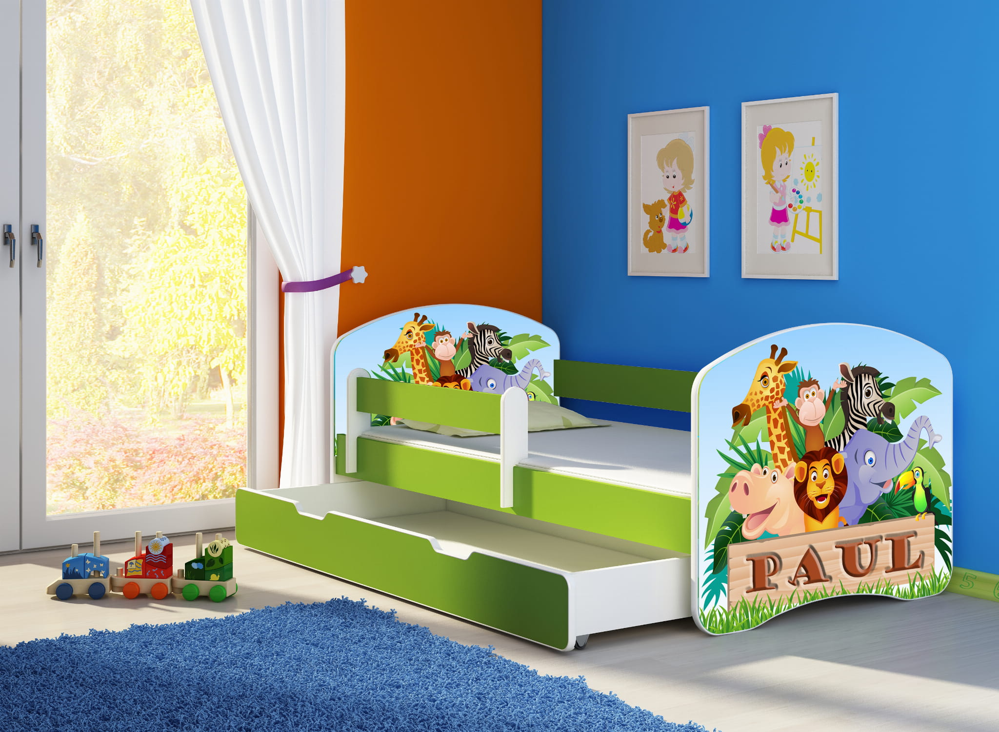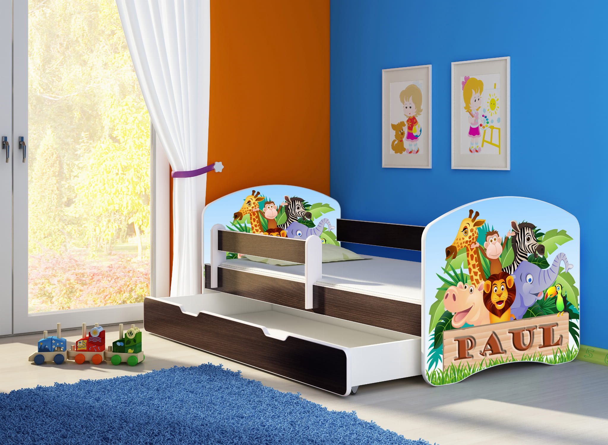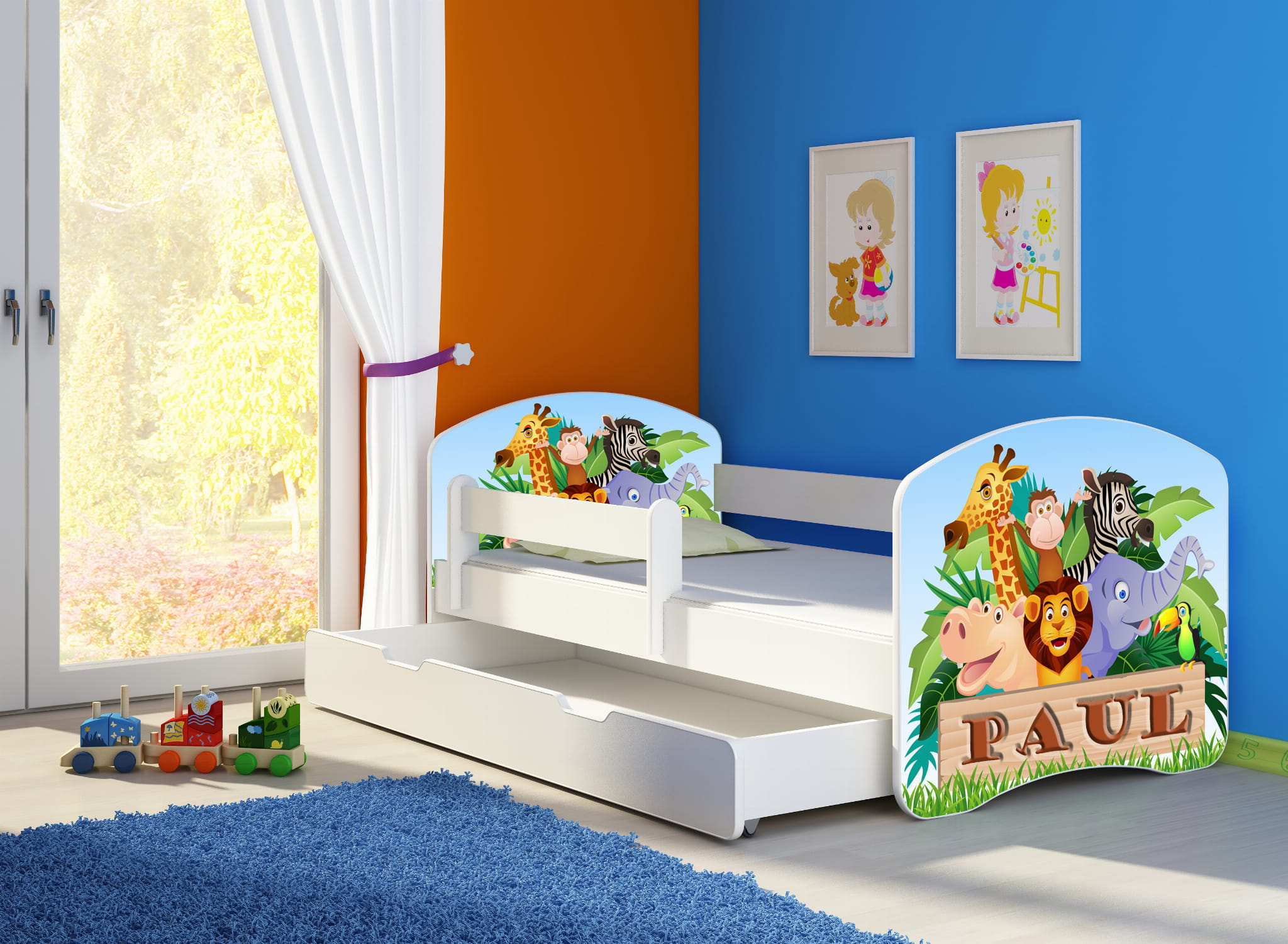 Łóżko dziecięce z barierką 180x80, ACMA II - Zwierzątka imię