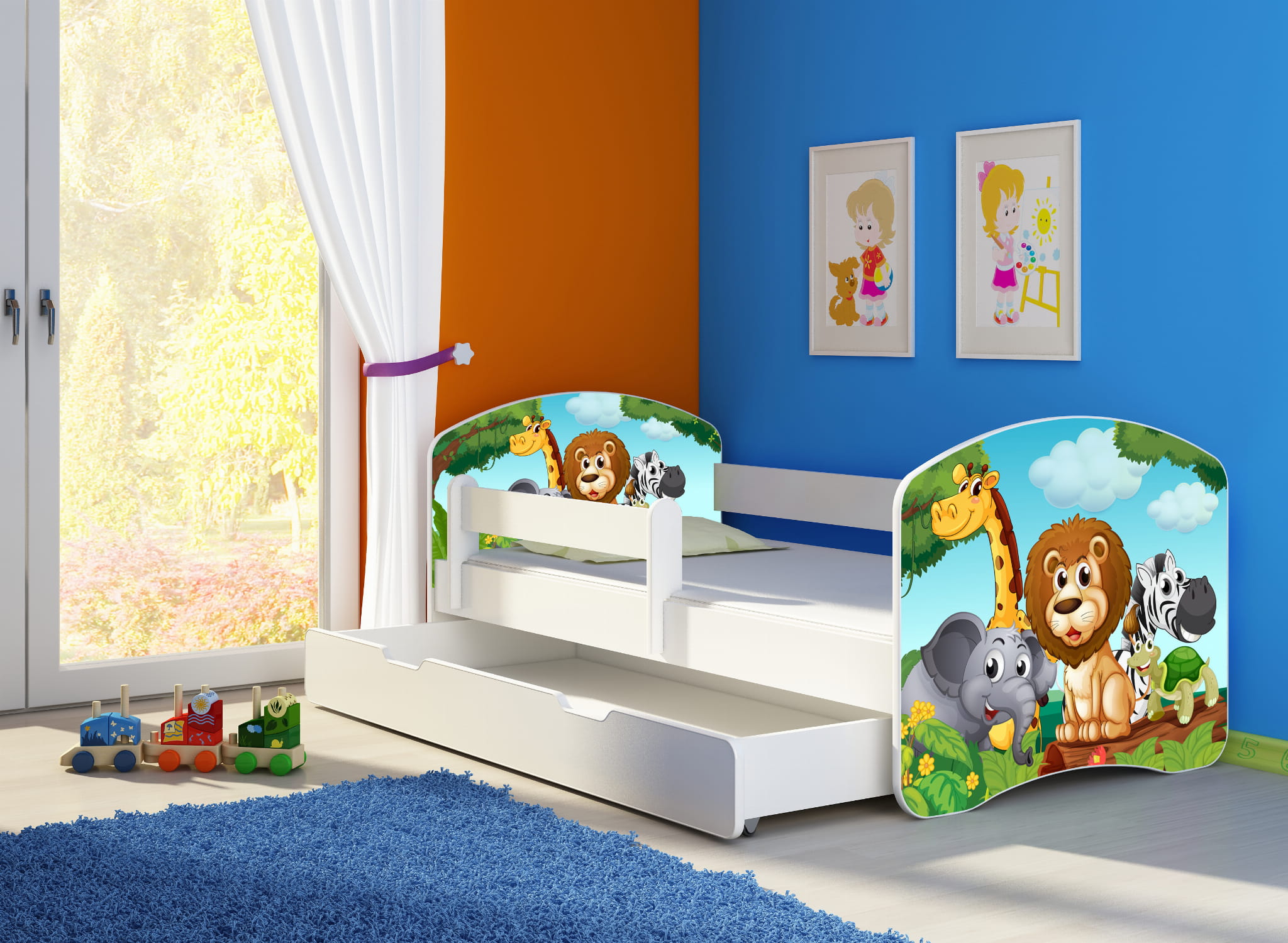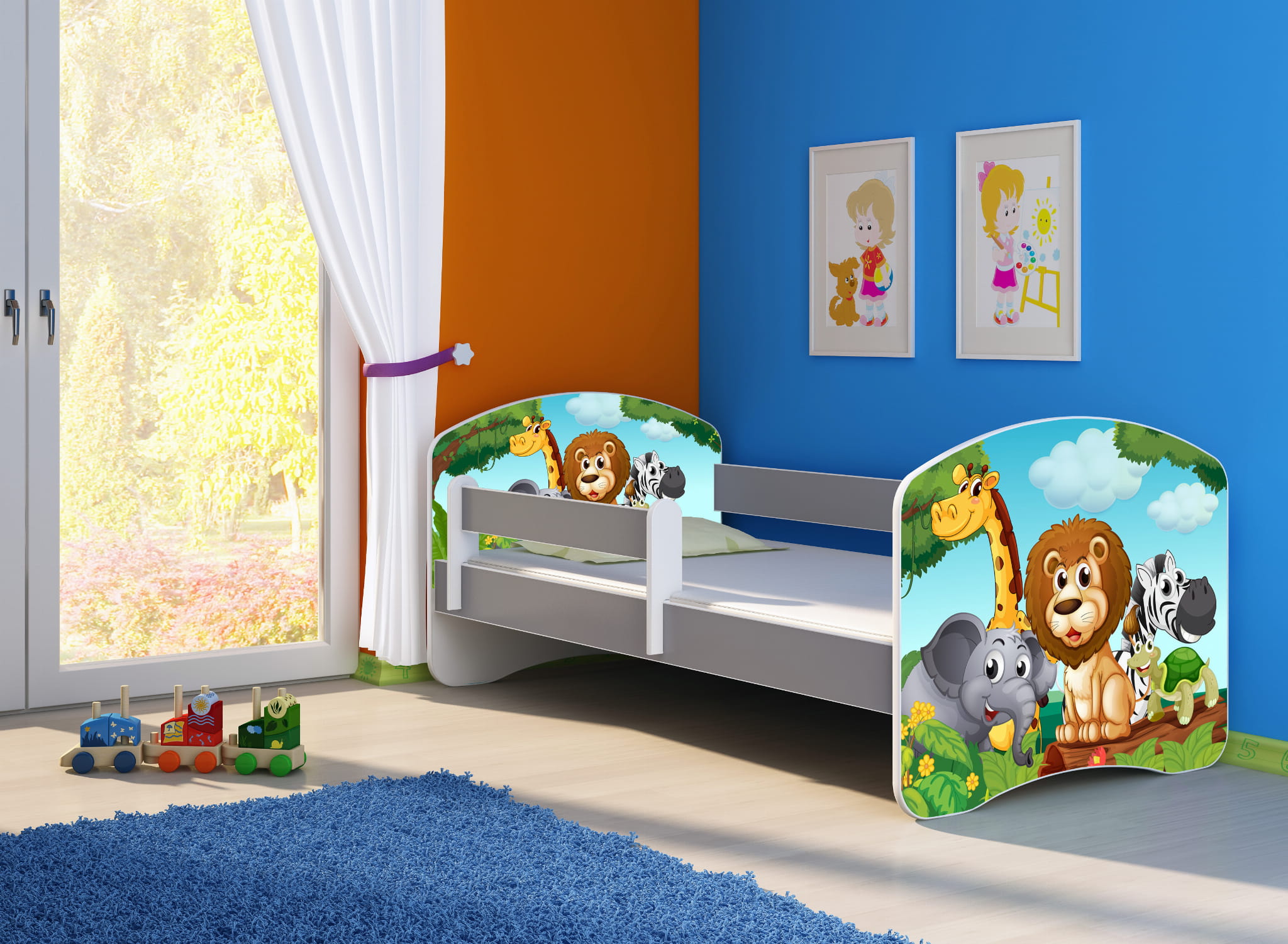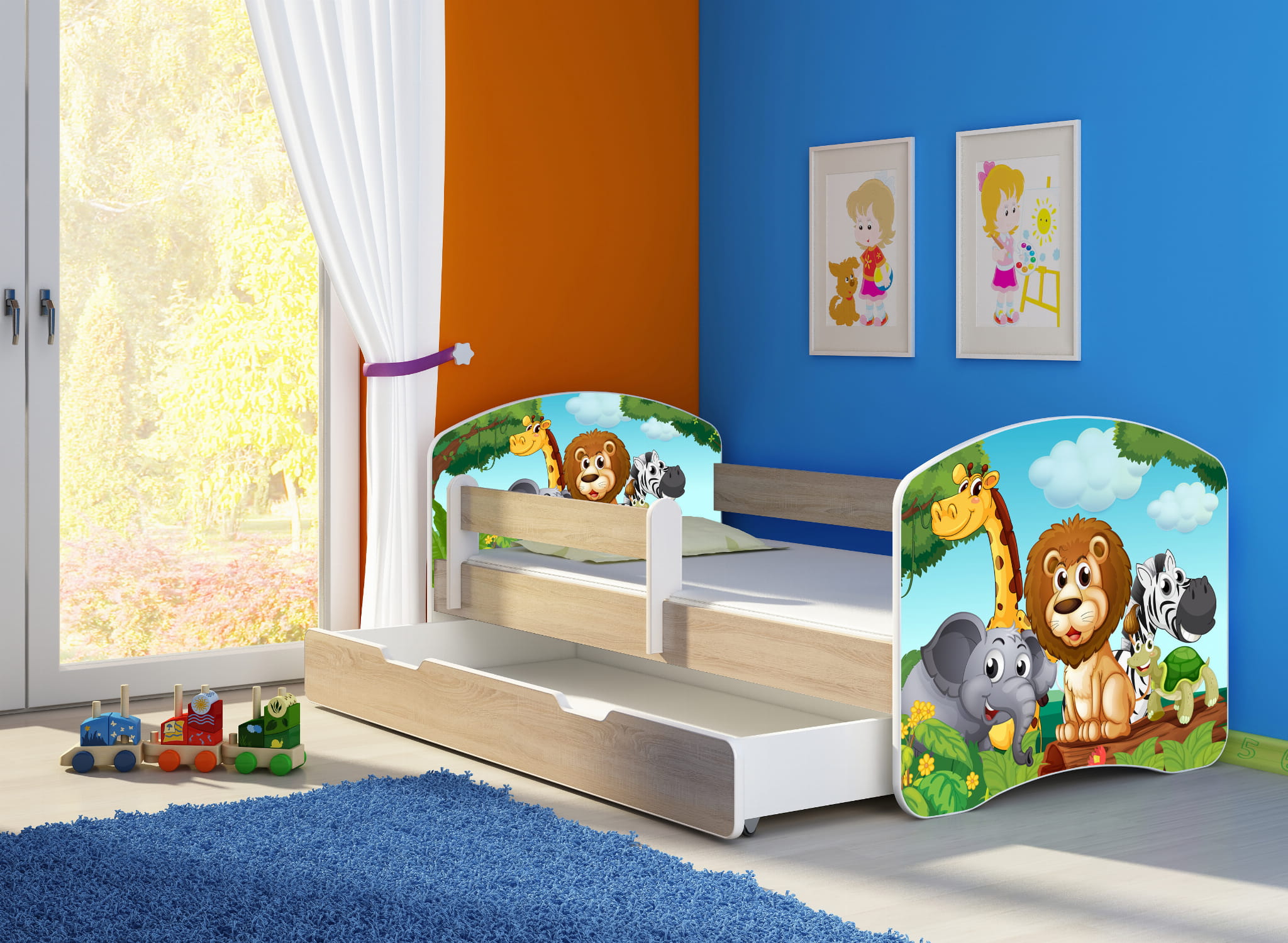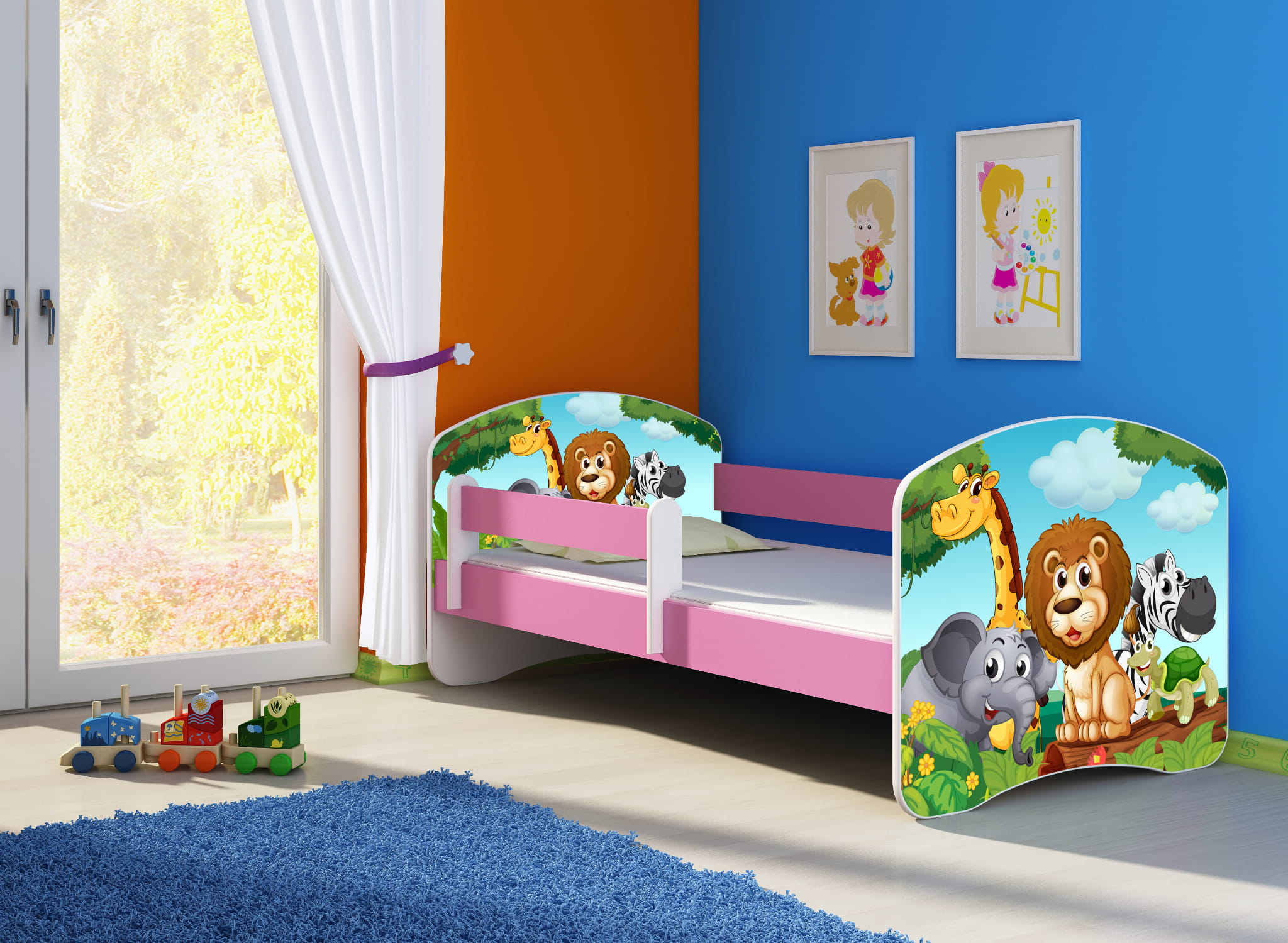 Łóżko dziecięce z barierką 180x80, ACMA II - Zwierzątka