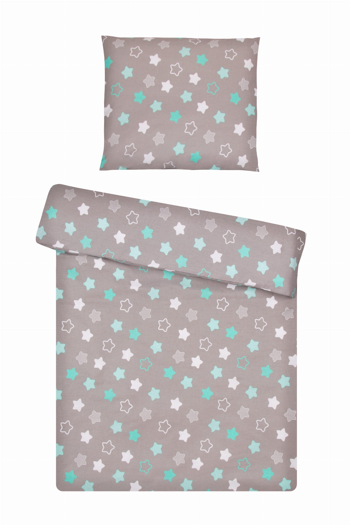 Poszewki na kołdrę i poduszkę 140x200 70x80 - Gwiazdki na szarym tle